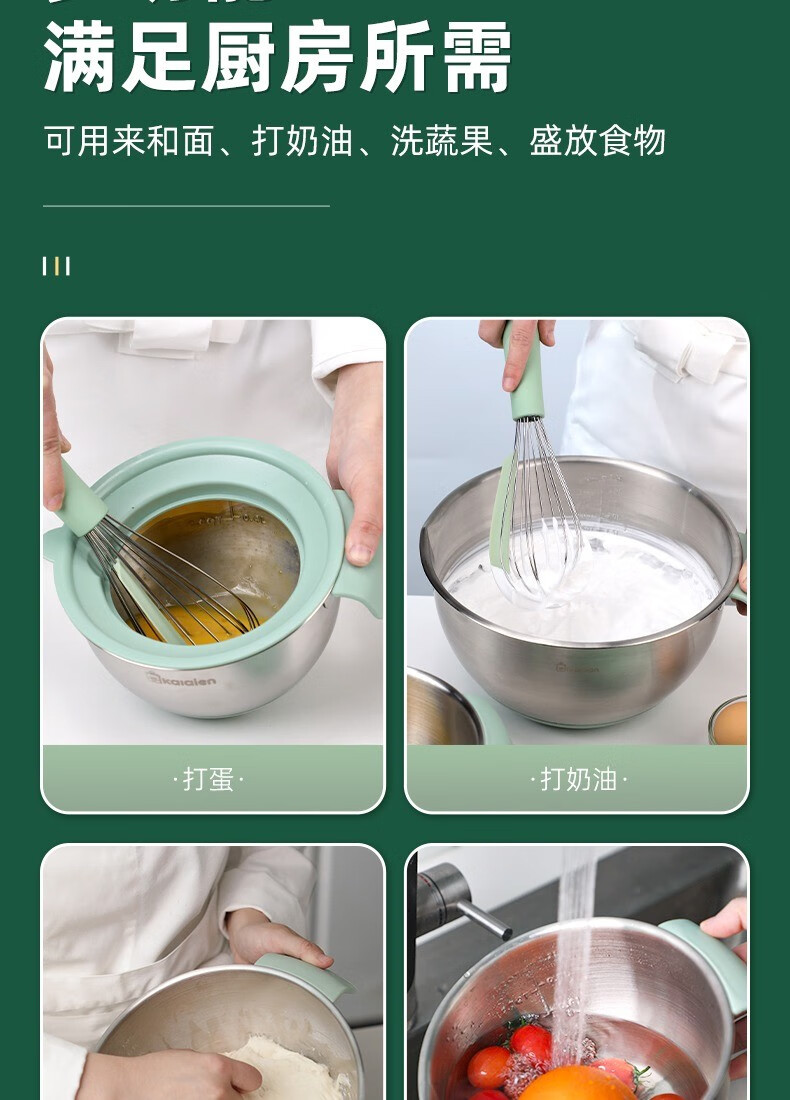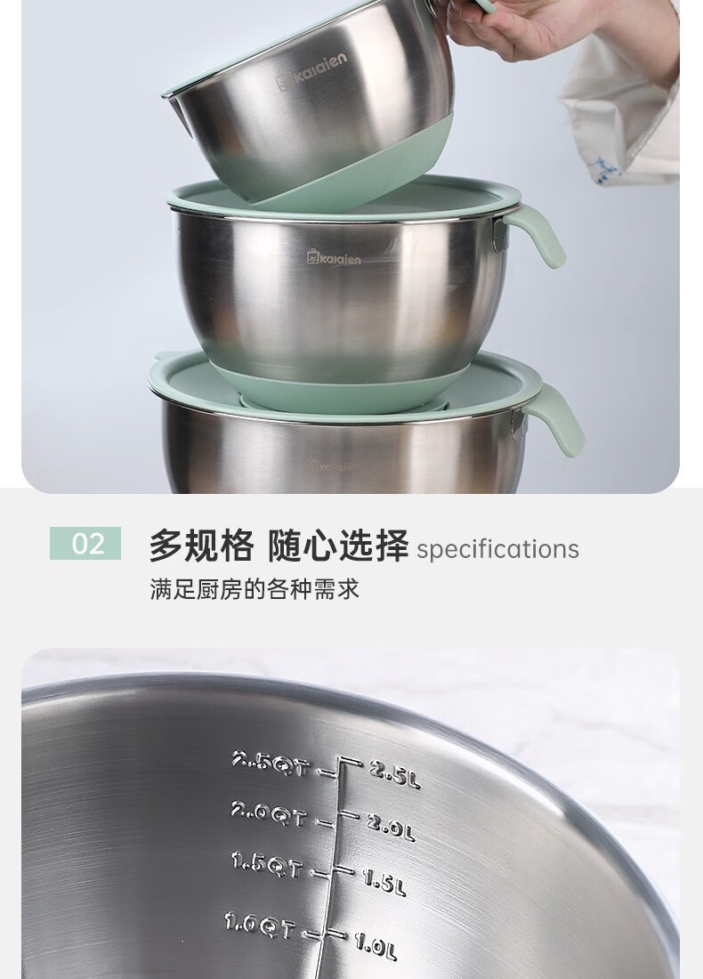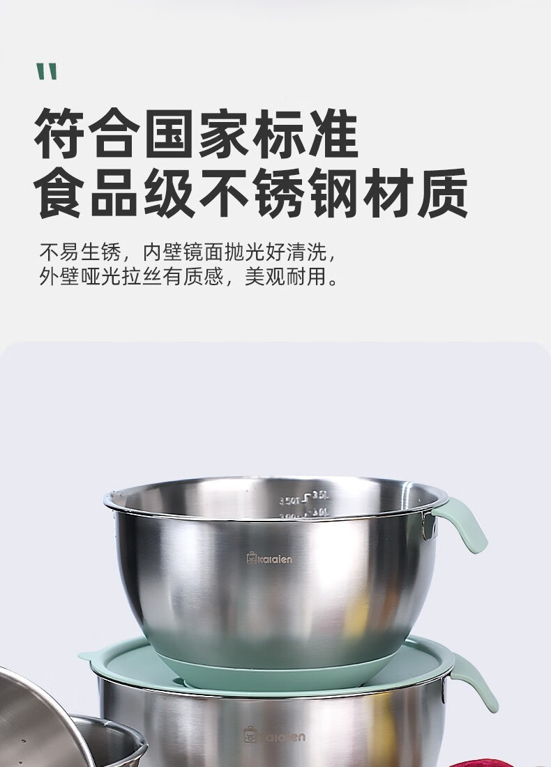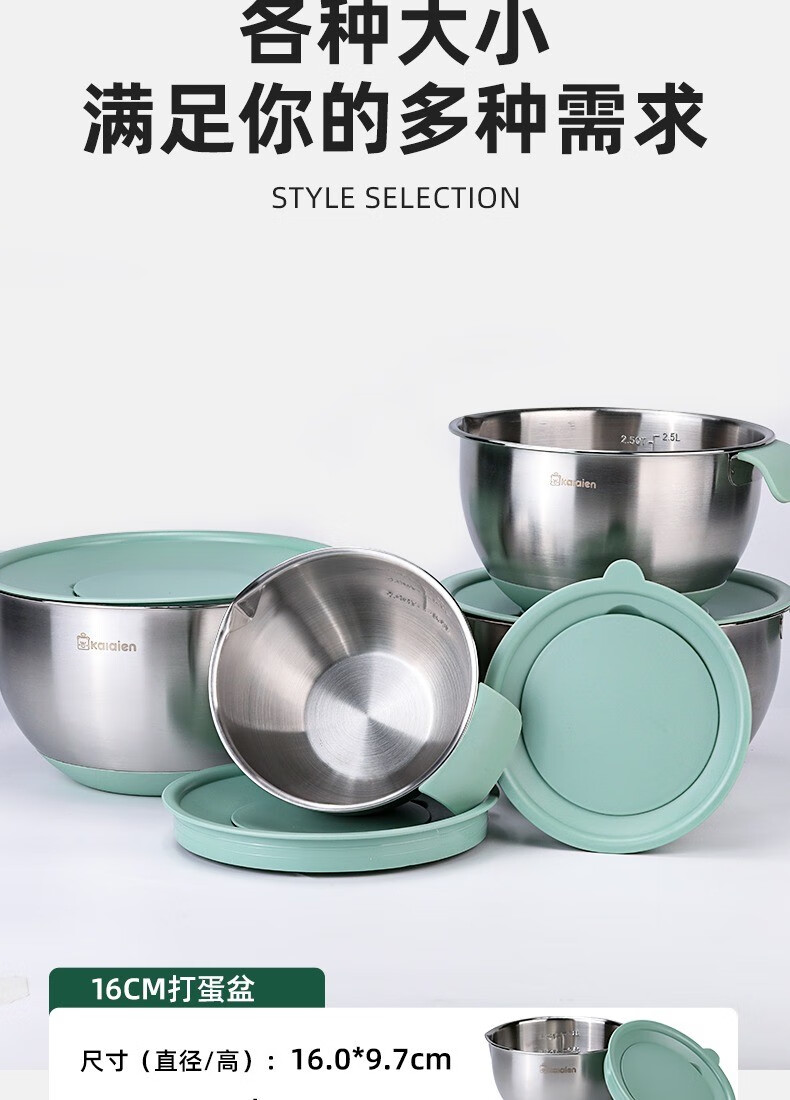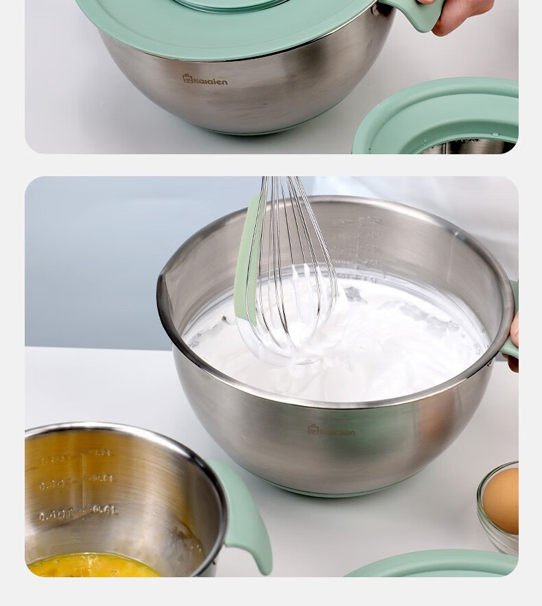 KALAIEN food-grade stainless steel egg-beating basin with lid, baking special cooking basin, home kitchen and basin deepening and thickening basin, upgraded 20cm, with mother-in-law cover + with handle
