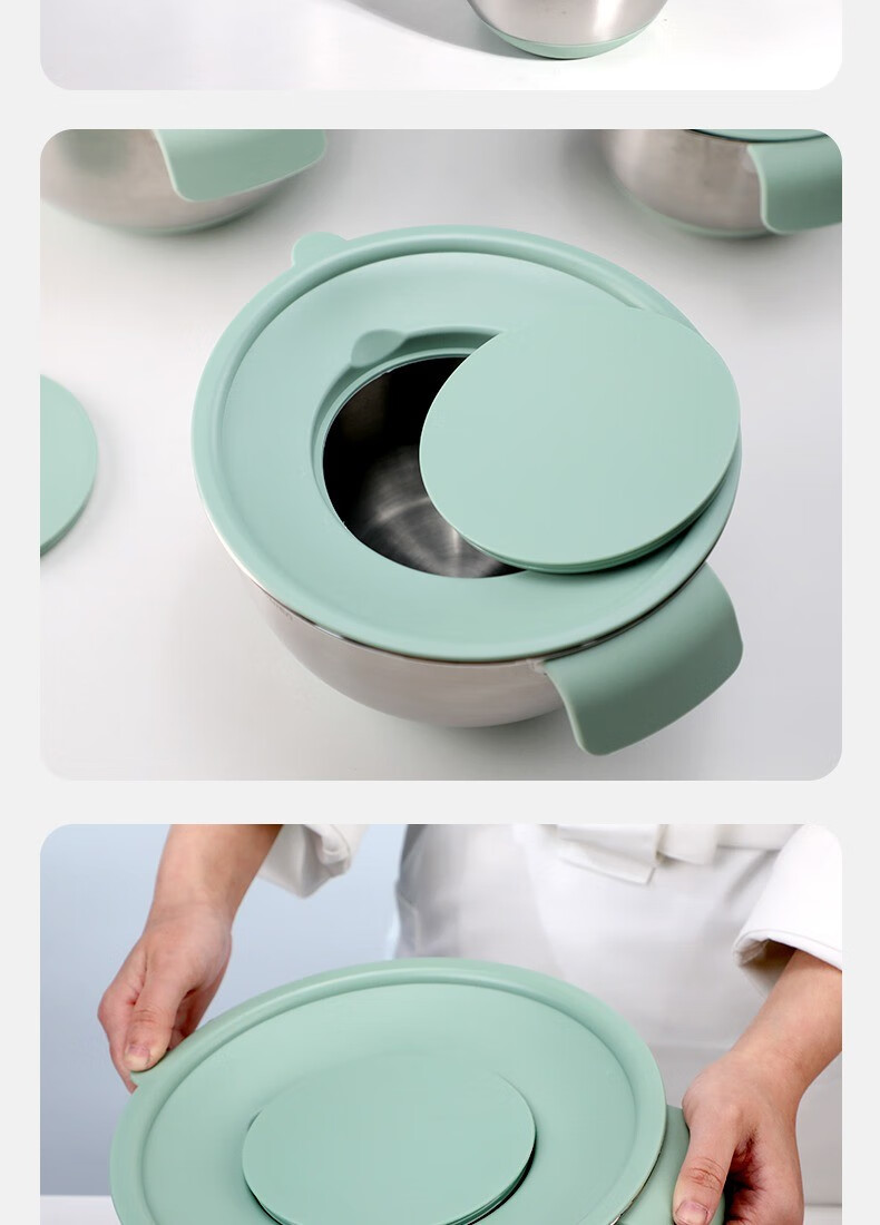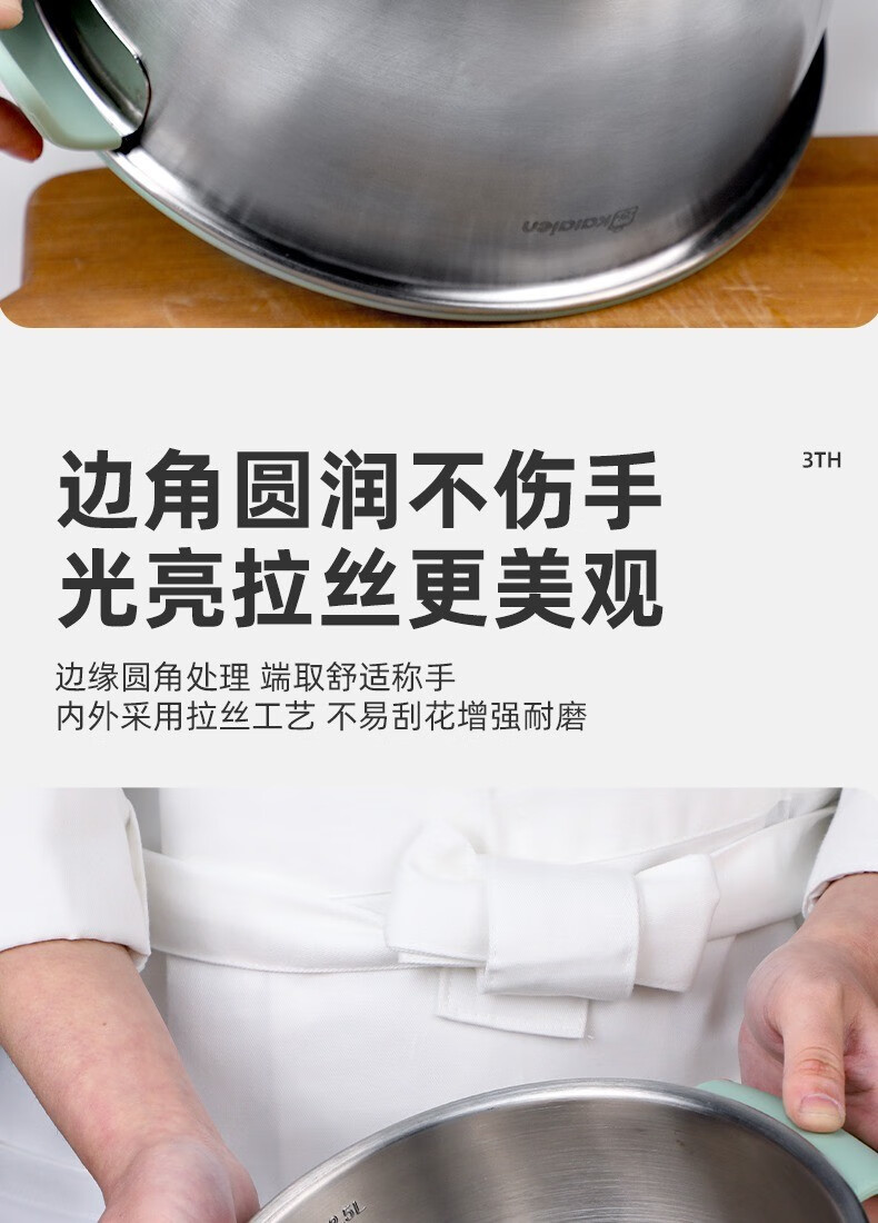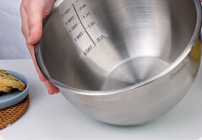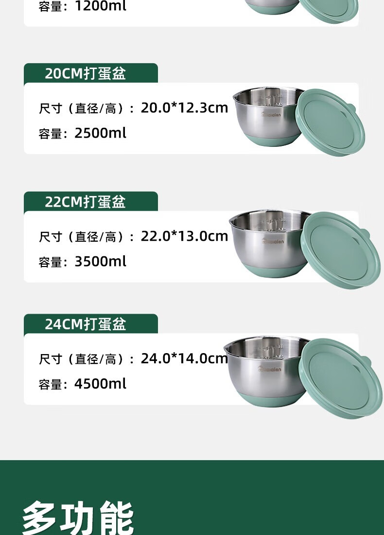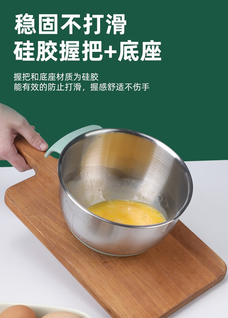 KALAIEN food-grade stainless steel egg-beating basin with lid, baking special cooking basin, home kitchen and basin deepening and thickening basin, upgraded 20cm, with mother-in-law cover + with handle