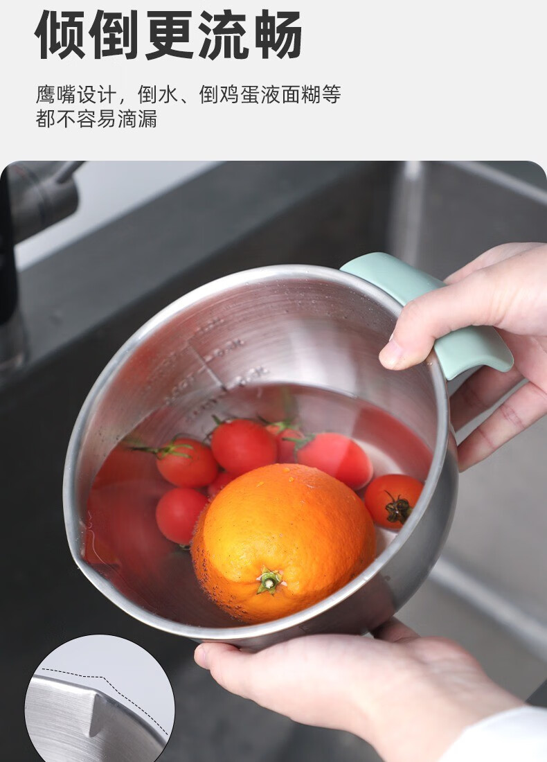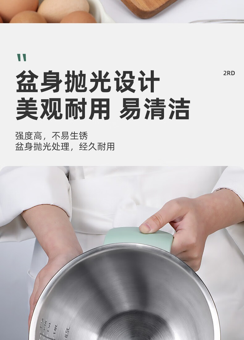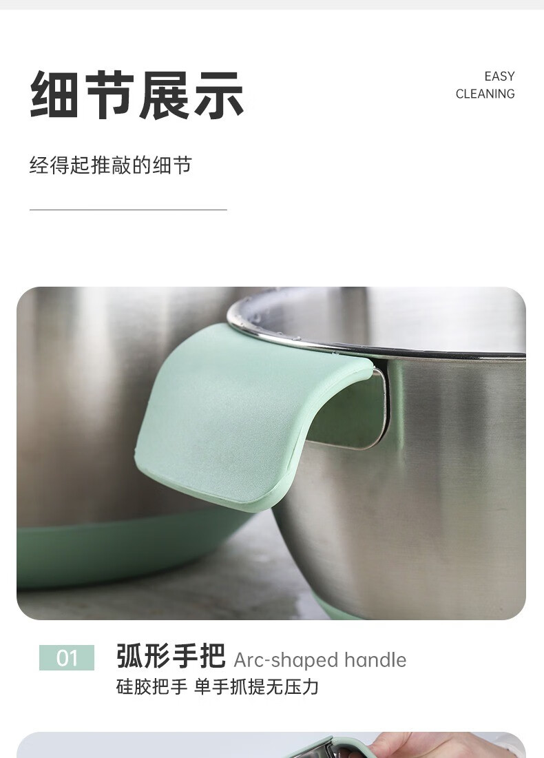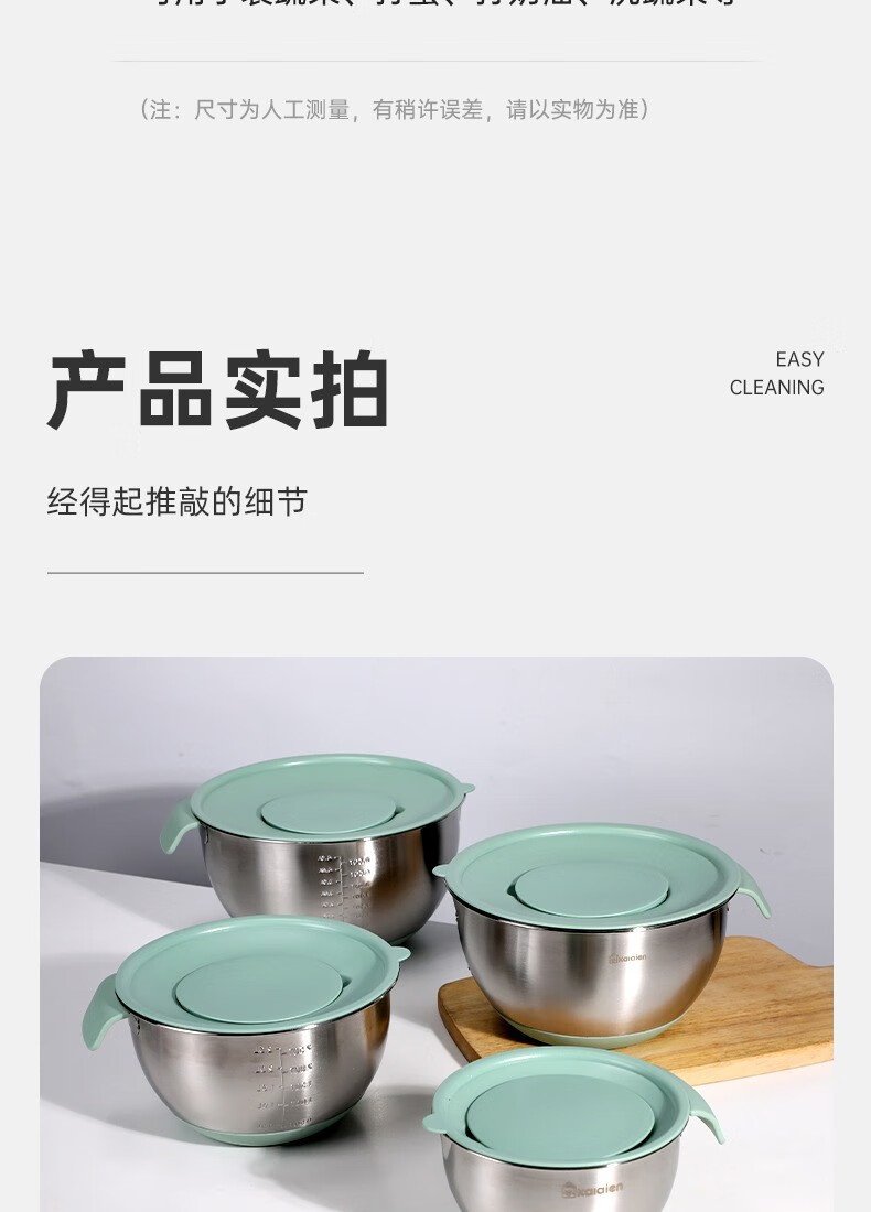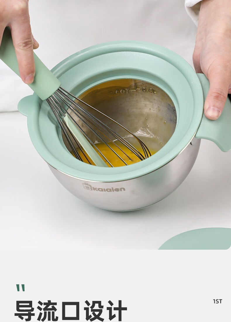 KALAIEN food-grade stainless steel egg-beating basin with lid, baking special cooking basin, home kitchen and basin deepening and thickening basin, upgraded 20cm, with mother-in-law cover + with handle