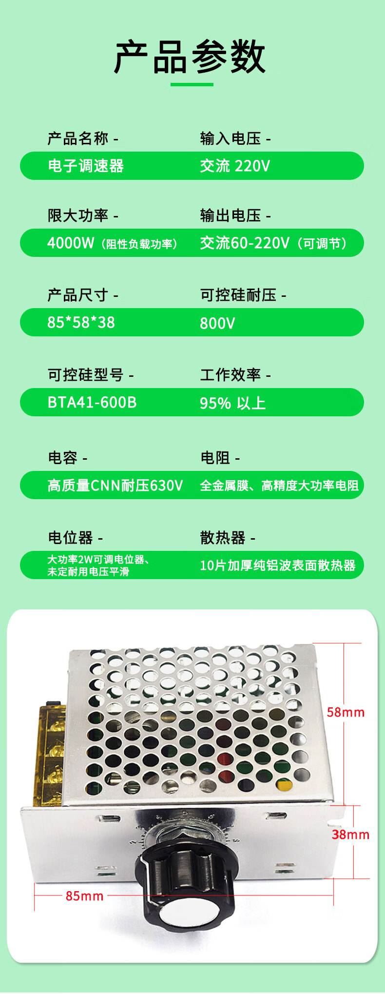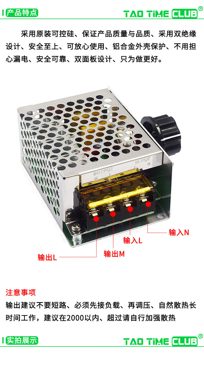 4000W thyristor high power AC motor electronic voltage regulator module dimming speed and temperature 220V No Specifications No Specifications