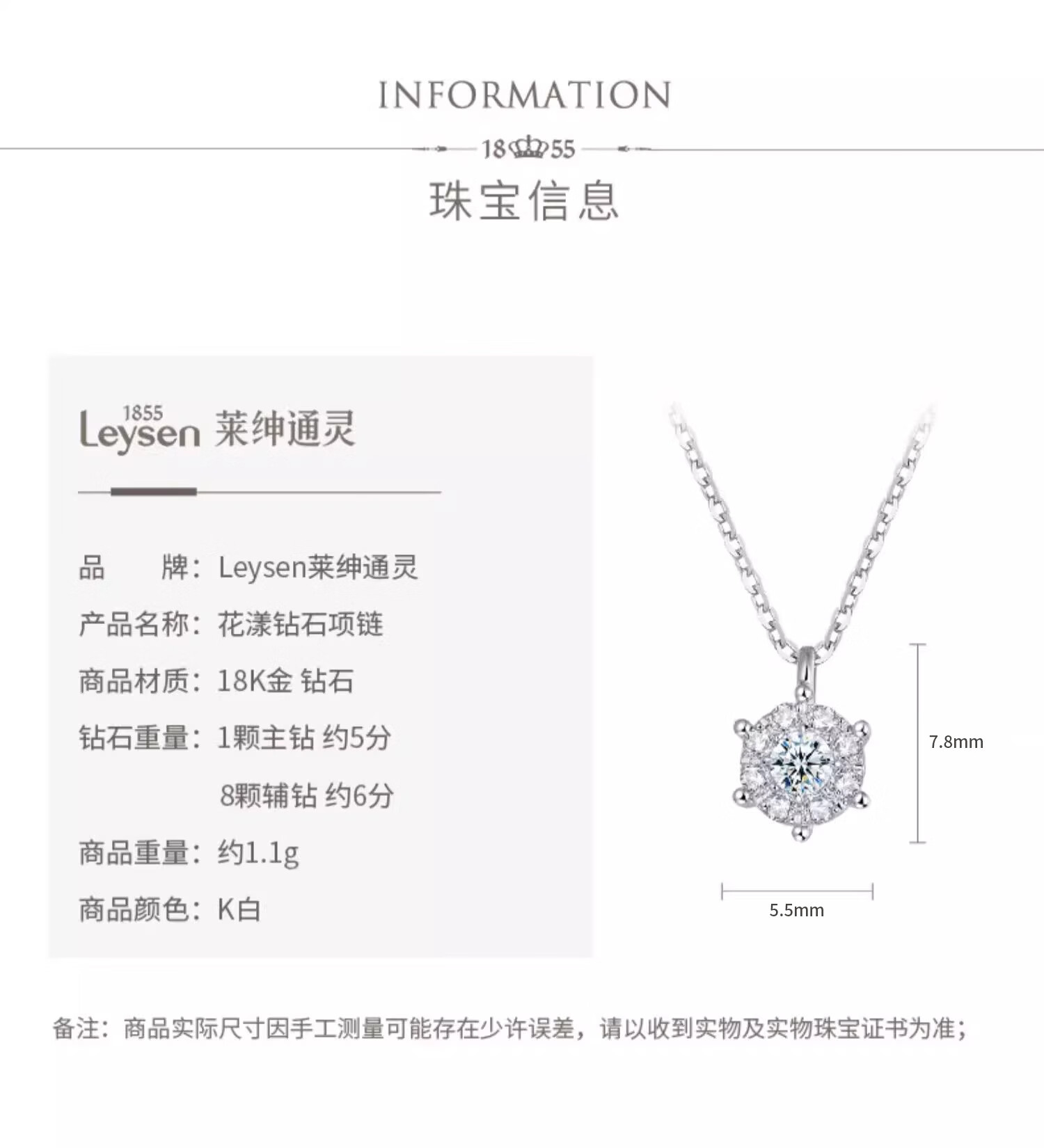 Leysen1855 18K gold necklace for women, clavicle chain, diamond pendant, flowery New Year gift for girlfriend, necklace