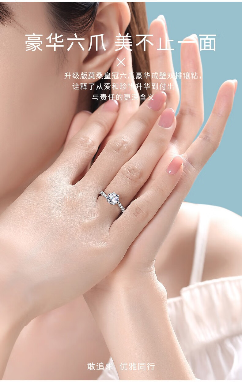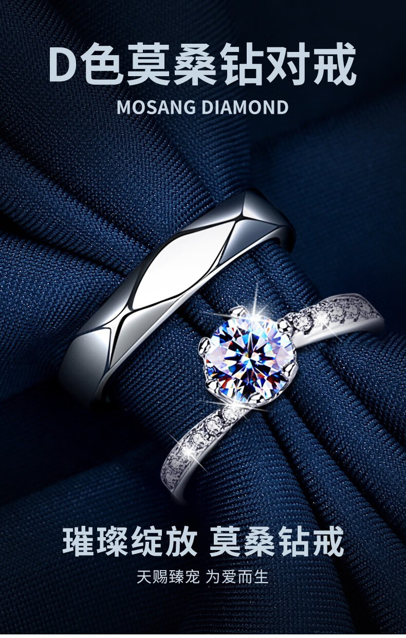 MZMZ platinum ring one carat couple ring proposal wedding birthday anniversary gift for girlfriend light luxury model-heartbeat ring