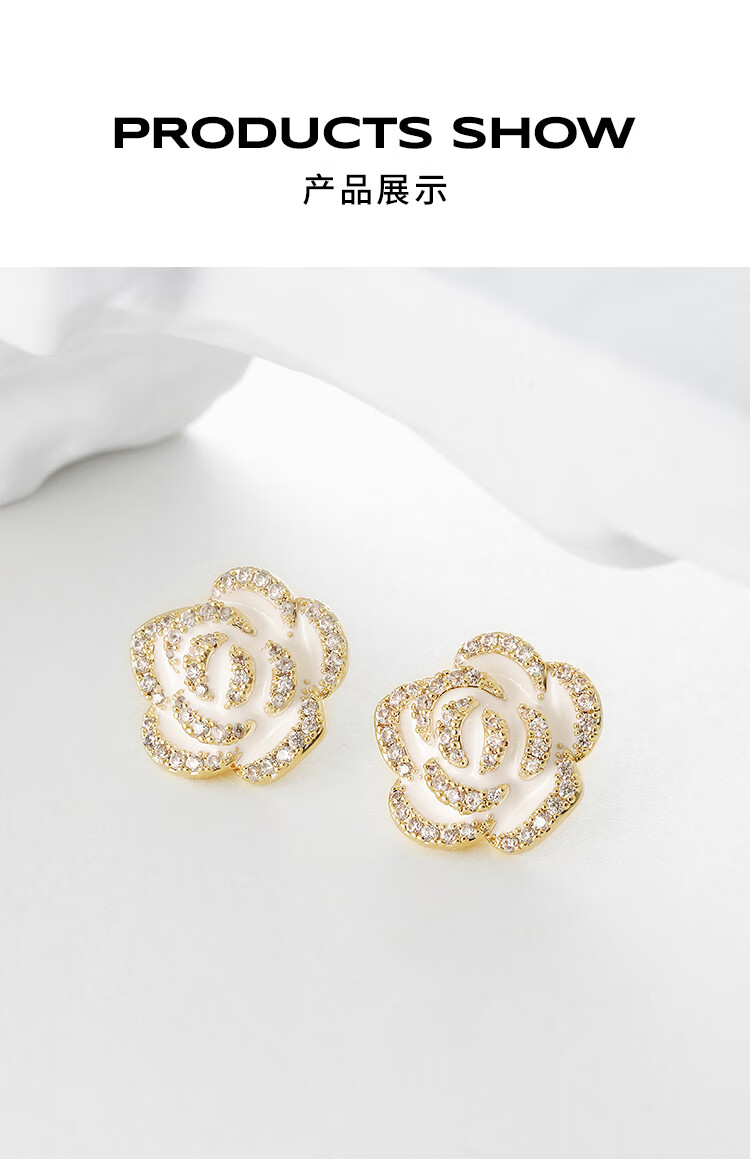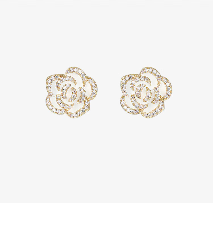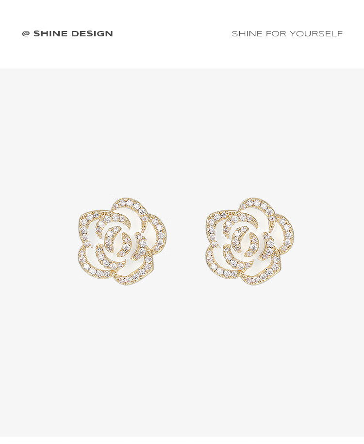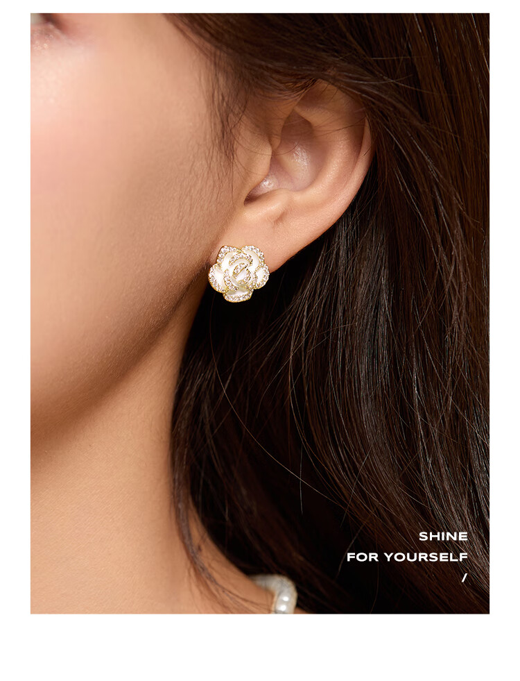 SHINE Camellia Elegant Earrings Flower Earrings Design Earrings Spring Atmosphere Earrings Birthday Gift Gold