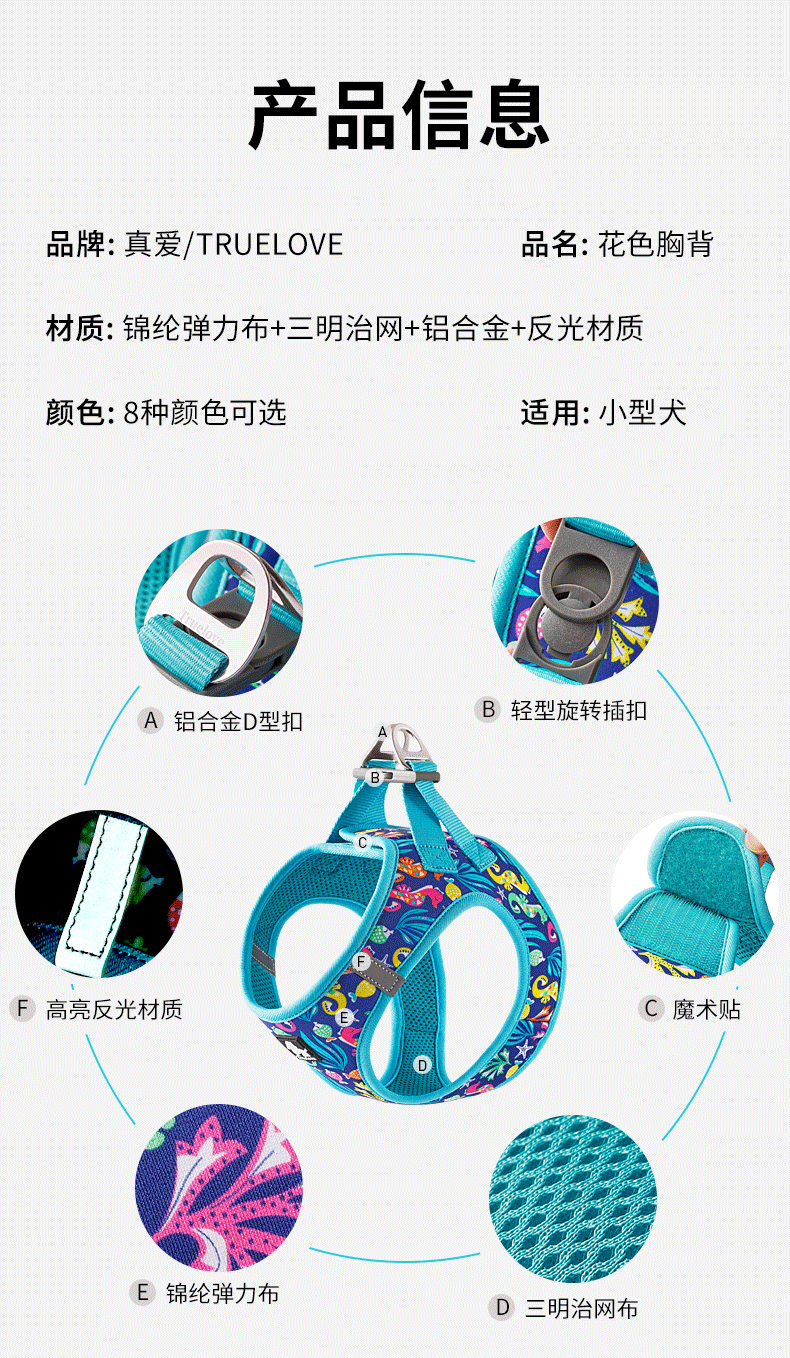 TRUELOVE dog leash dog leash dog walking rope small dog Teddy Corgi harness vest style outing pet supplies Rainbow Pony XS-bust 32-36cm recommended 5-8Jin Jin equals 0.5 kg