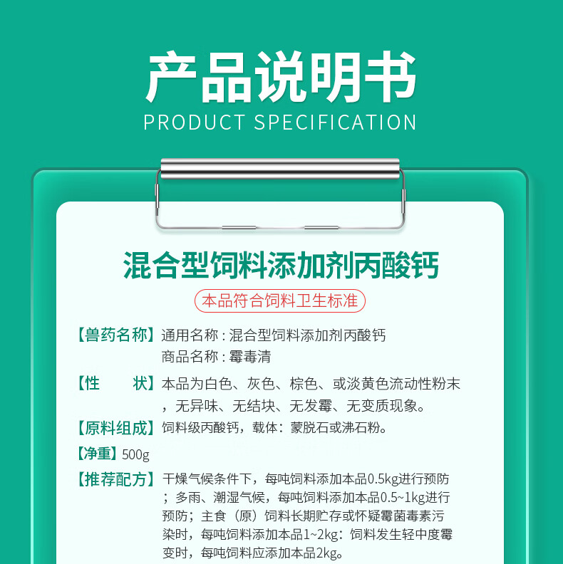 HVSEN BIOTECH mycotoxin removal agent 500g for pregnant animals can be used for sows, pregnant piglets and piglets feed additives calcium propionate 20 packs * 500g, a total of 1 box