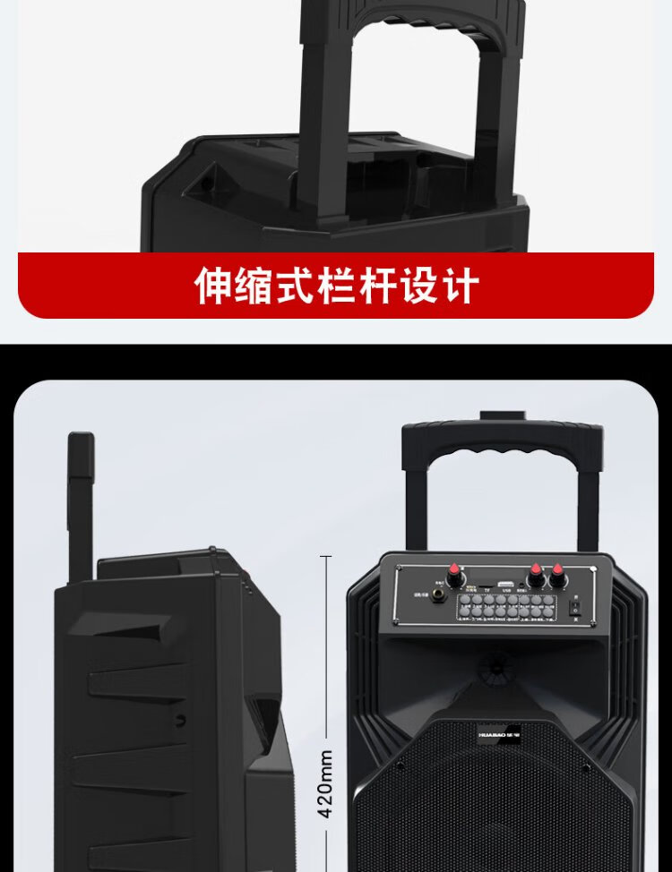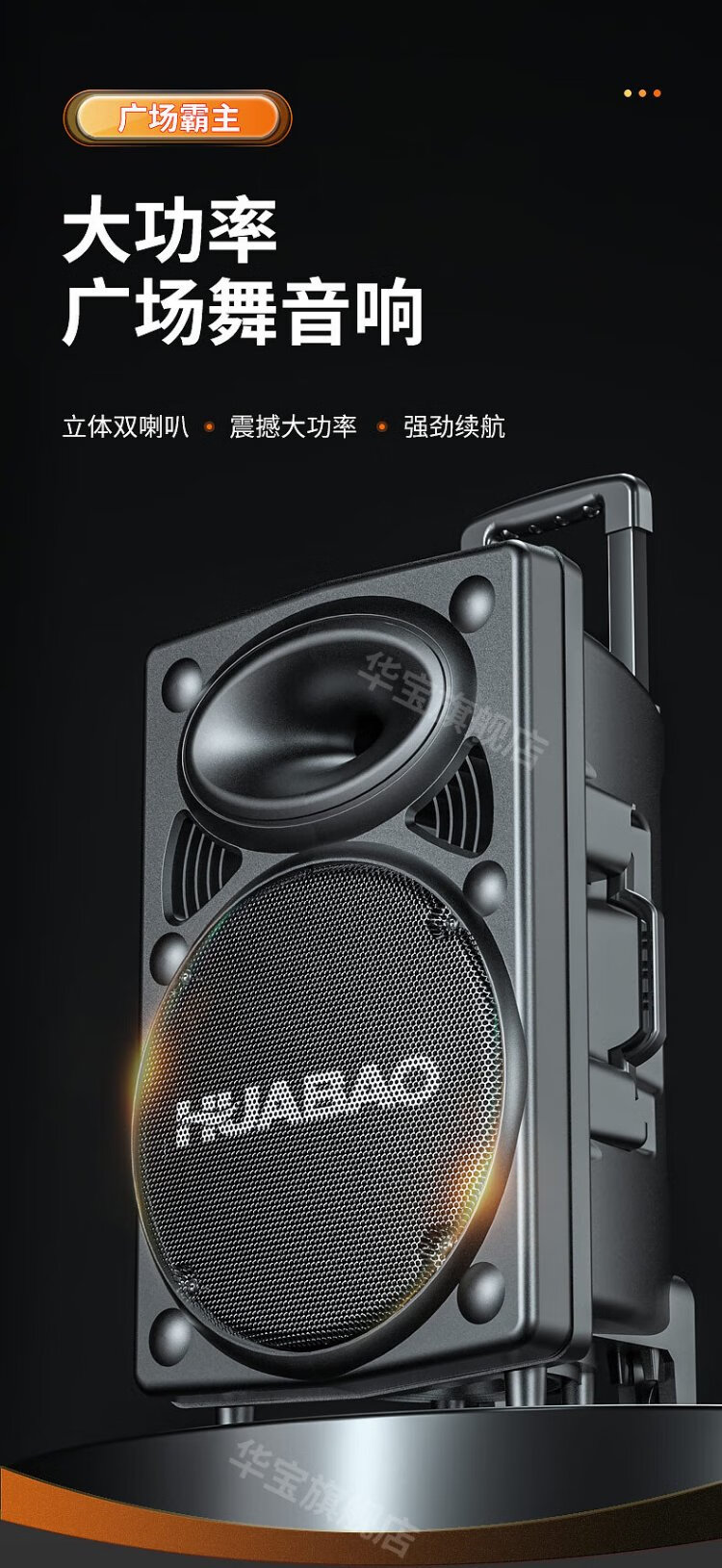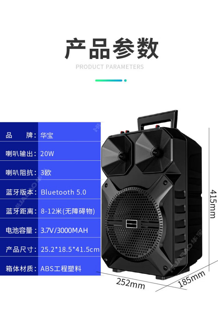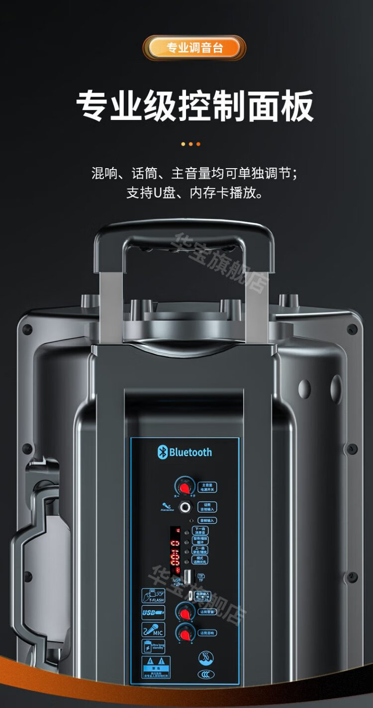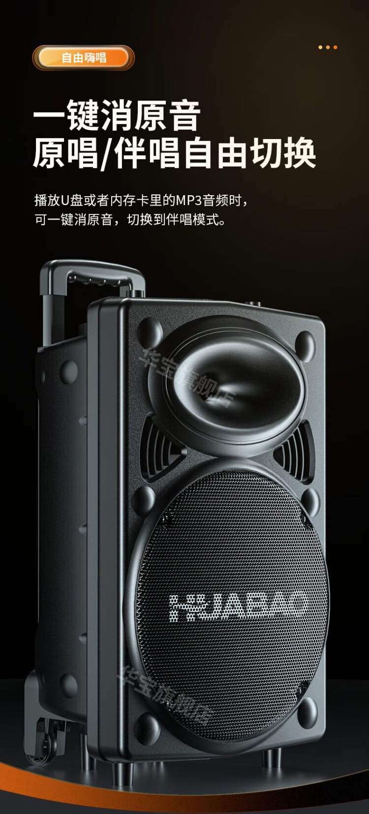 Huabao square dance trolley audio dance speaker mobile outdoor high-power speaker Bluetooth portable portable mobile performance K song subwoofer with wireless microphone ground 10-inch high-power trolley speaker single microphone