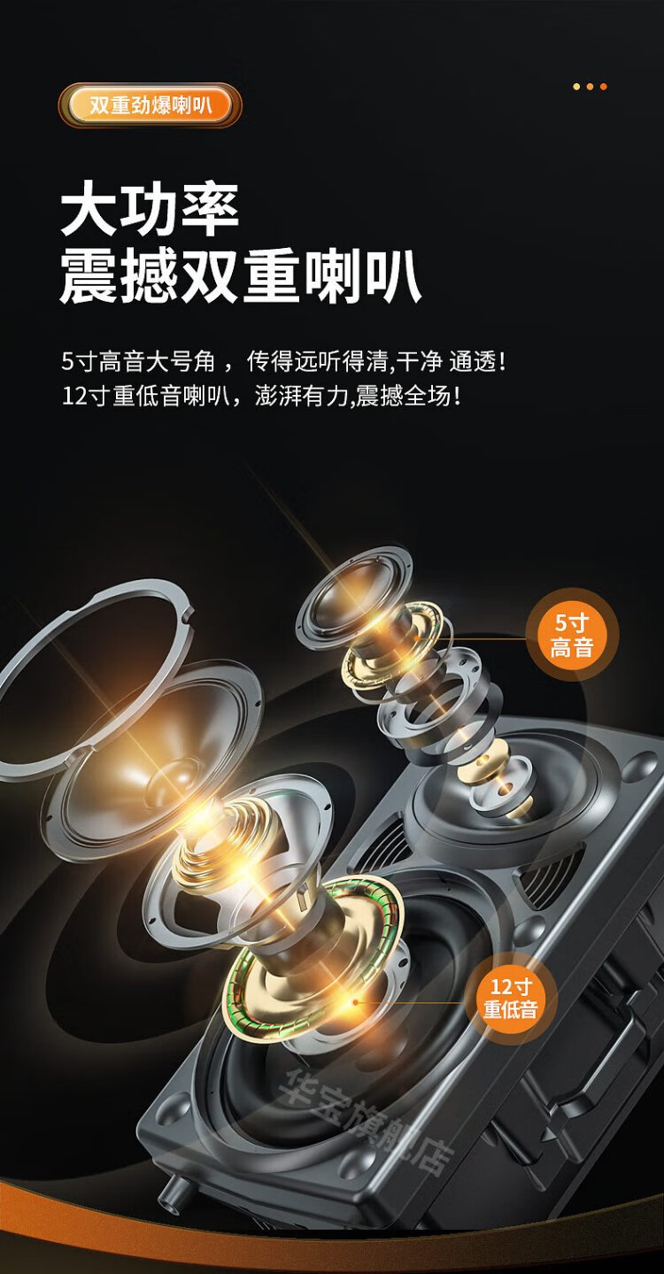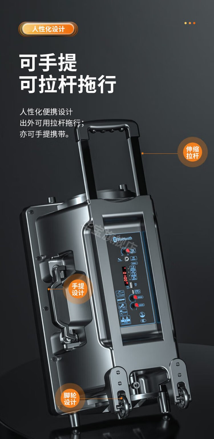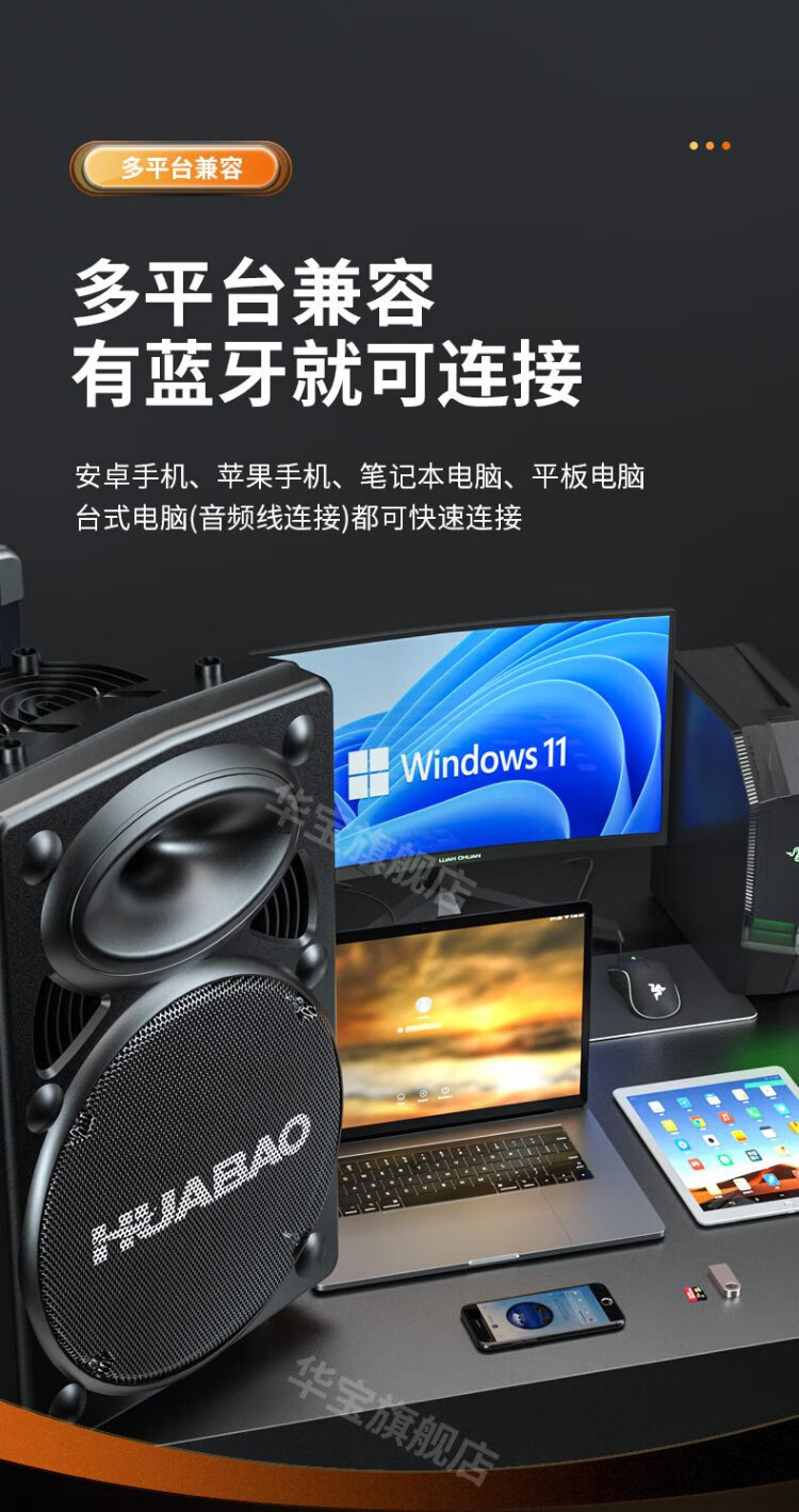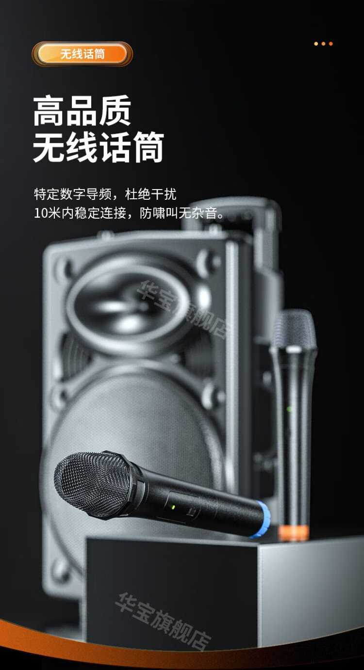 Huabao square dance trolley audio dance speaker mobile outdoor high-power speaker Bluetooth portable portable mobile performance K song subwoofer with wireless microphone ground 10-inch high-power trolley speaker single microphone