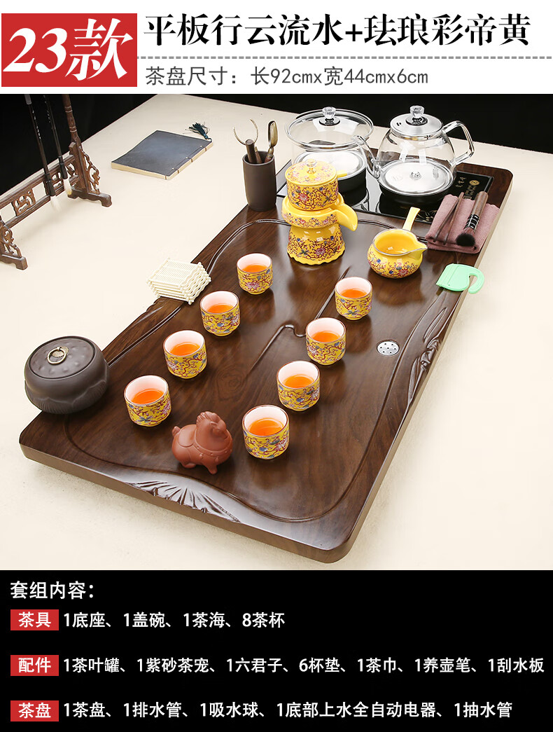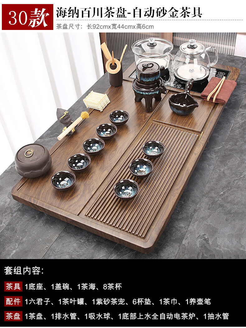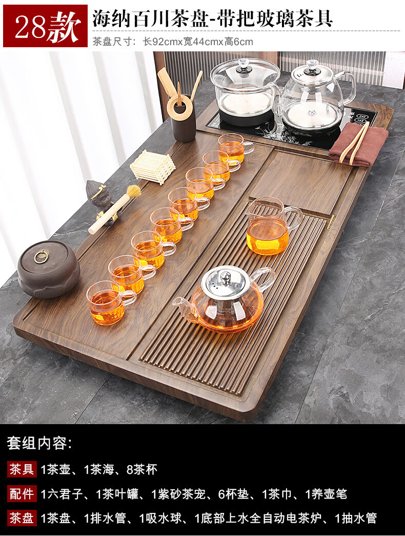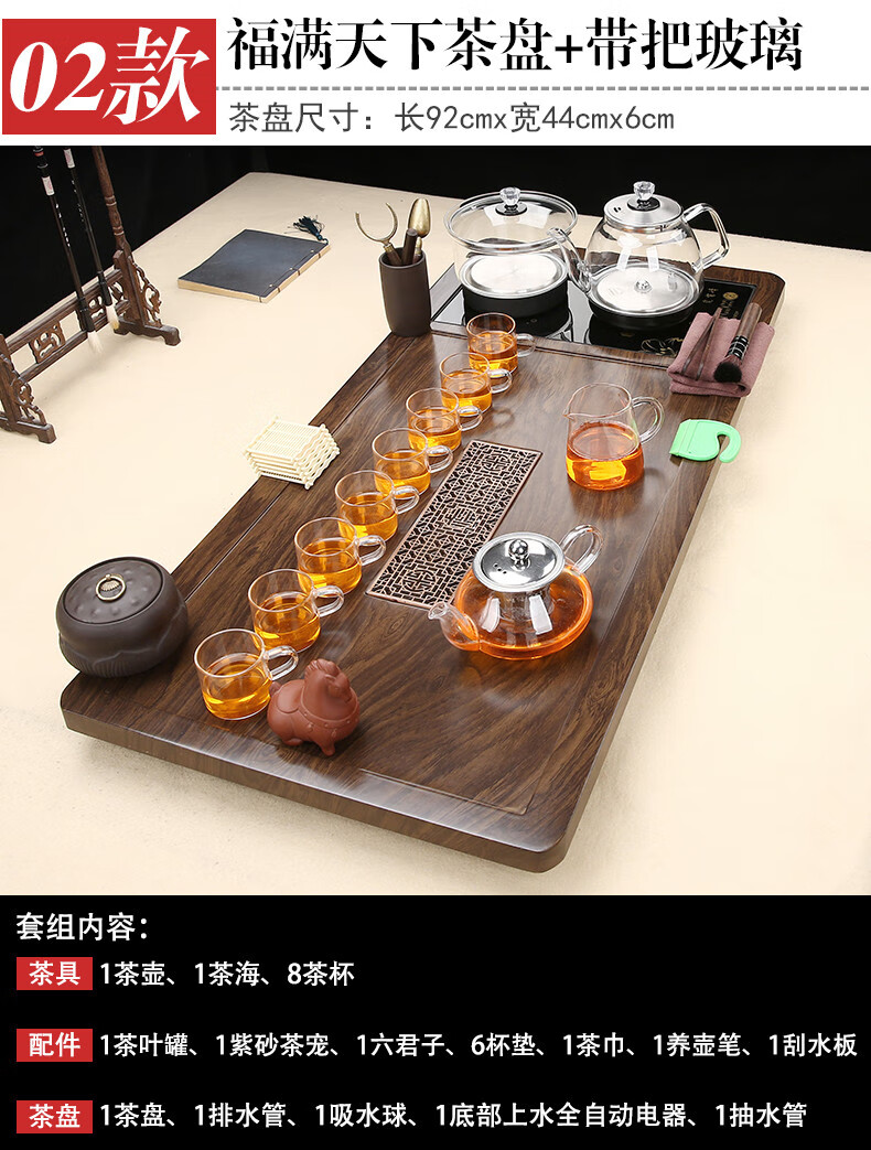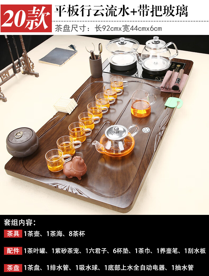 Fengziqi fully automatic glass bottom water filling tea tray home living room kung fu tea set one large tea table complete office set Fumantianxia + with handle glass + bottom water filling