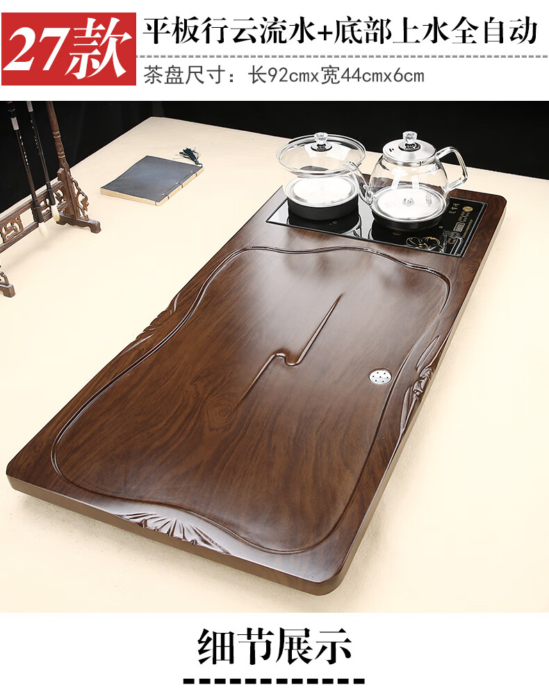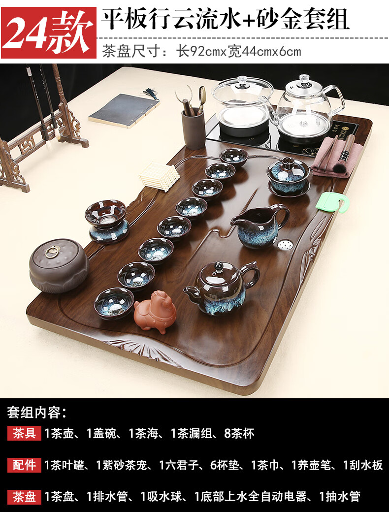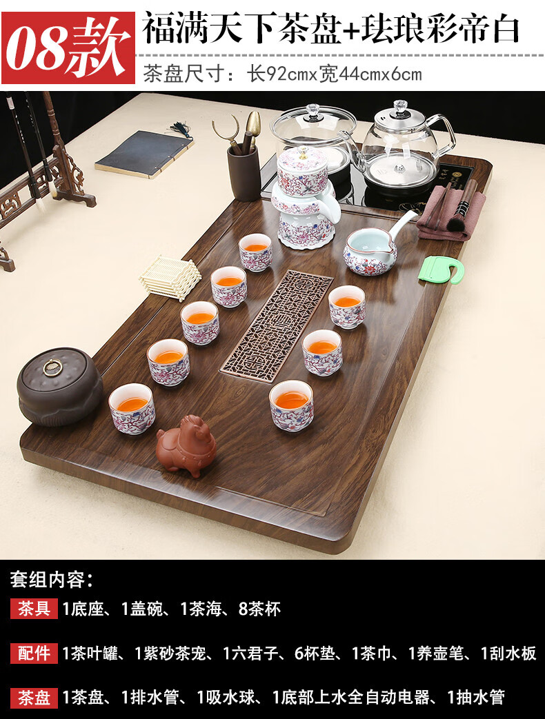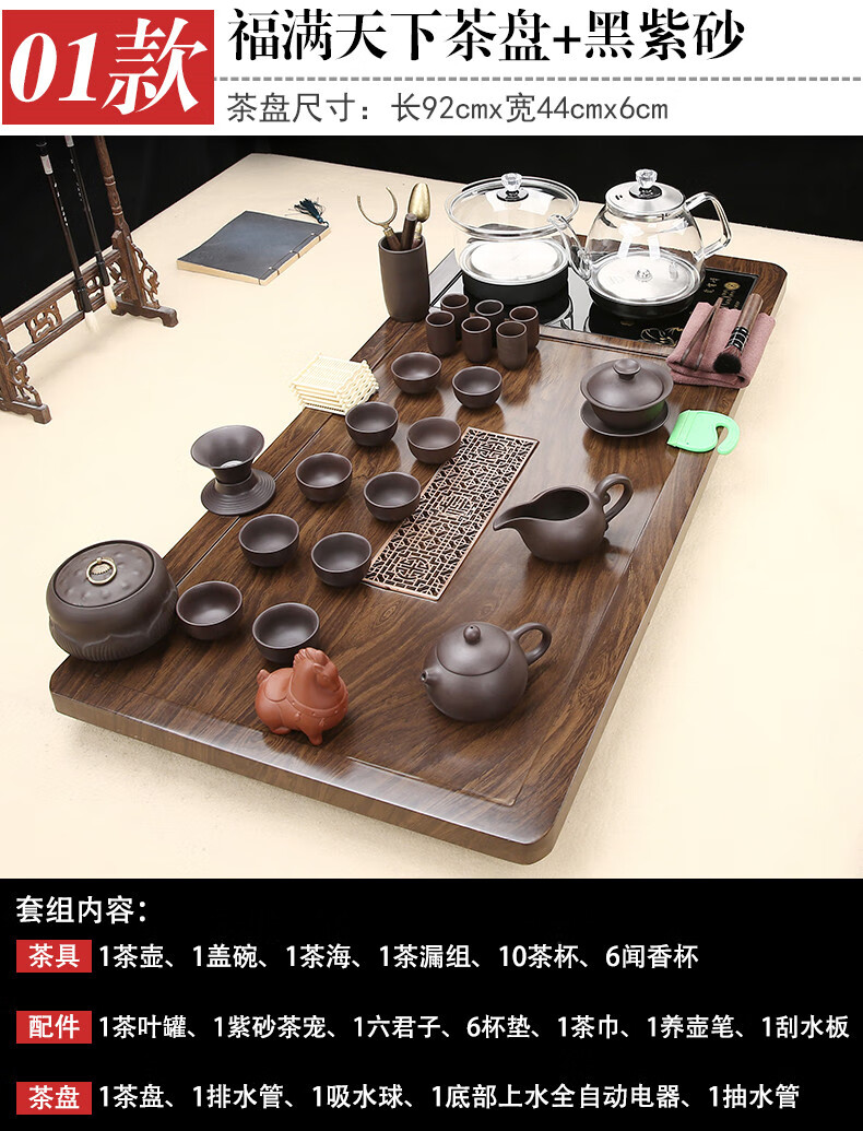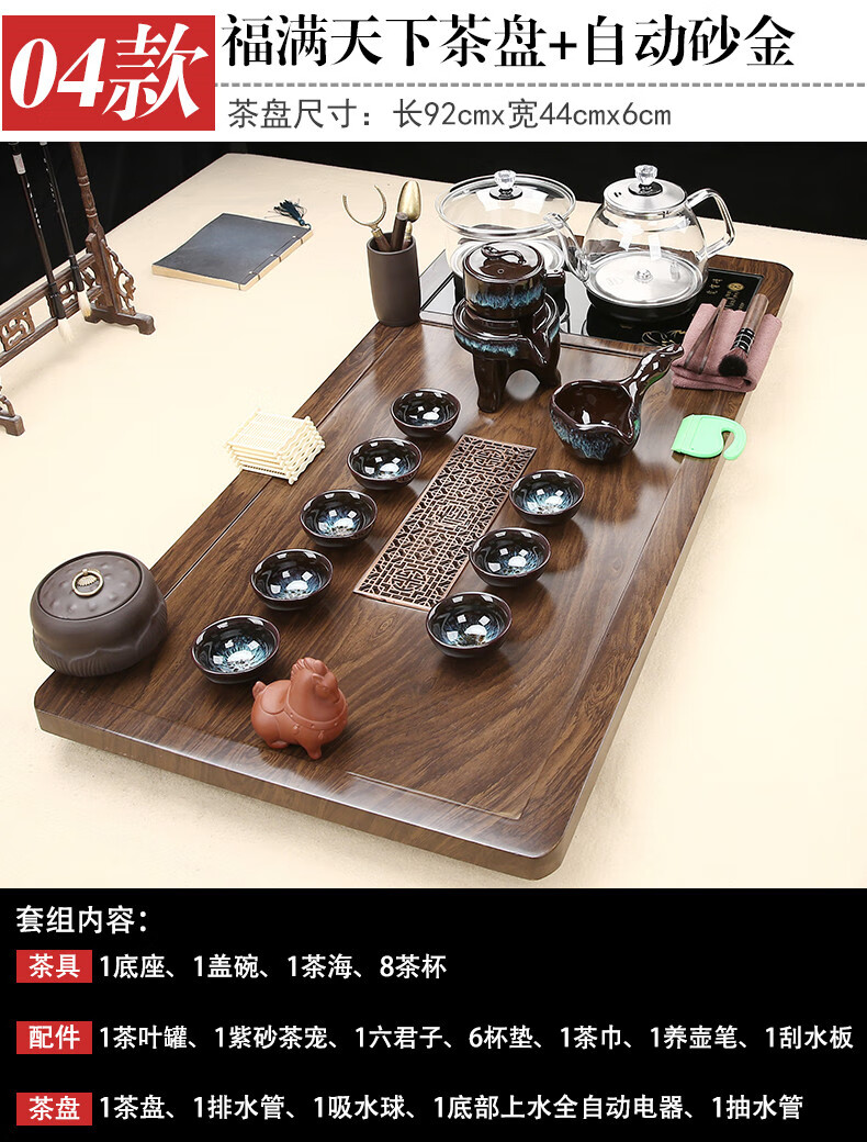 Fengziqi fully automatic glass bottom water filling tea tray home living room kung fu tea set one large tea table complete office set Fumantianxia + with handle glass + bottom water filling