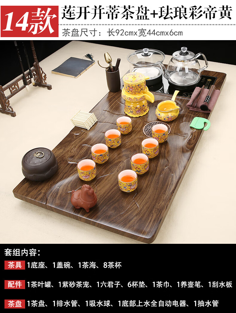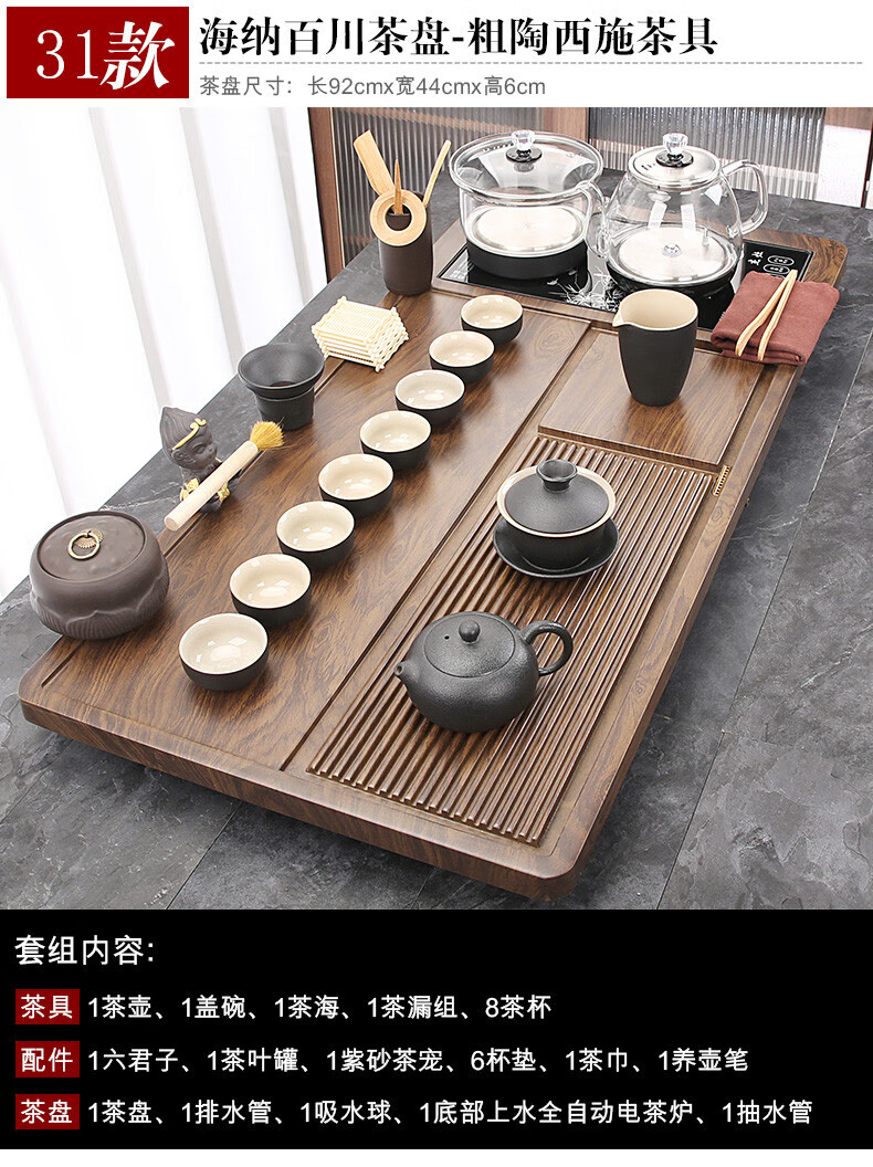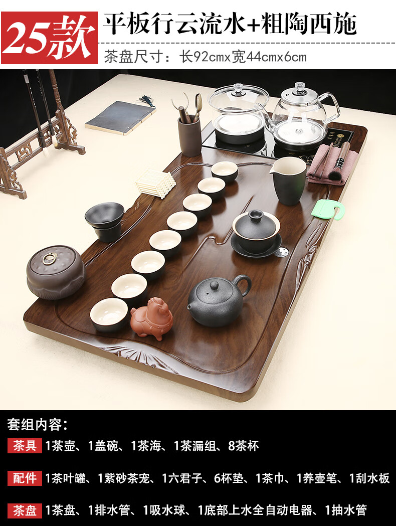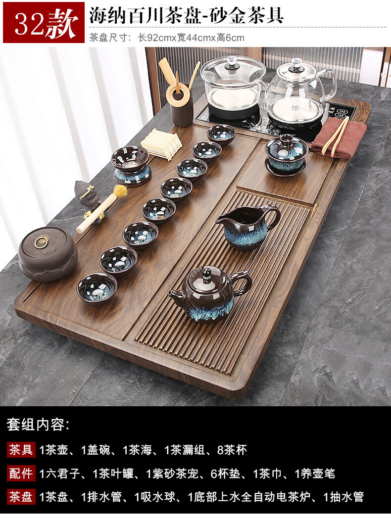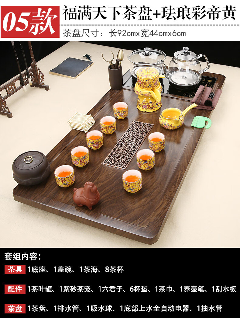 Fengziqi fully automatic glass bottom water filling tea tray home living room kung fu tea set one large tea table complete office set Fumantianxia + with handle glass + bottom water filling