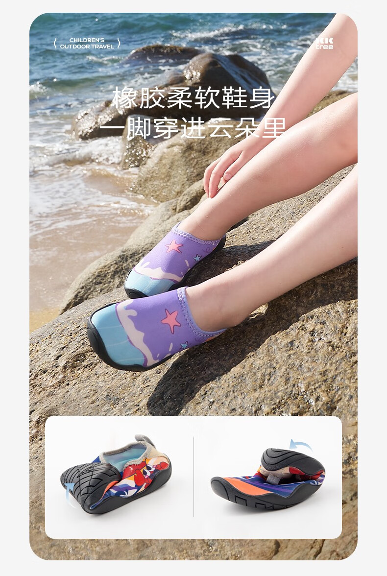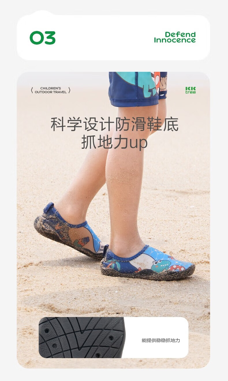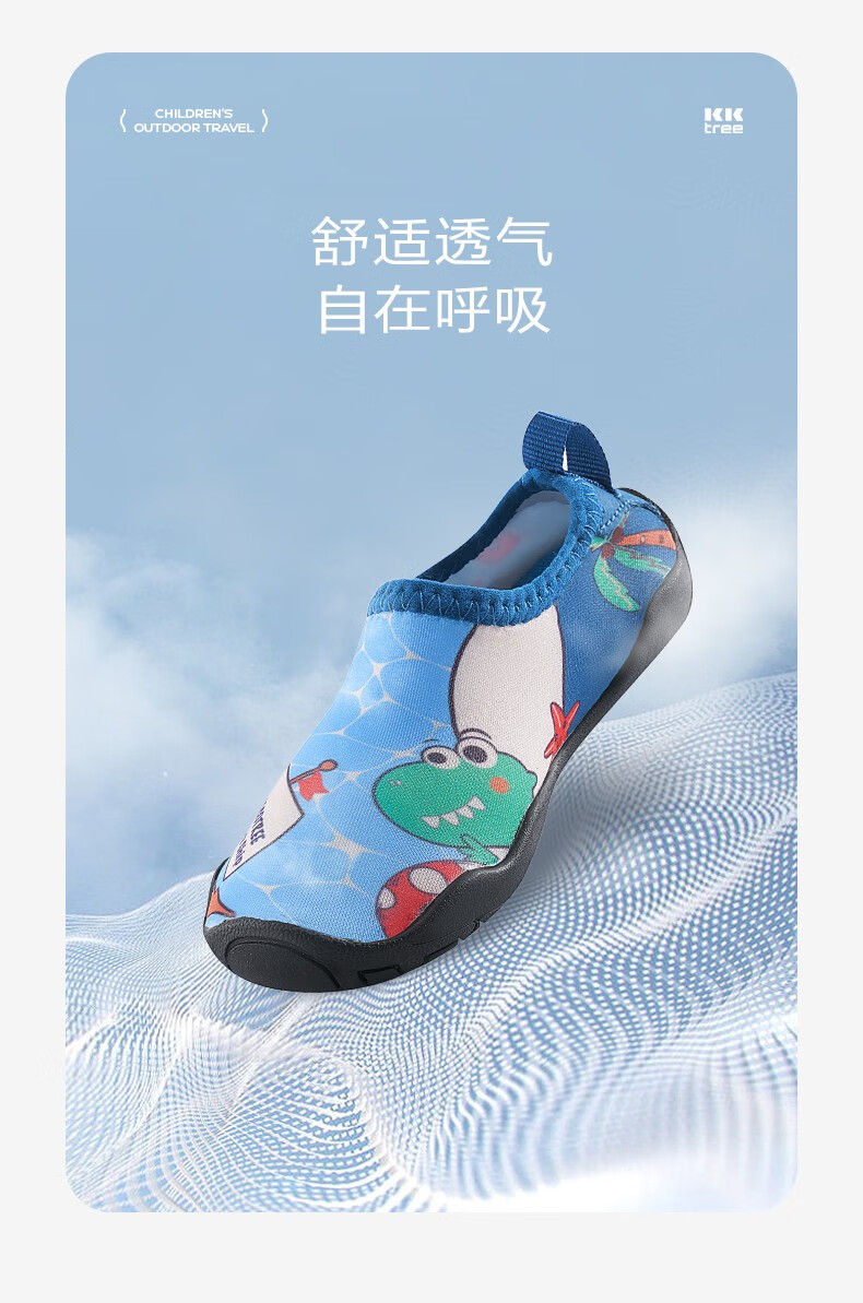 Kocotree children's beach shoes non-slip and anti-cut boys and girls baby river shoes water park wading swimming socks and shoes Adventure Dinosaur 26.5 Applicable size 26/27