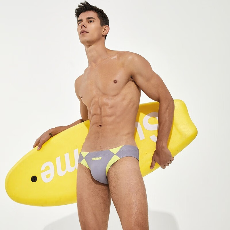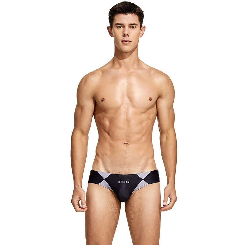 Hibbing (SEOBEAN) men's swimming trunks, professional training triangle swimming trunks, beach competition, boys' swimsuit, racing low-waist sexy hot spring, white M (waist 2-2.3 feet)