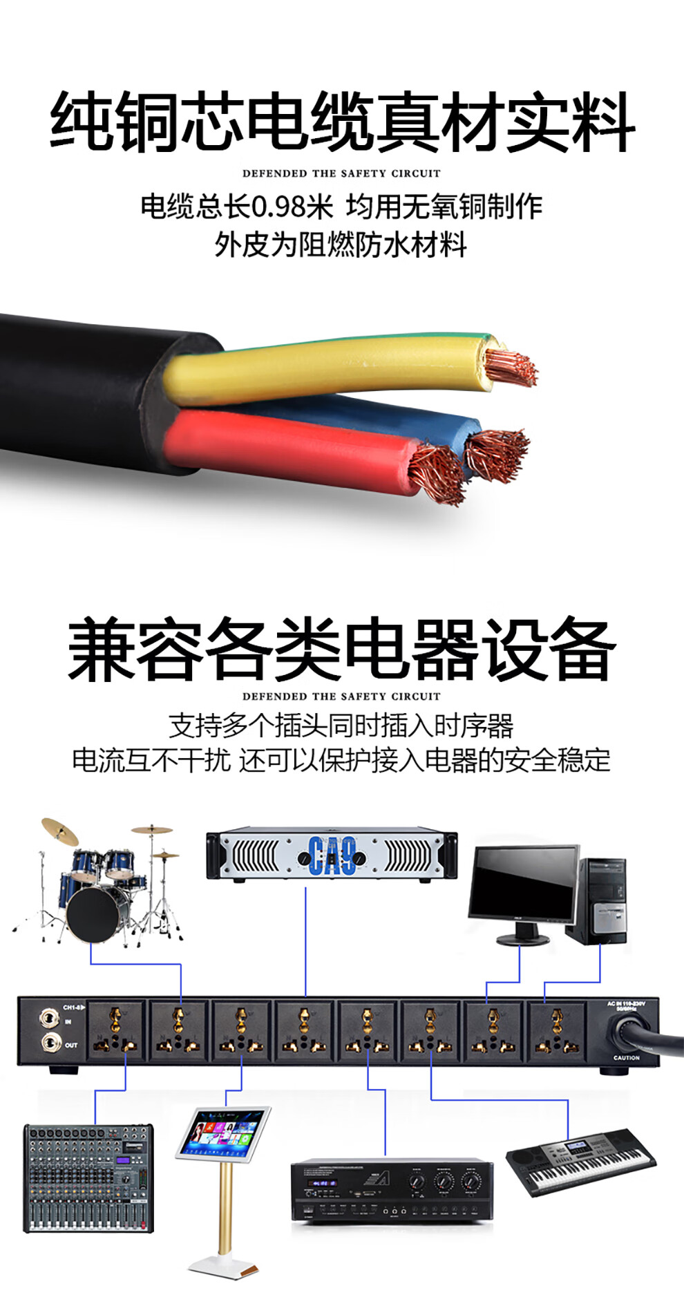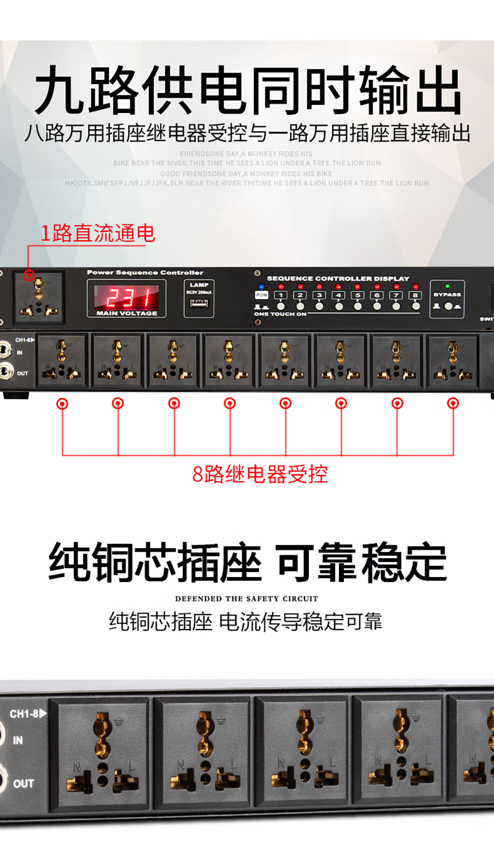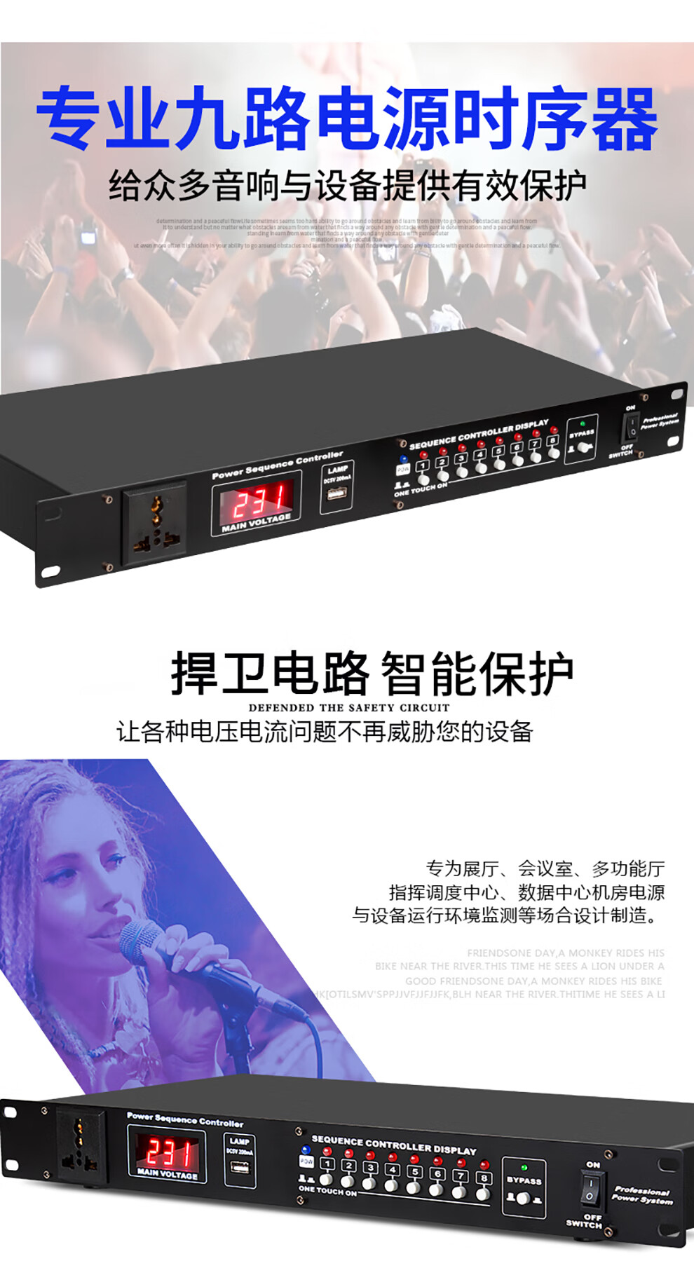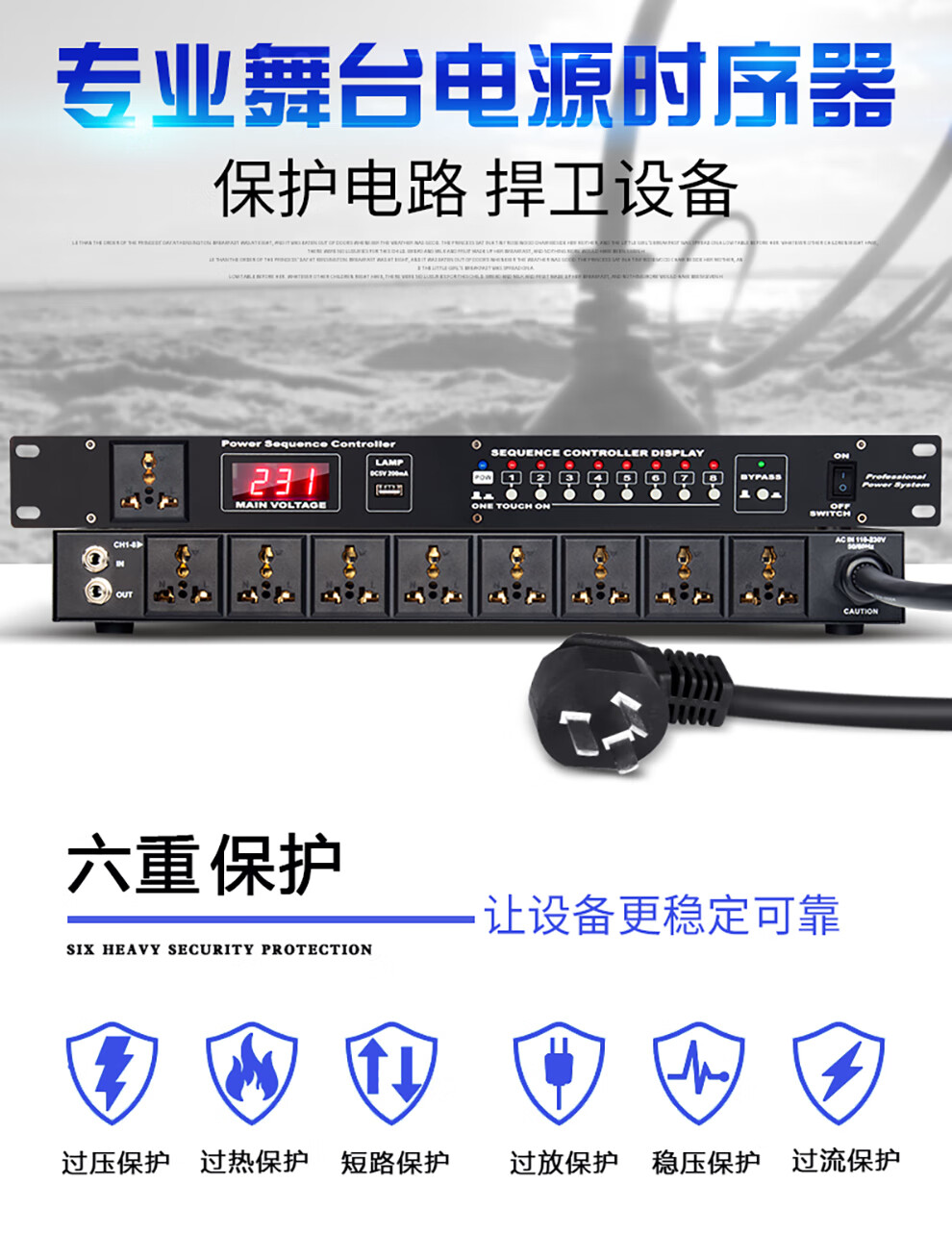 Depusheng 9-way power sequencer professional home conference stage performance wedding KTV box with remote control voltage display protection single-channel independent switch USB high power DL-2 DL-2 with remote control 8+1