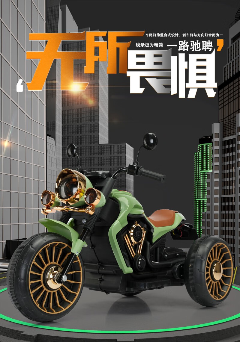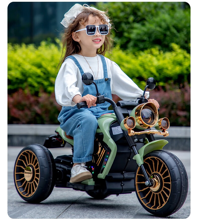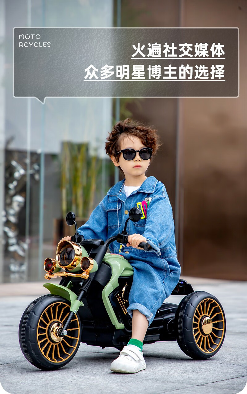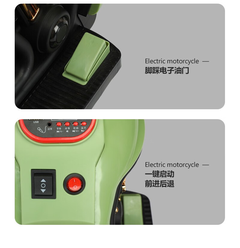 Youxiwa children's electric motorcycle tricycle for boys and girls baby battery car for children to sit on and charge remote control toy car green big battery/Bluetooth early education/dual drive remote control