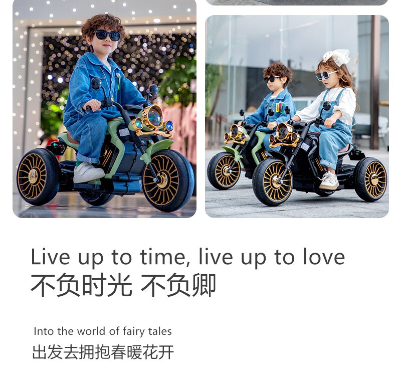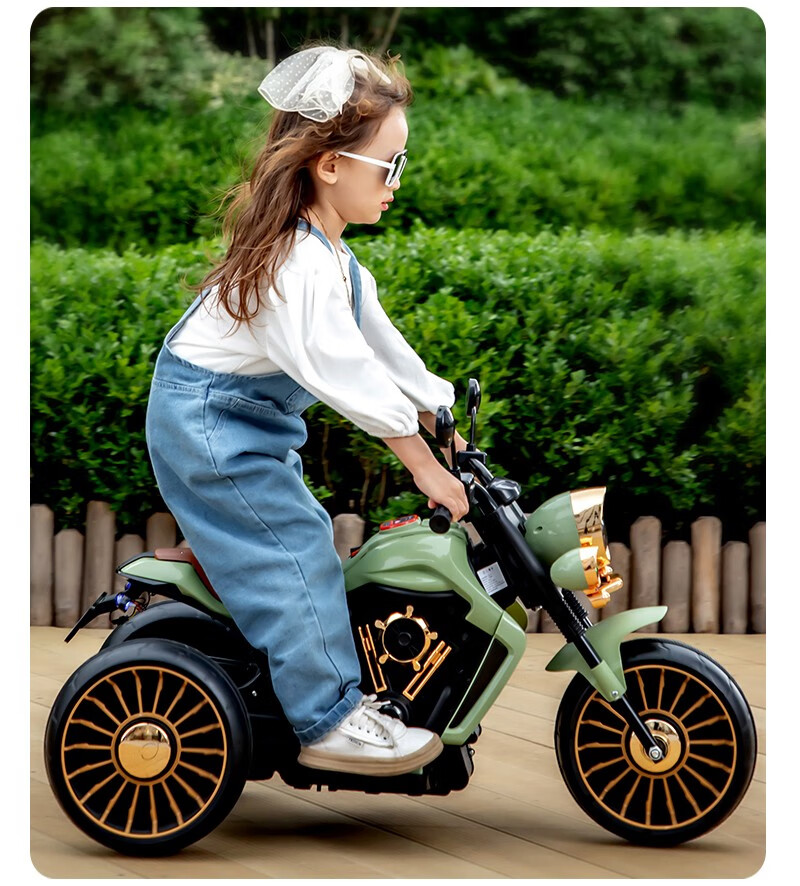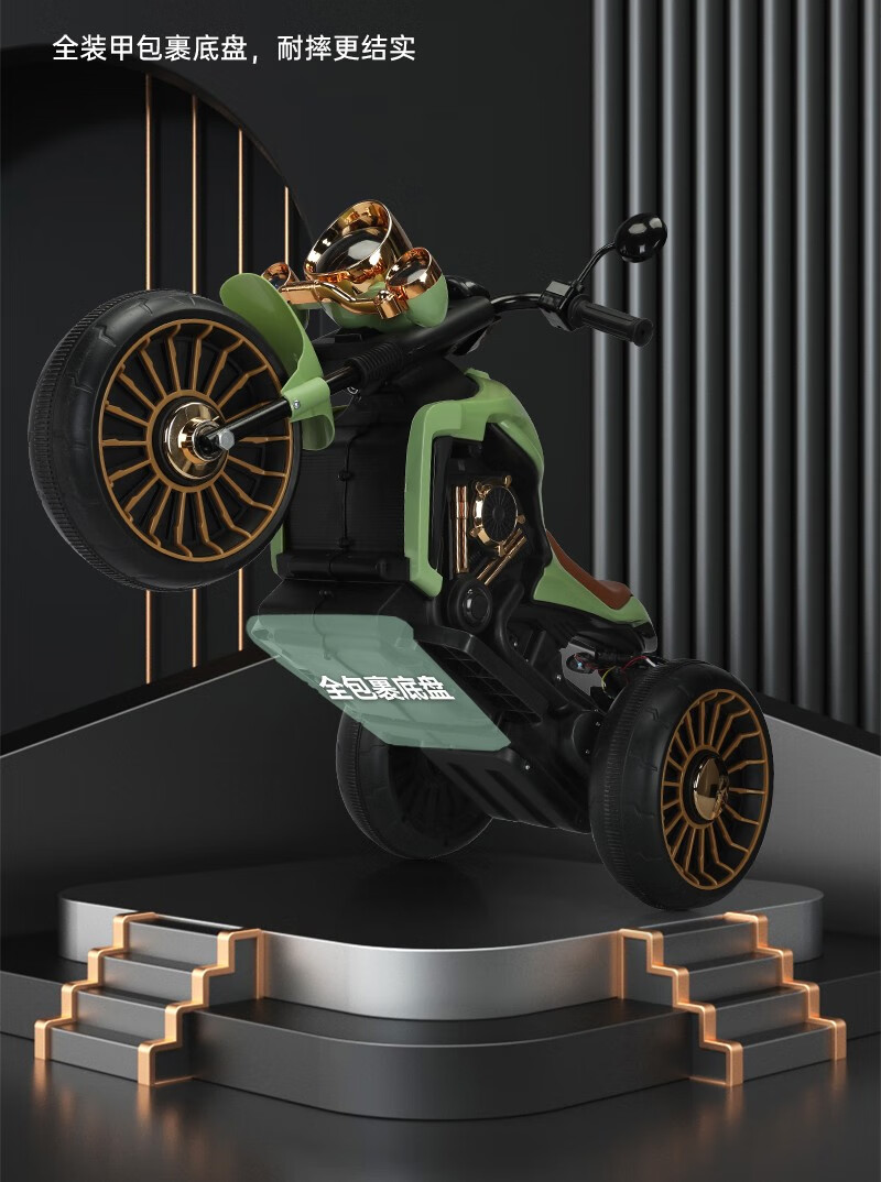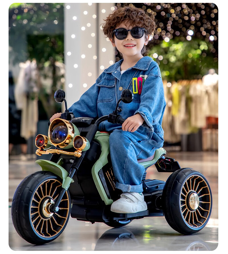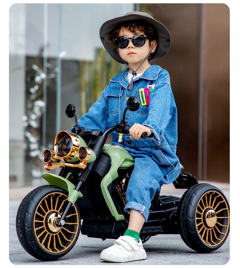 Youxiwa children's electric motorcycle tricycle for boys and girls baby battery car for children to sit on and charge remote control toy car green big battery/Bluetooth early education/dual drive remote control