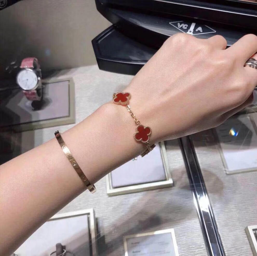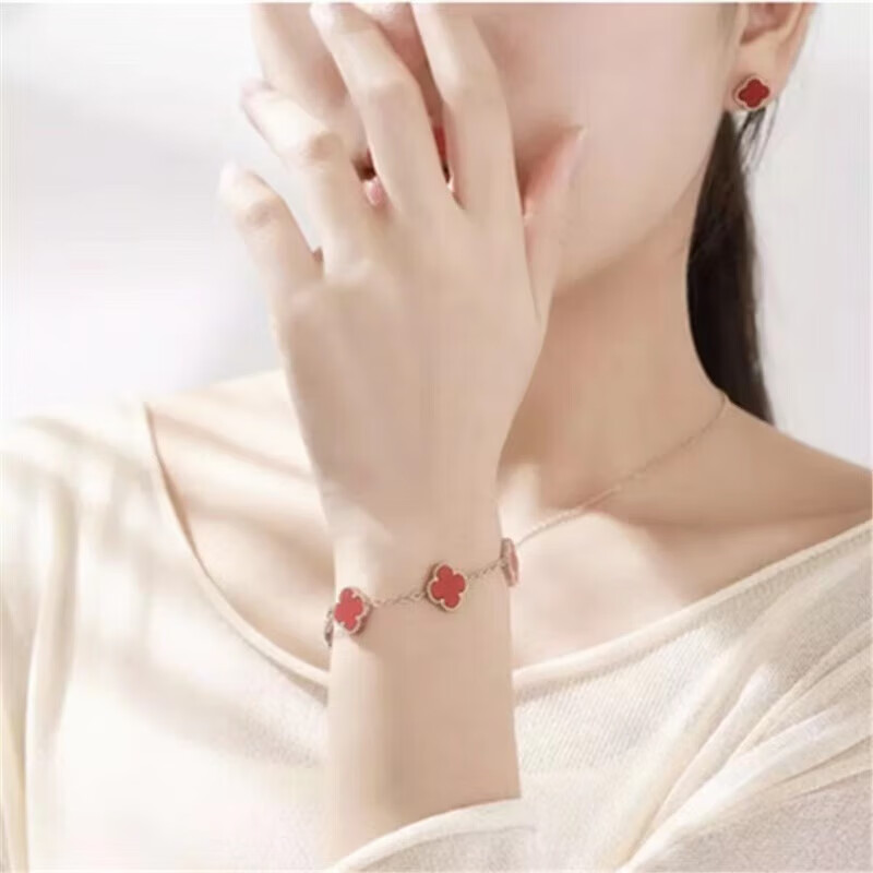 FEACHE Light Luxury Fashion Jewelry Women's Four-leaf Clover Bracelet for Girlfriend Chinese Valentine's Day Gift for Girlfriend and Wife Birthday Gift High-end Diamond Five-Flower (Default Gray)