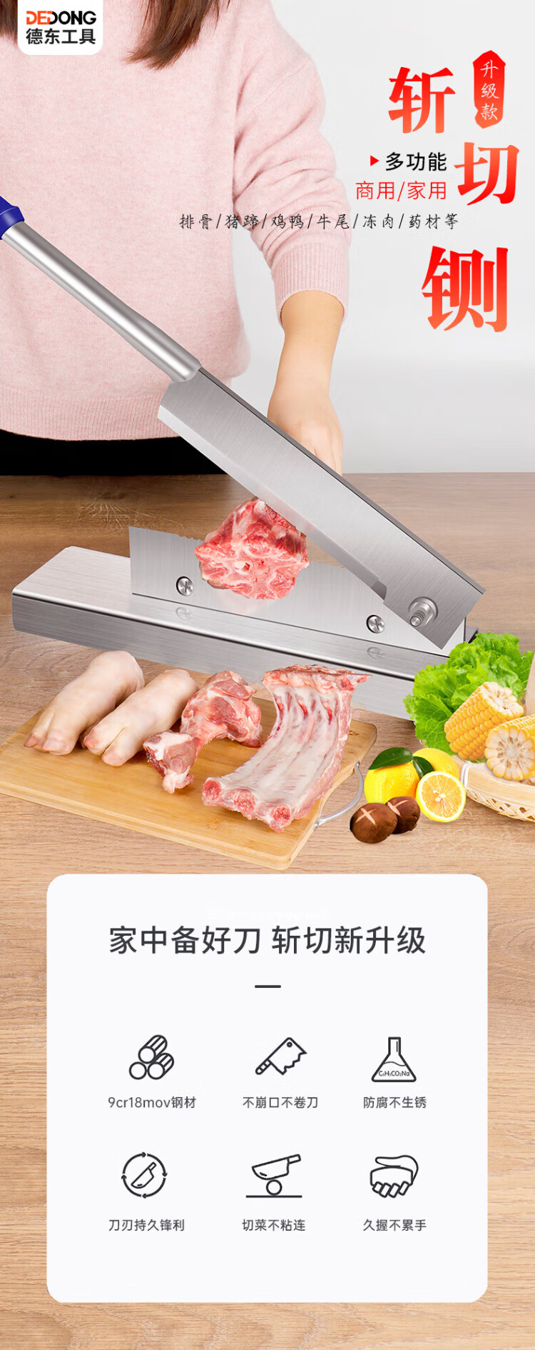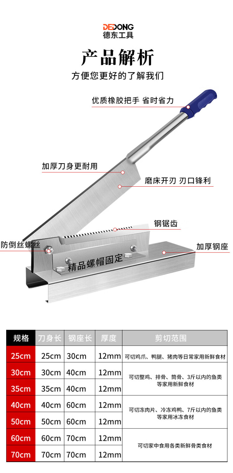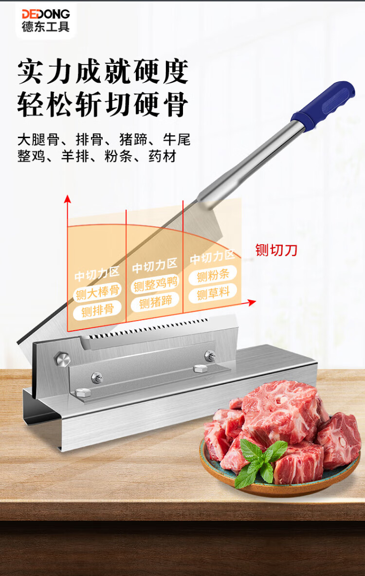 Dedong guillotine cutter bone artifact household rib knife saw bone artifact pig trotters commercial knife bone cutter knife thickened high manganese steel guillotine 25cm holder