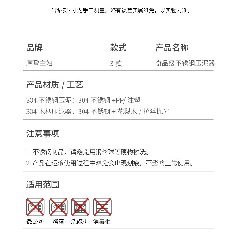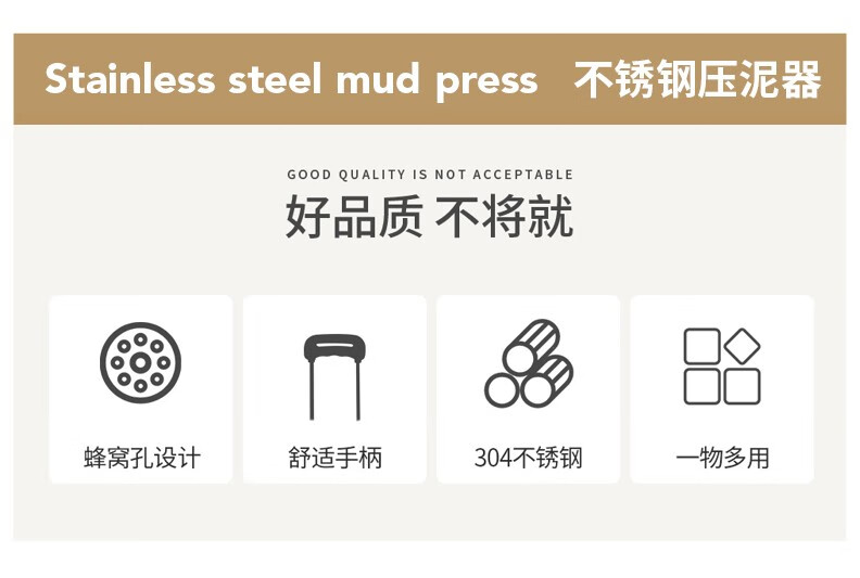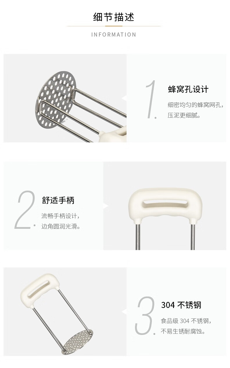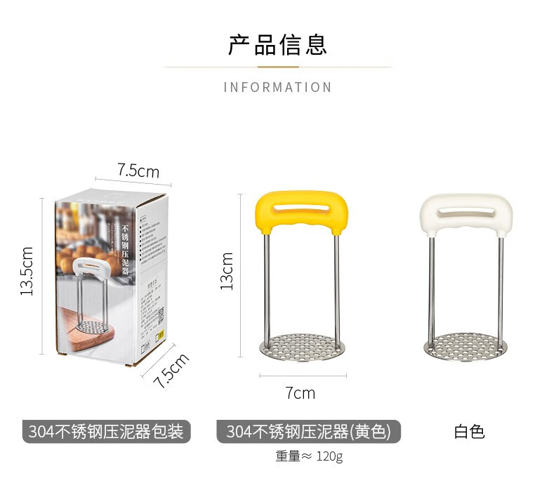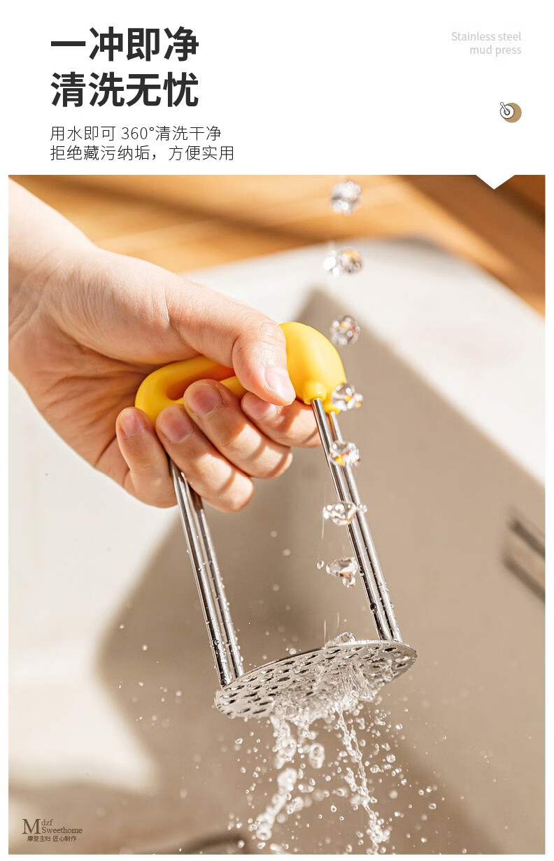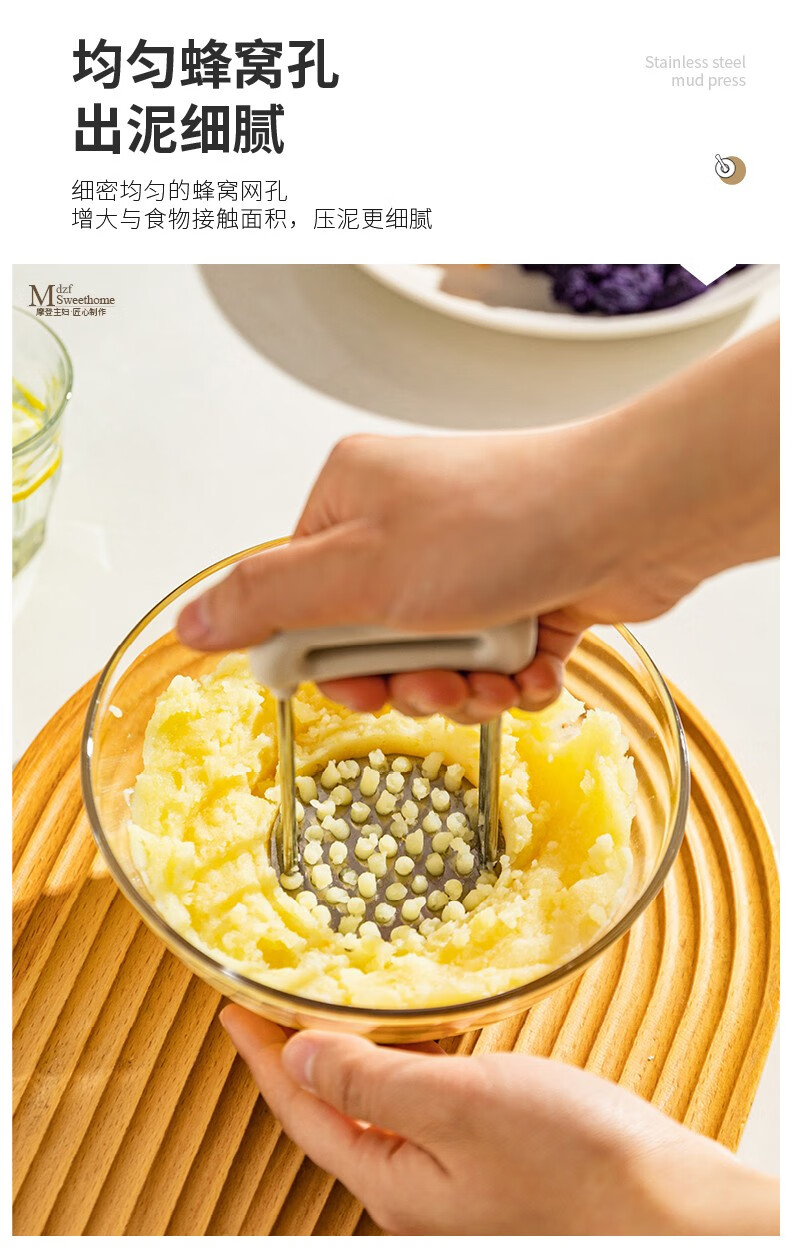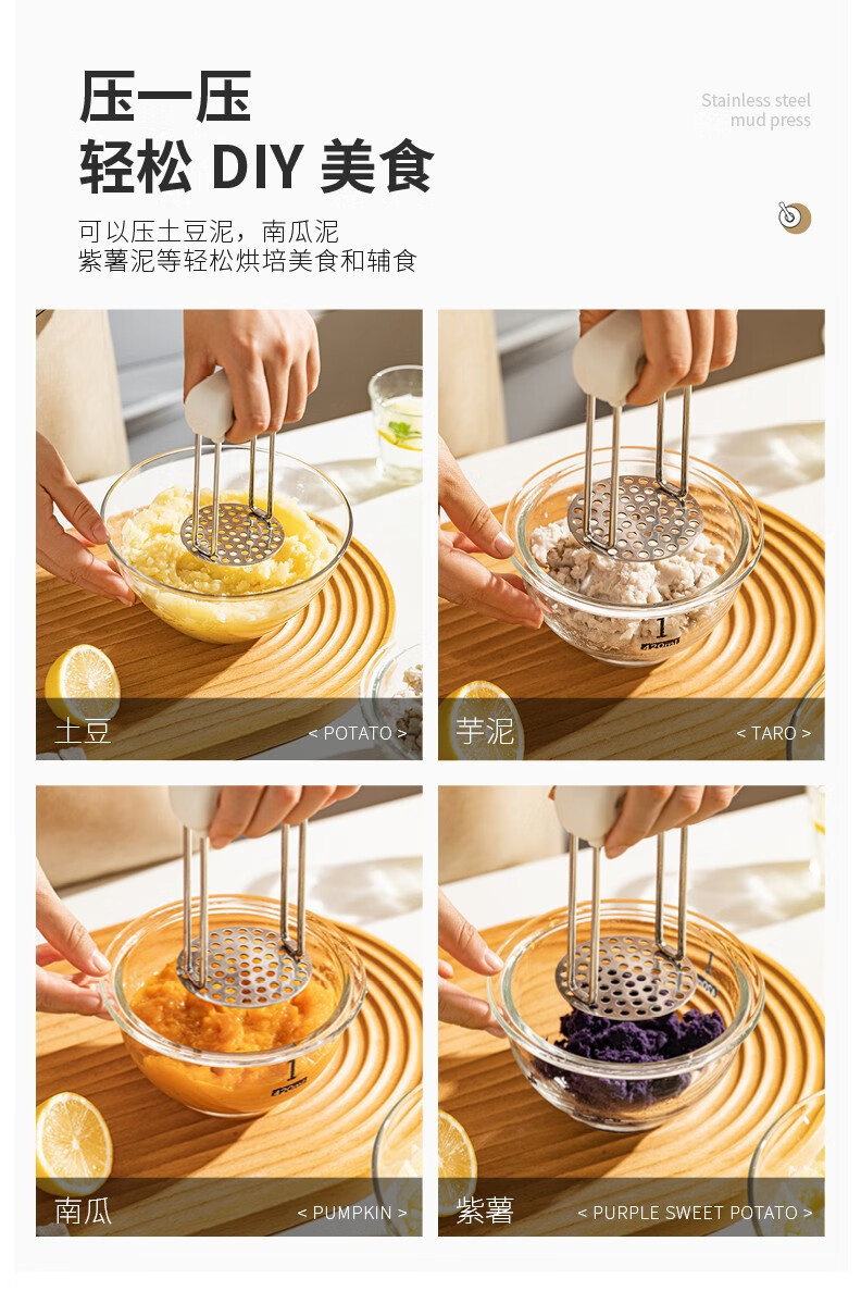 Modern housewife mashed potato masher baby food supplement masher spoon mashed potato artifact rolling masher 304 stainless steel masher-yellow