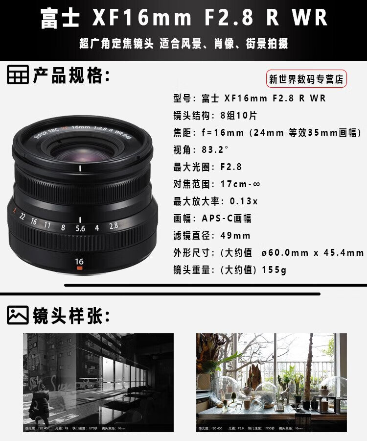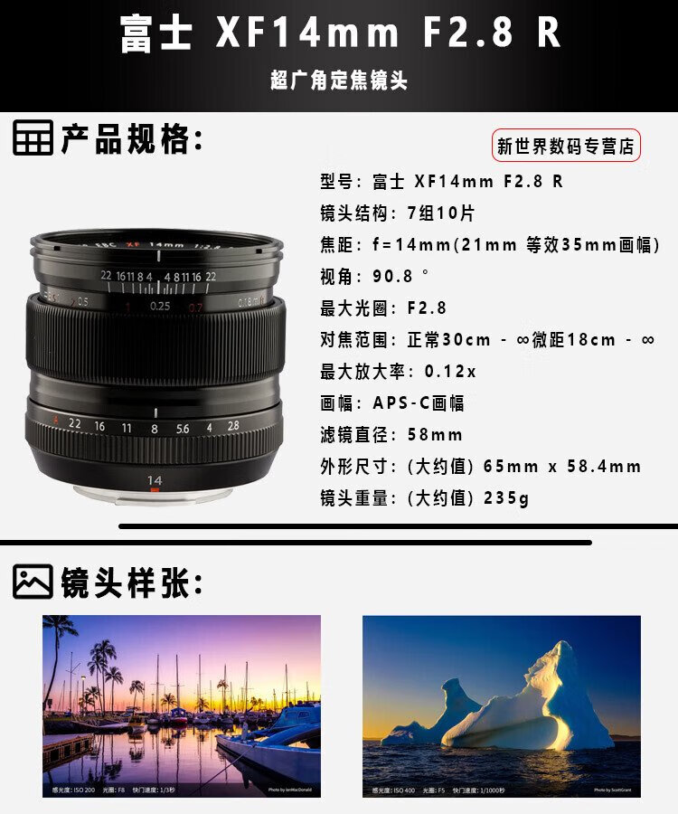 Fuji (FUJIFILM) mirrorless camera fixed focus lens XF14mm F2.8 R official standard
