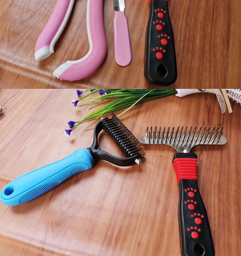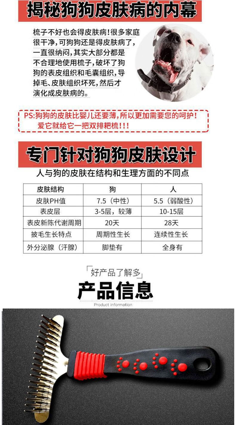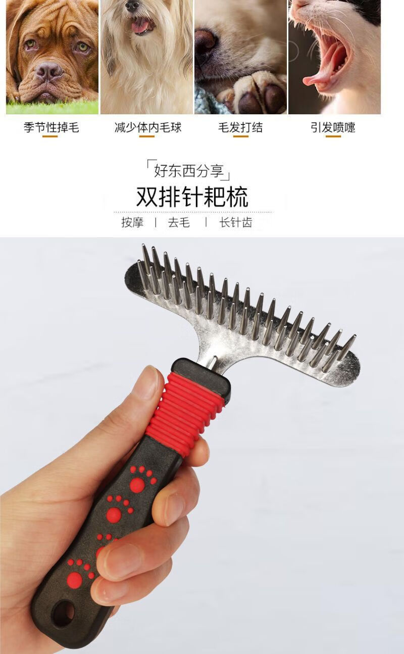 Jiajiemei Dog Comb Golden Retriever Teddy Combing Artifact Pet Dog Hair Brush Bath Brush Large Dog Hair Removal Comb Double Row Needle Comb (No Gifts)