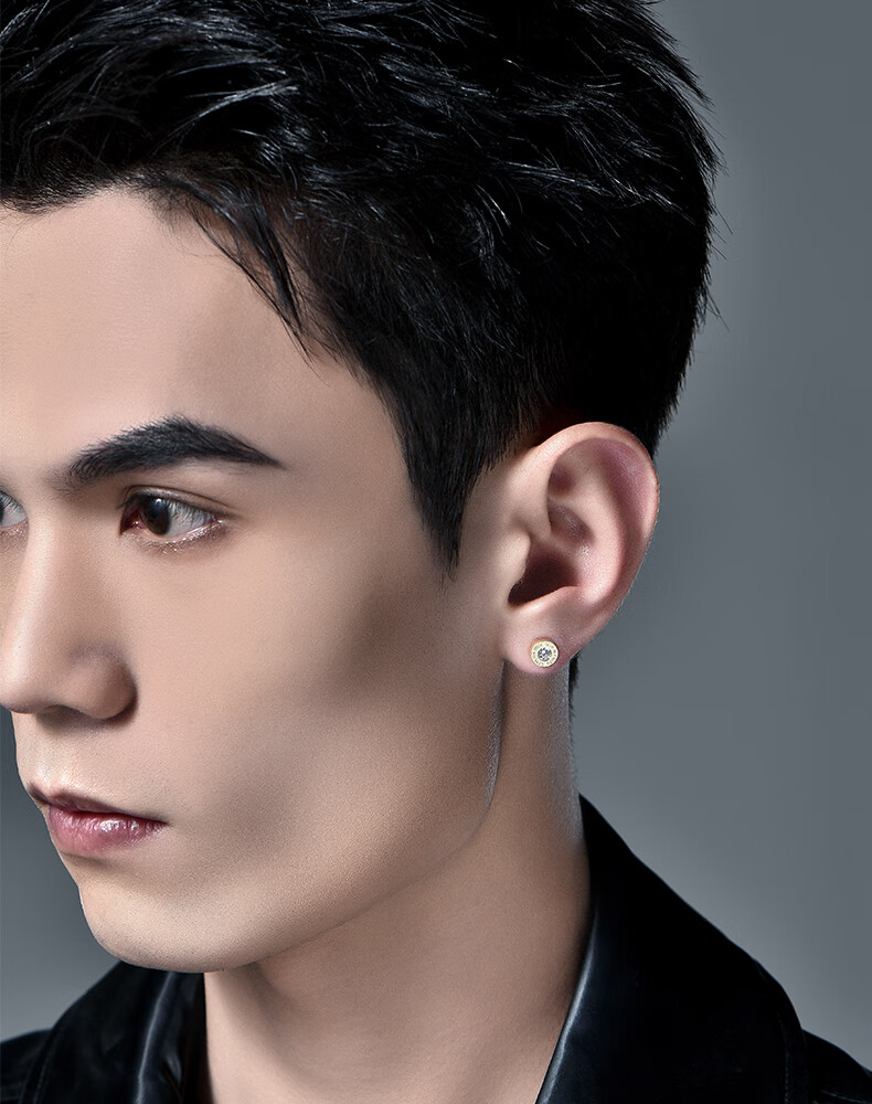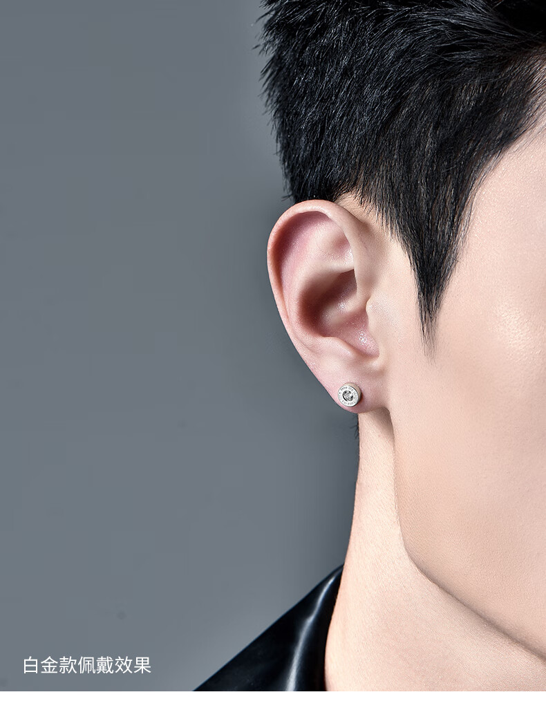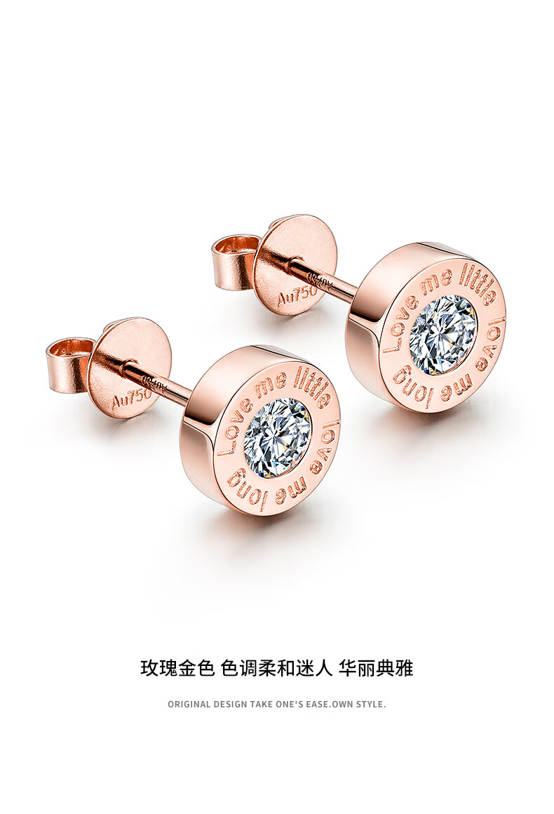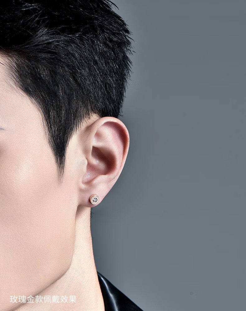 Mingyang Zhuhai 18K gold stud earrings for men single diamond letter earrings single trend high-end fashion platinum rose gold earrings single 18K rose gold stud earrings + certificate