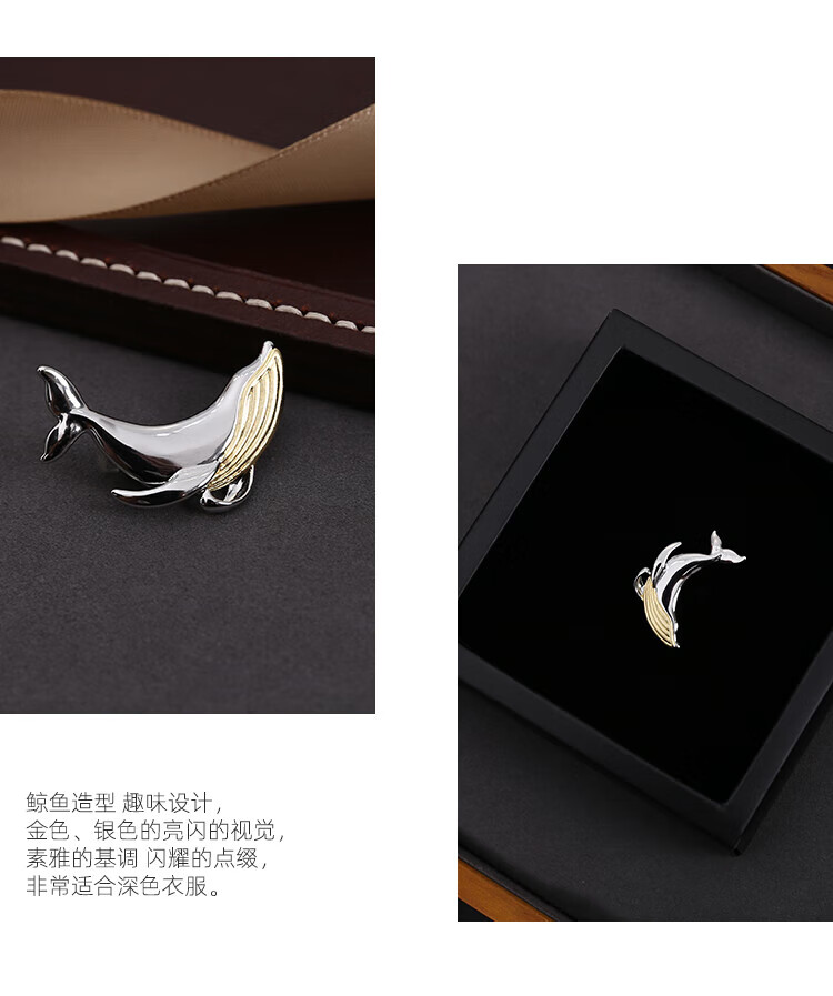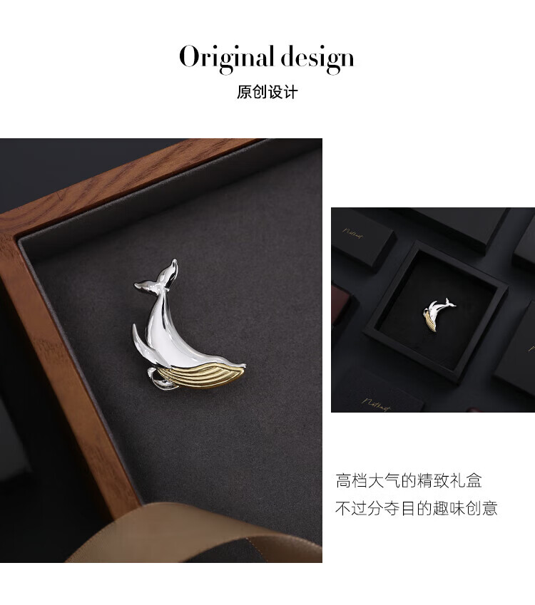 Shijun (SHIJUN) high-end men's evening suit dress brooch fashion corsage wedding groom accessories lapel pin Whale