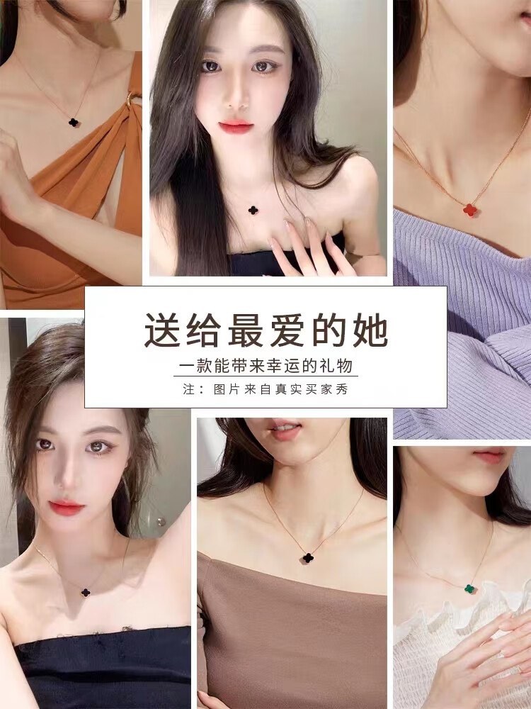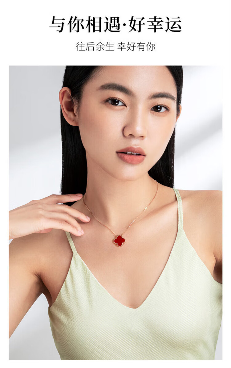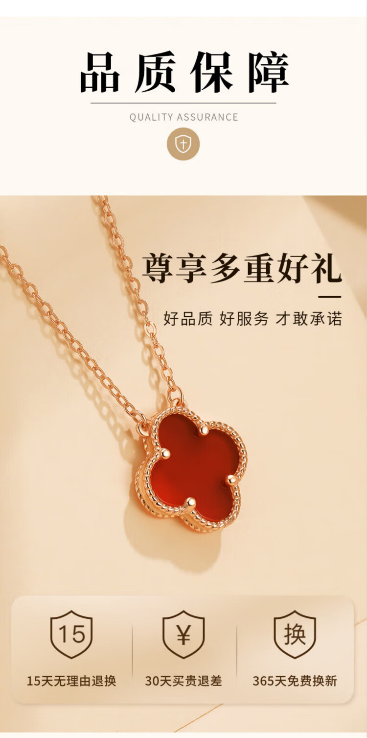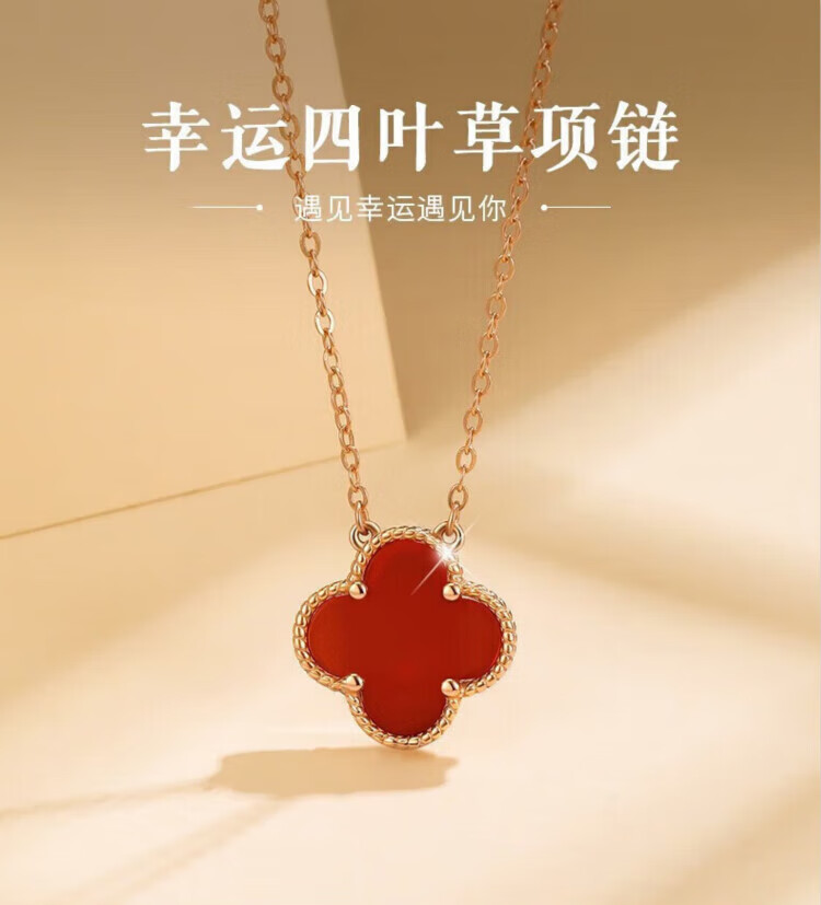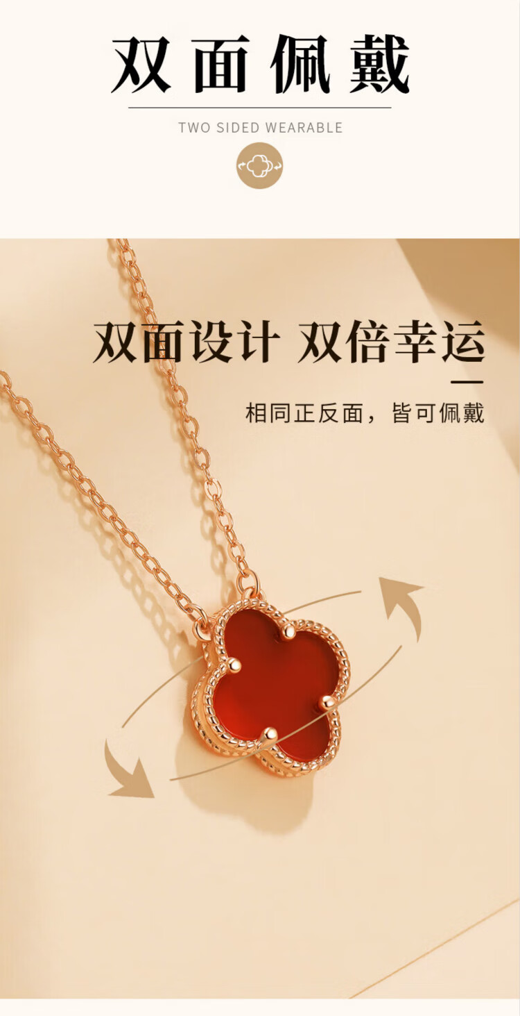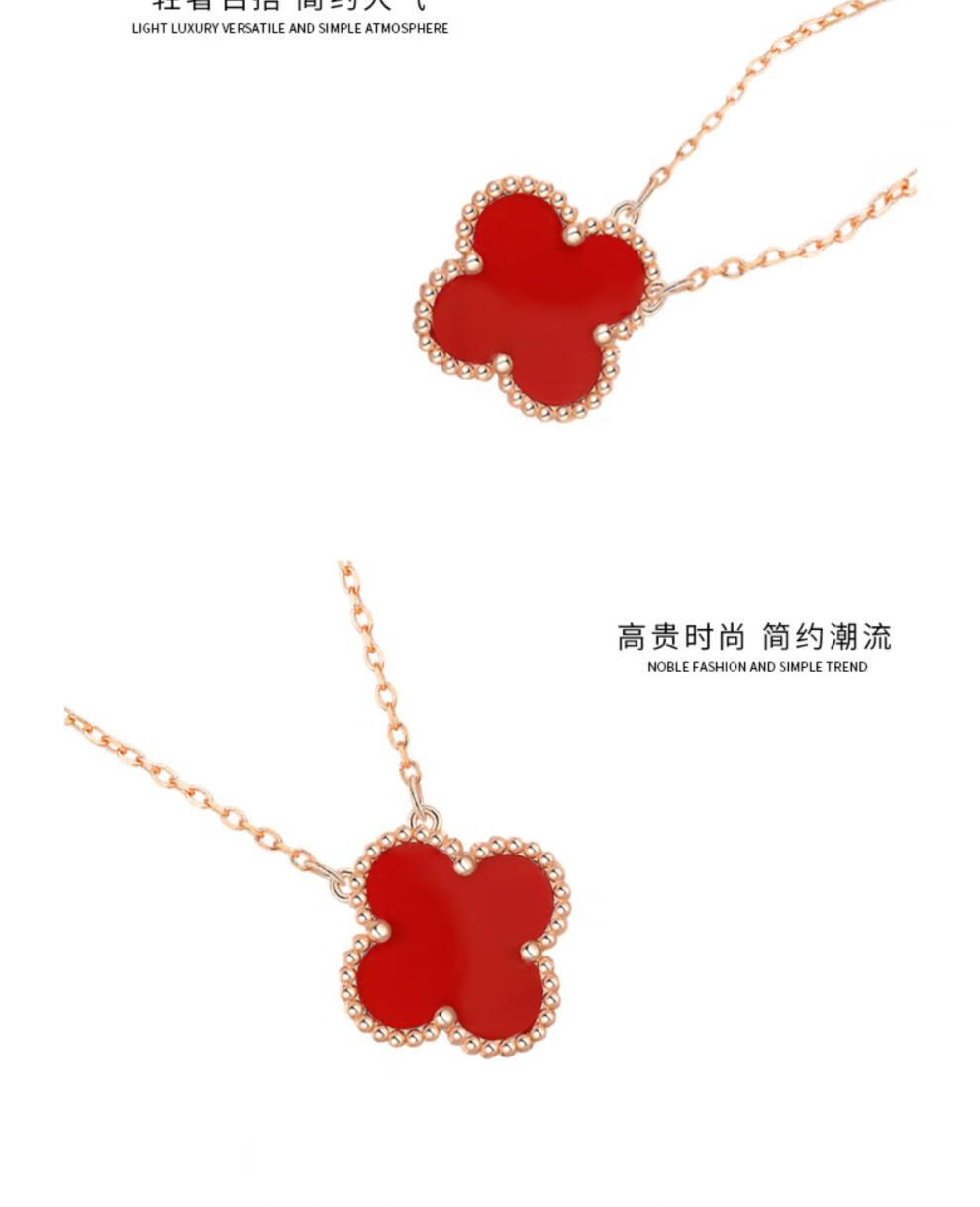 FEACHE four-leaf clover necklace for women five-flower clover red Chinese Valentine's Day birthday gift for girlfriend and wife on her birthday rose gold four-leaf clover red agate