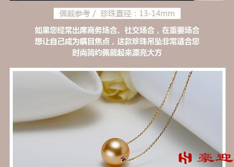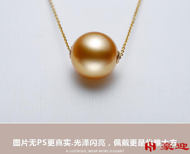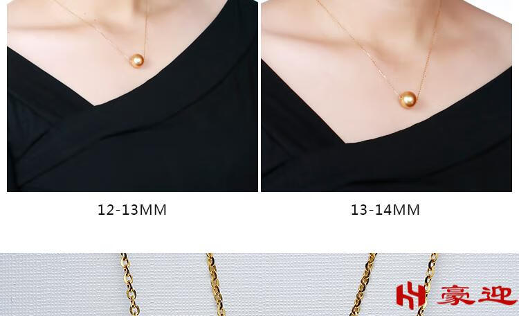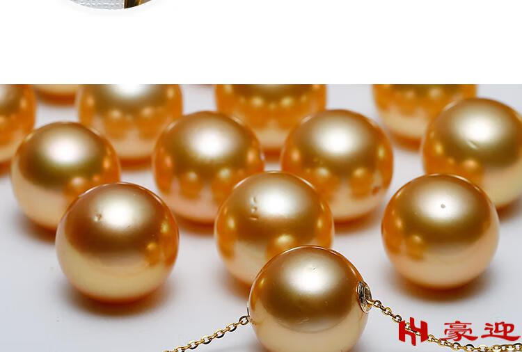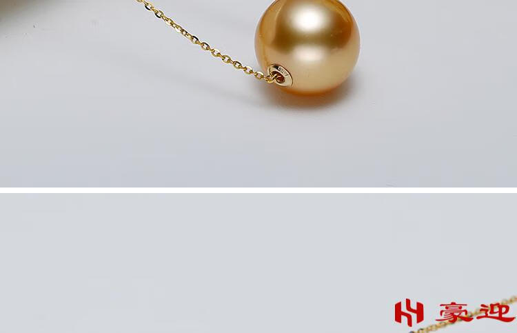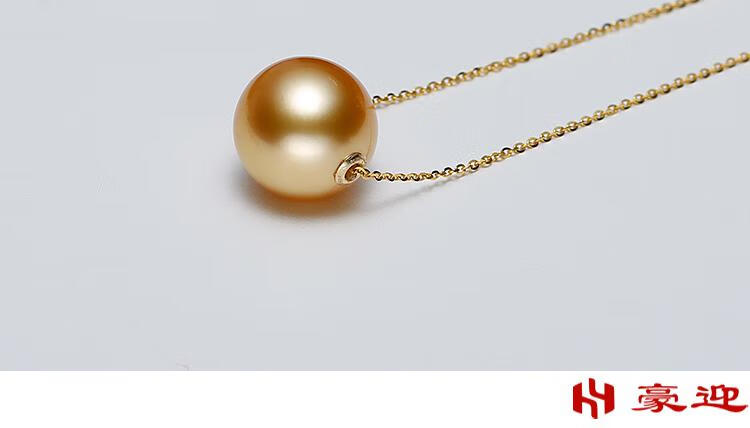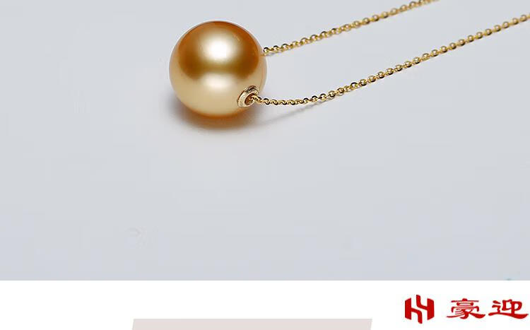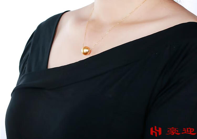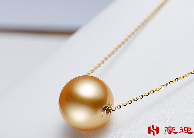 Haoying Single Rich Gold South Sea Gold Bead Pendant Full Round 18 Gold Transfer Passepartout Pearl Pendant Women Summer 18K South Sea Gold Bead Passepartout Pendant 12-13mm x 40cm