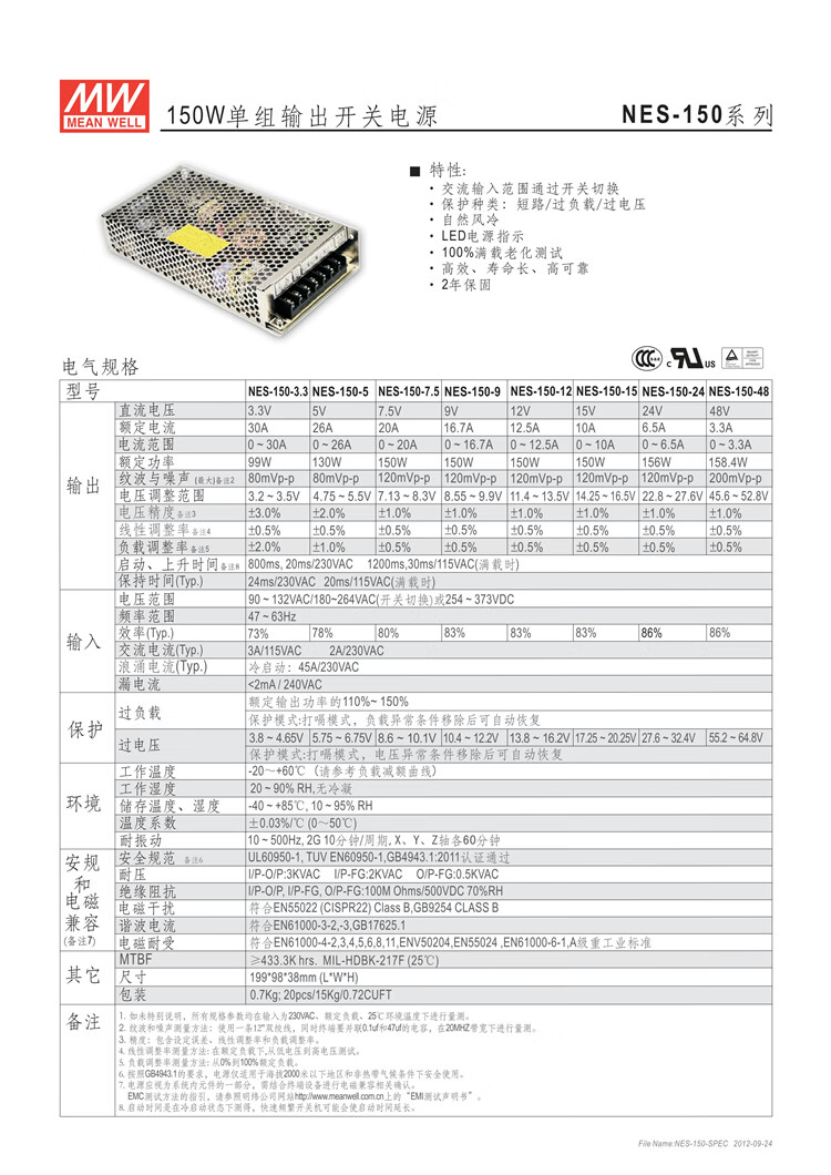 Taiwan MEAN WELL switching power supply NES-150-24 150W output DC24V/6.5A