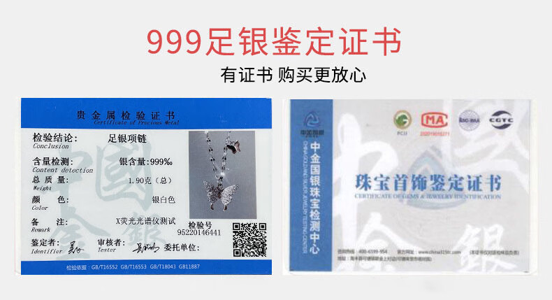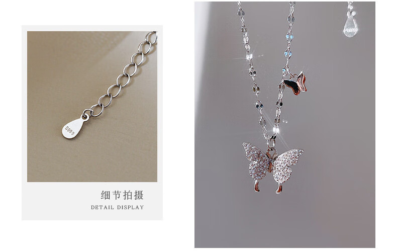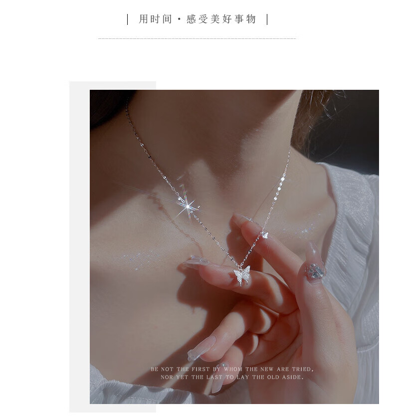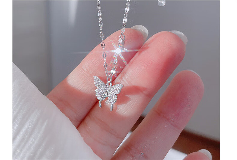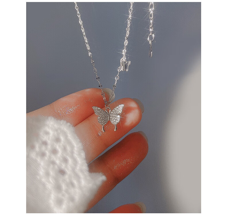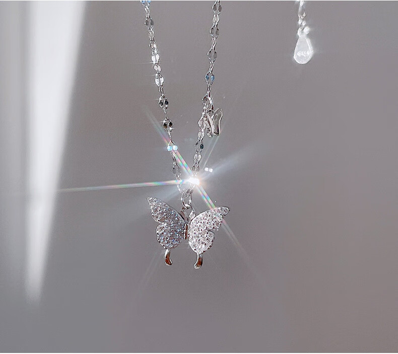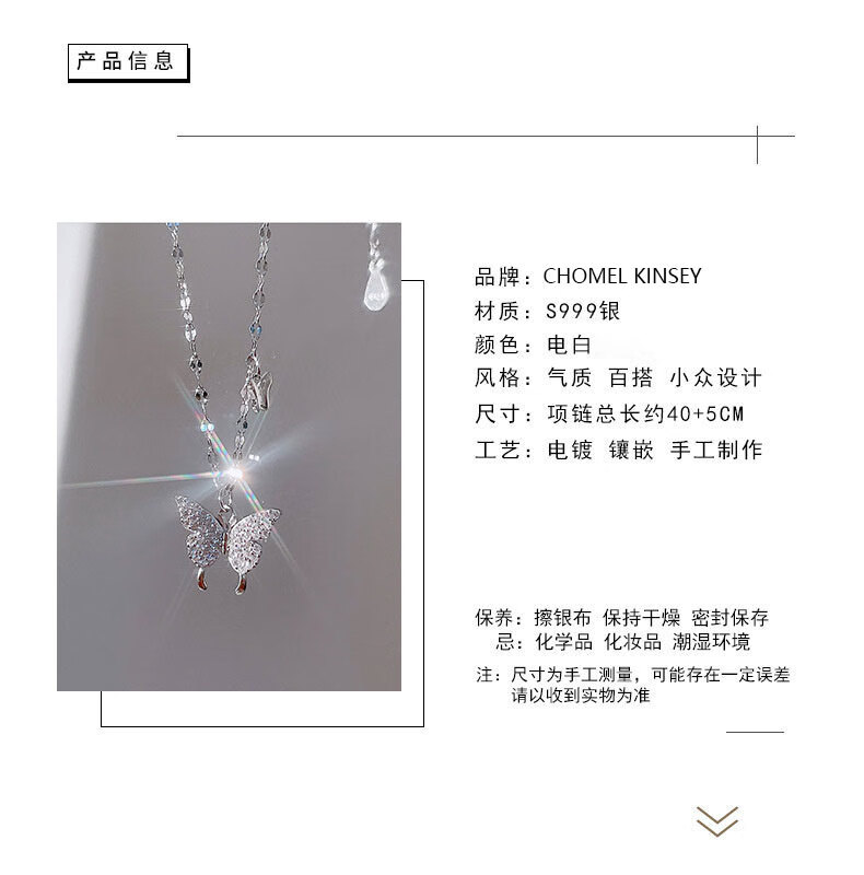 CHOMEL KINSEYs999 solid silver butterfly necklace for women, non-fading, light luxury, high-end clavicle chain as a Valentine's Day birthday gift for girlfriend, electric silver + nano-anti-oxidation protection
