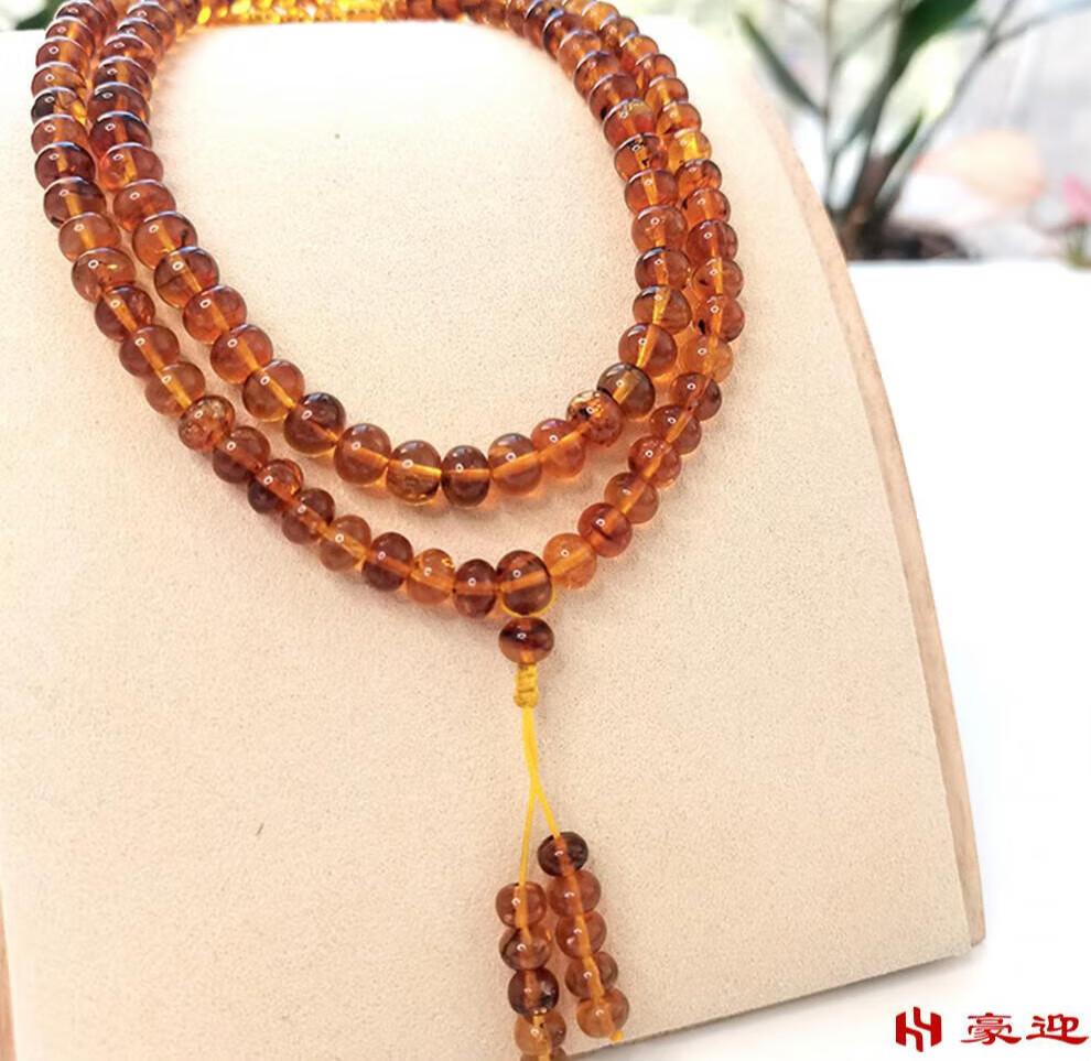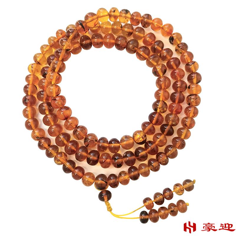 Haoying Fushun amber west open-air old material bracelet first-hand source handmade beads 108 plant amber 8MM