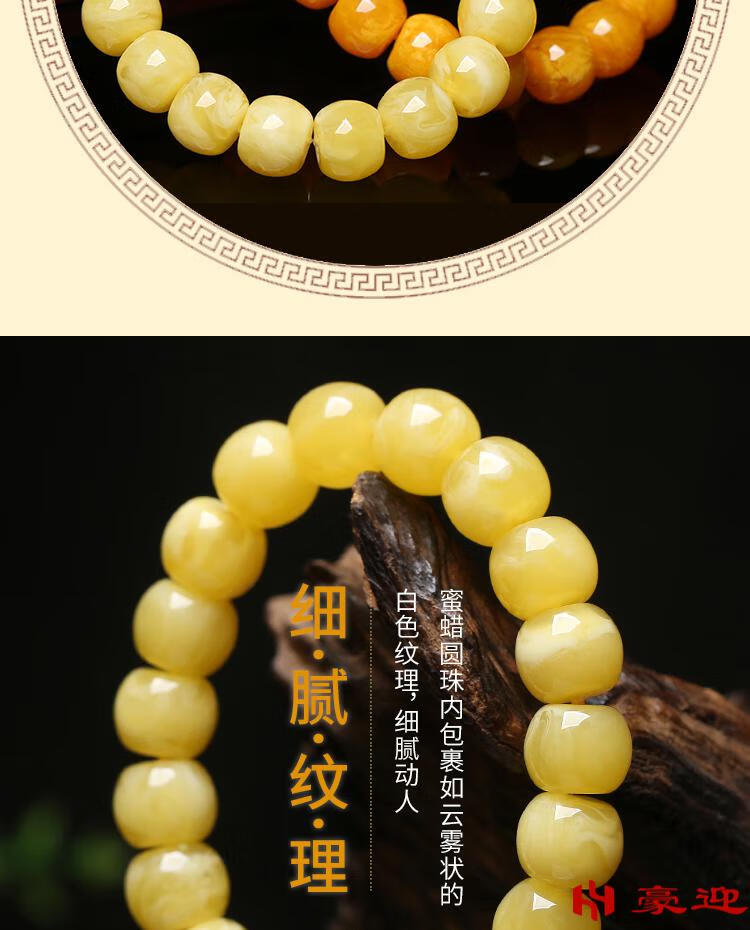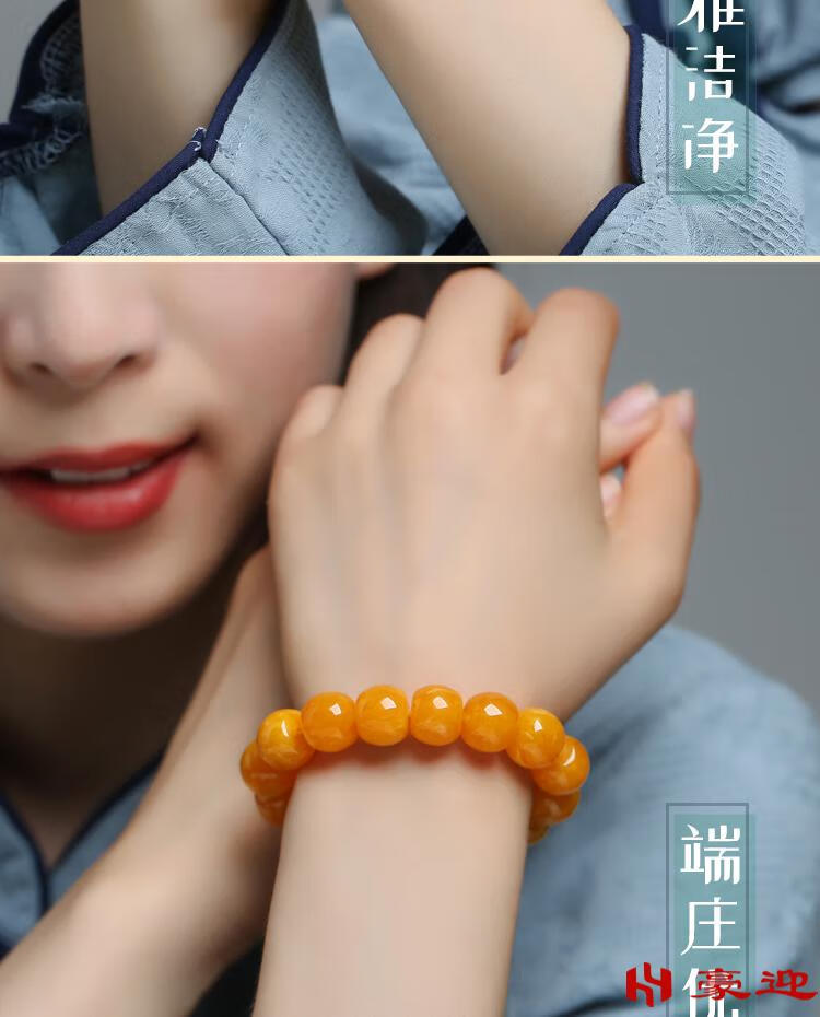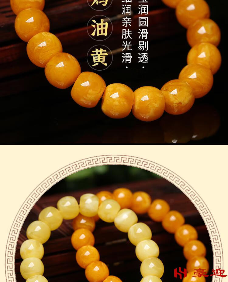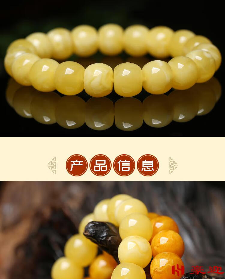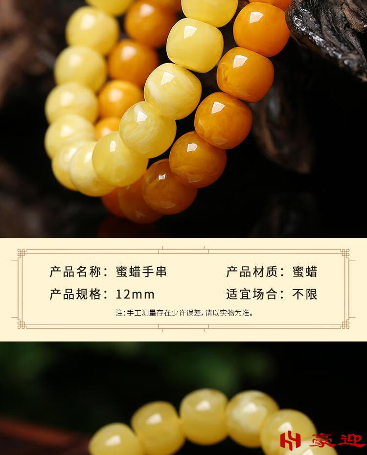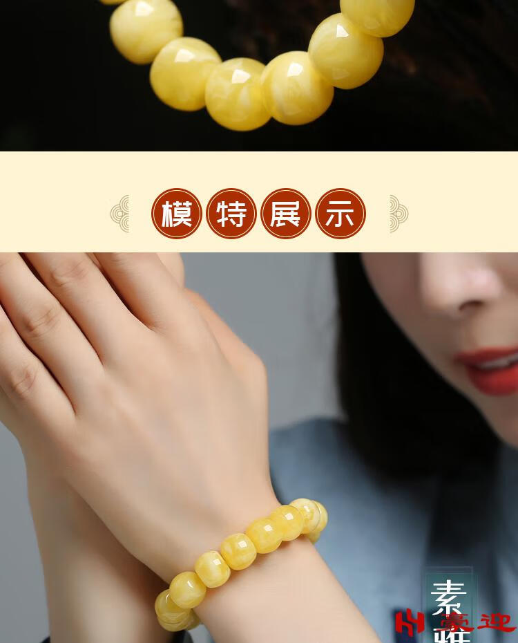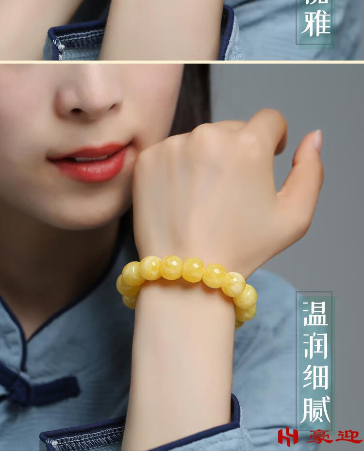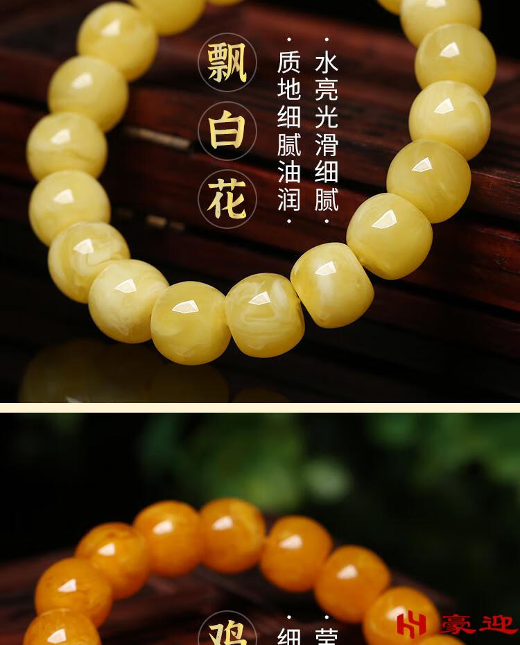 Haoying natural Russian material white flower honey wax old-style bead bracelet chicken fat yellow amber raw stone bucket bead single circle bracelet certificate for women white flower honey single circle bracelet 12mm