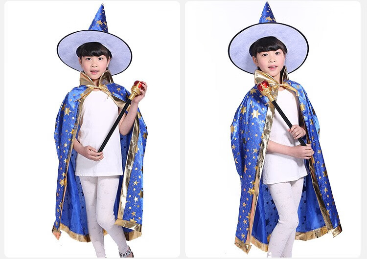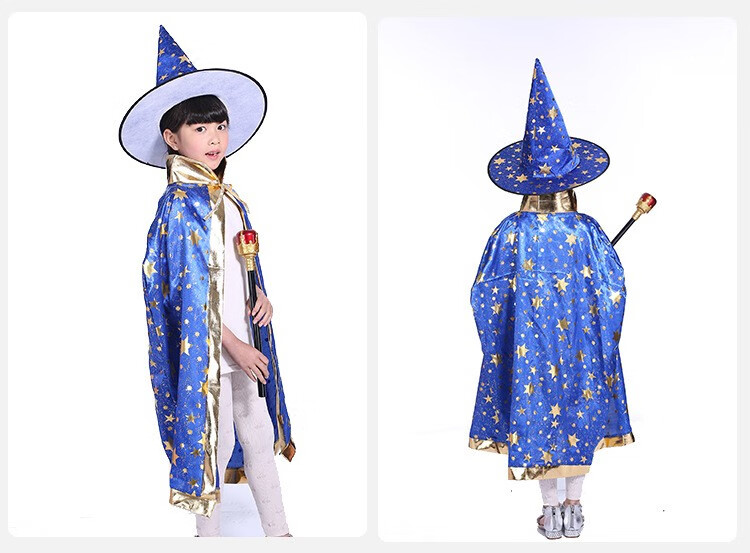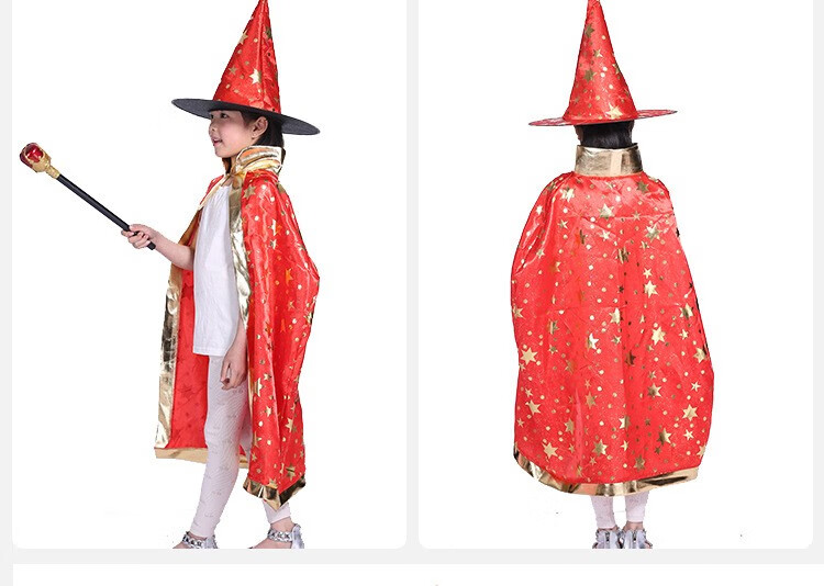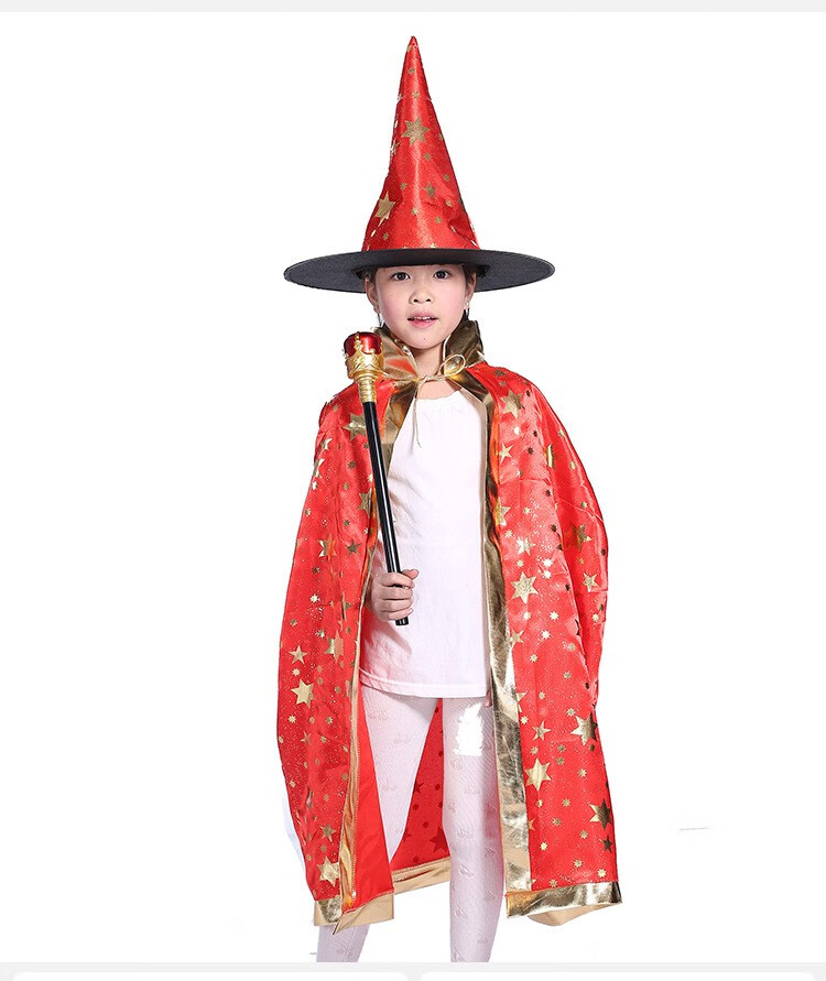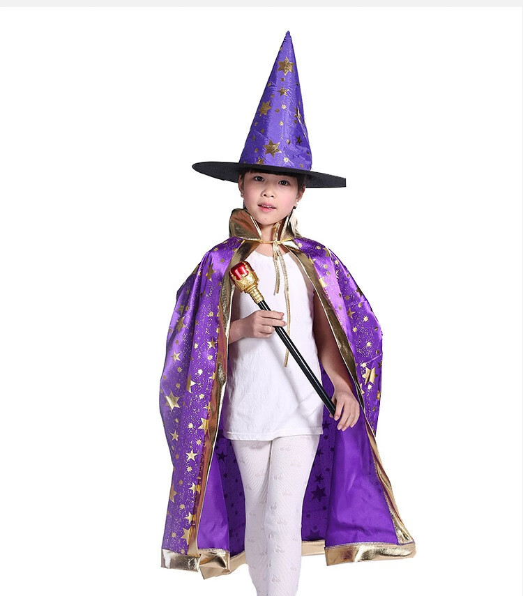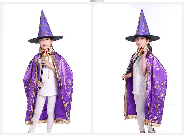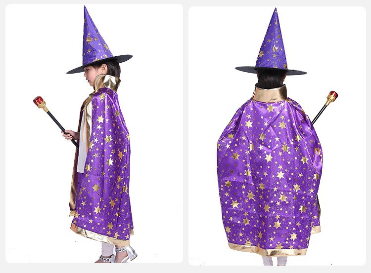 Qinsuluo Halloween costume Children's Day performance costume magician cloak witch five-star cloak cloak purple five-star cloak + hat one size