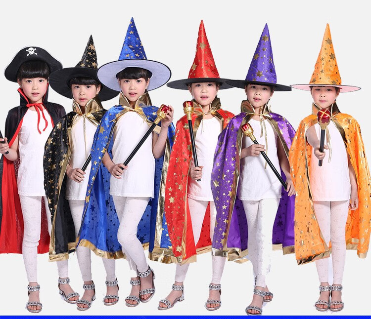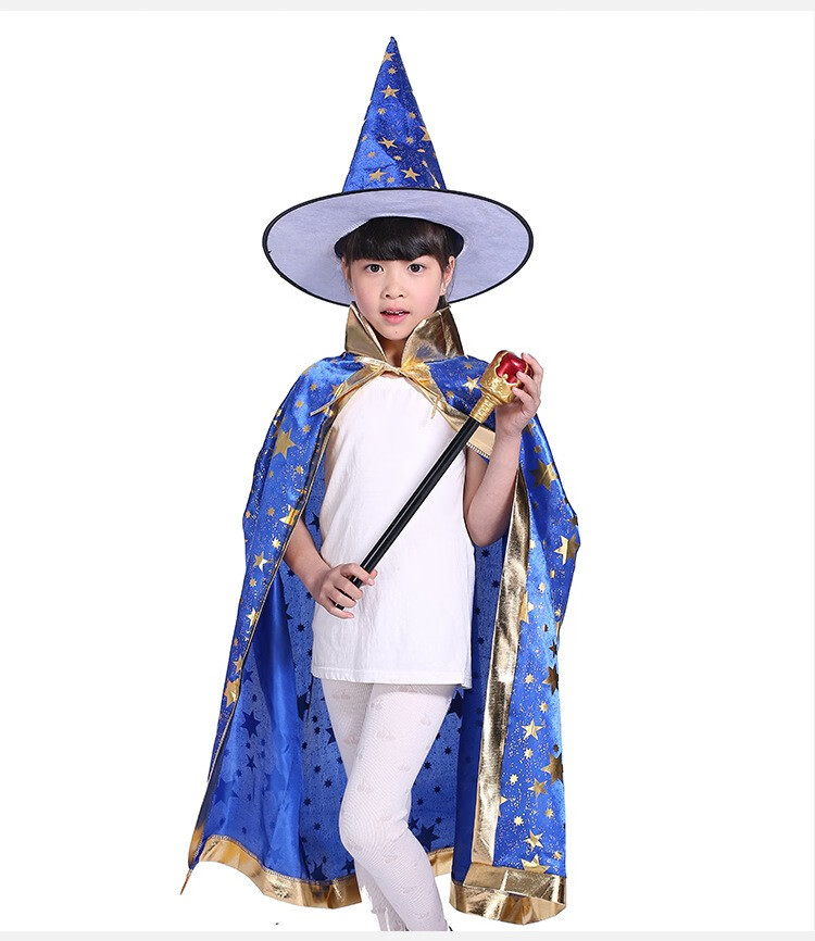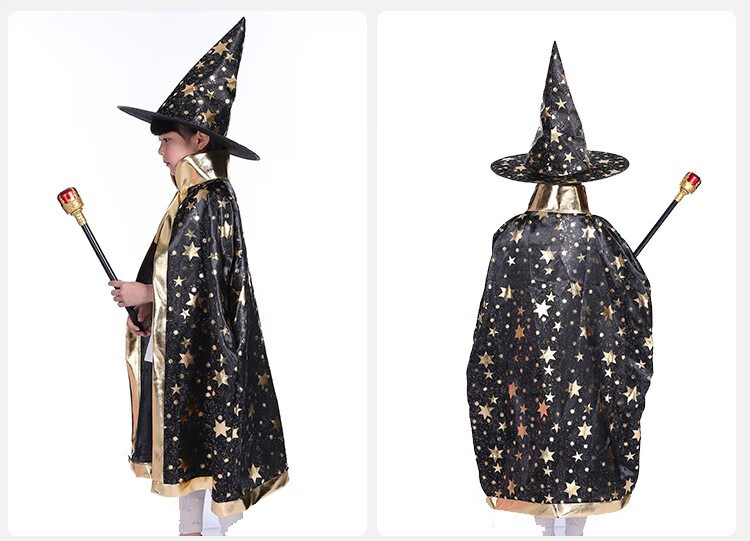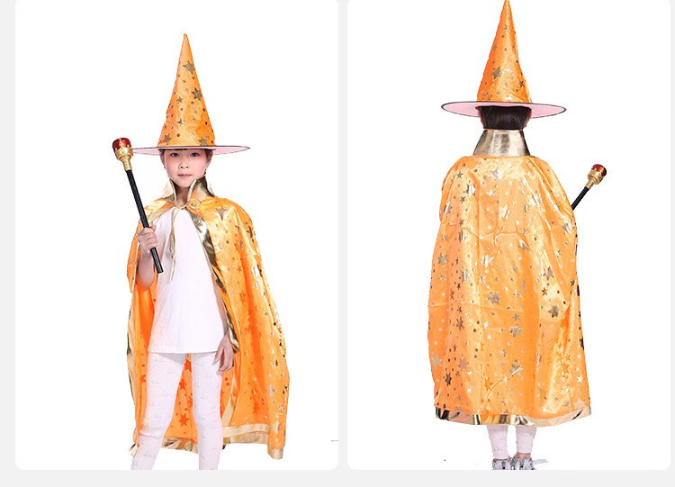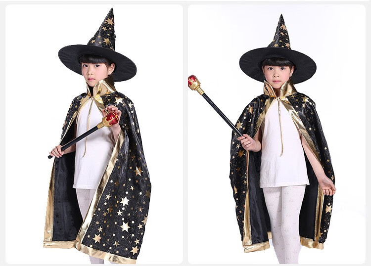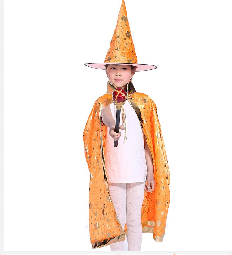 Qinsuluo Halloween costume Children's Day performance costume magician cloak witch five-star cloak cloak purple five-star cloak + hat one size