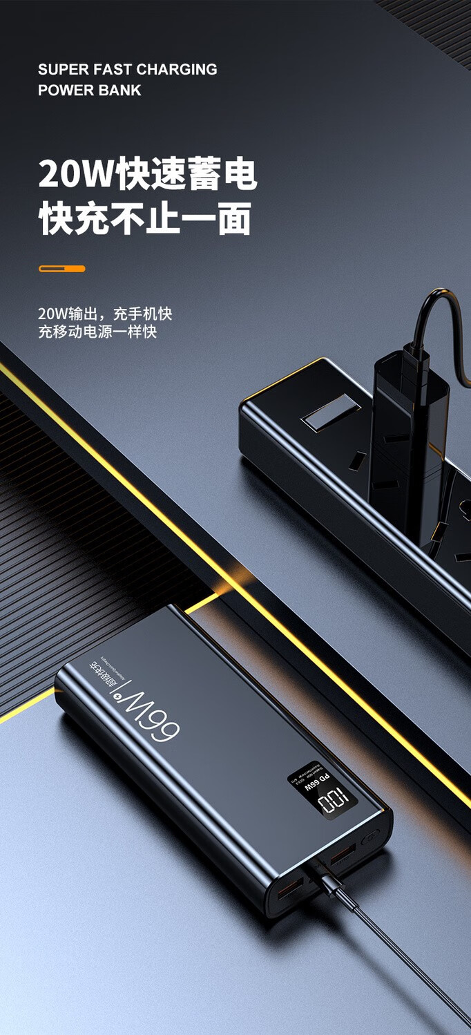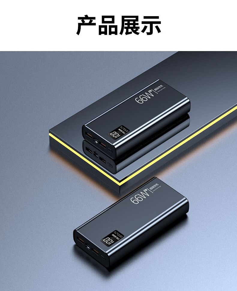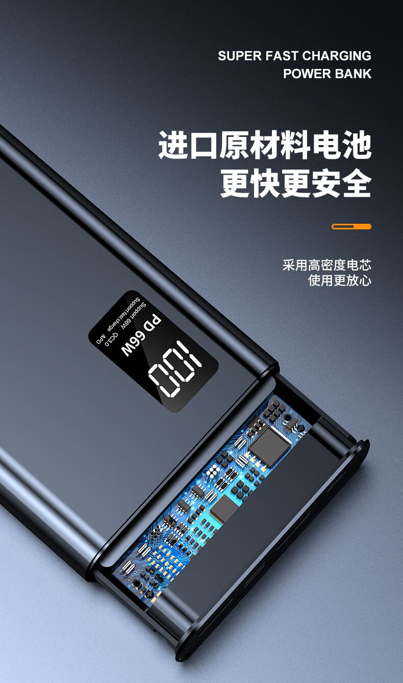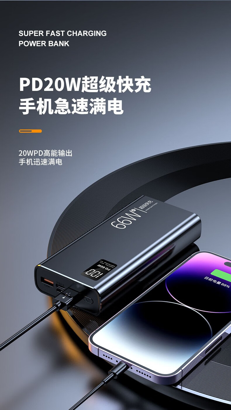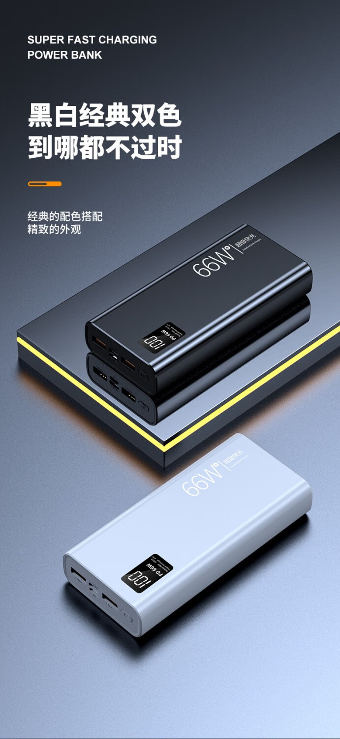 Dianwoda 3C certified power bank 50000 mAh super fast charging super large capacity mobile power supply suitable for Huawei Xiaomi Apple Android and other mobile phones Classic Black丨Super fast charging丨1200% speed increase 20000 mAh