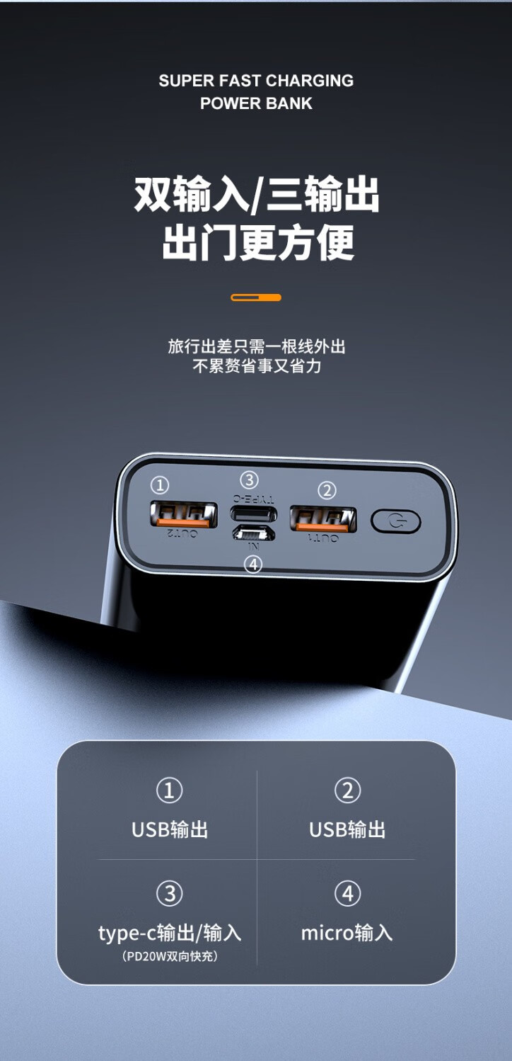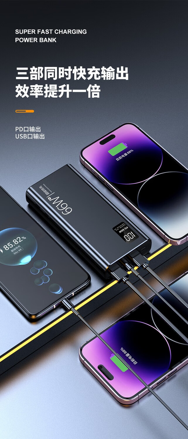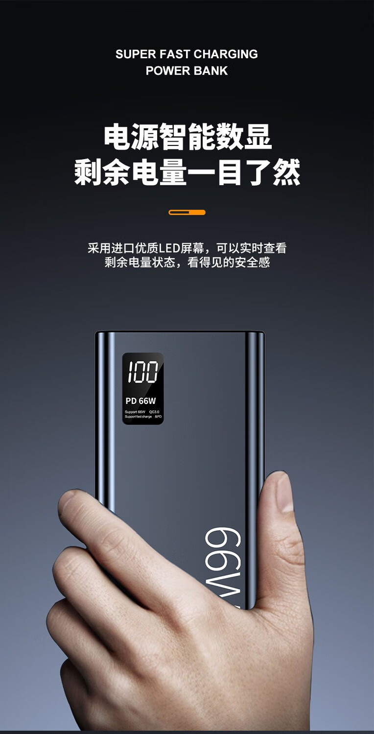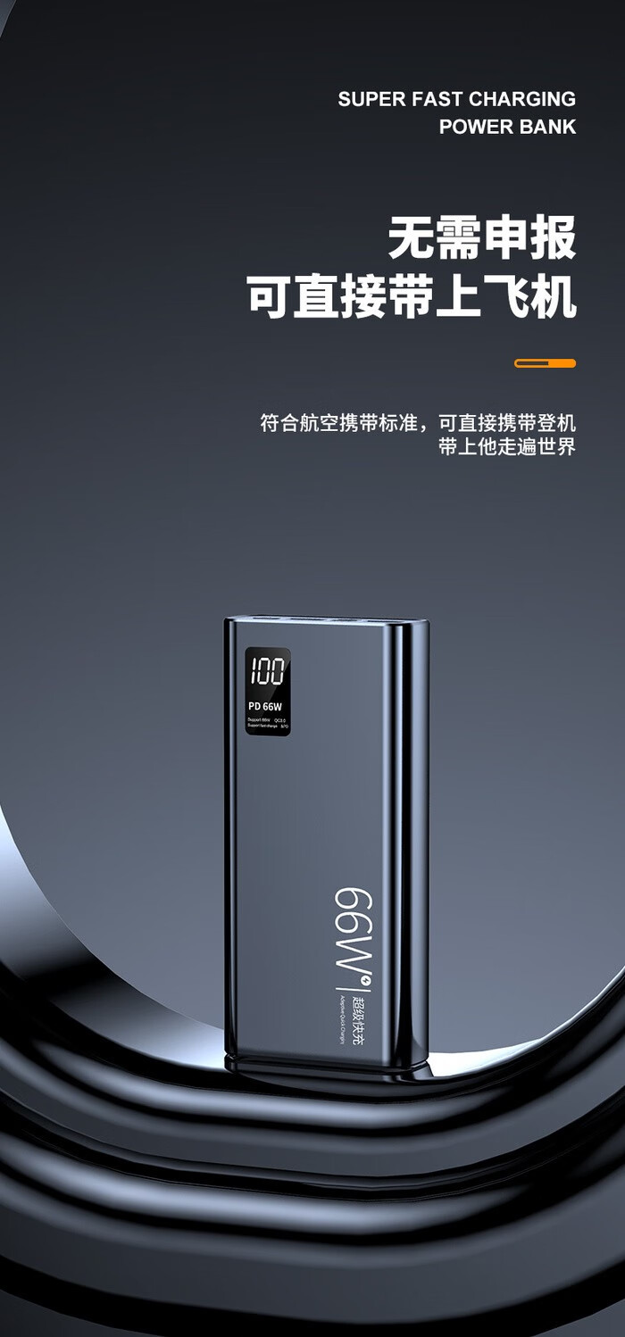Dianwoda 3C certified power bank 50000 mAh super fast charging super large capacity mobile power supply suitable for Huawei Xiaomi Apple Android and other mobile phones Classic Black丨Super fast charging丨1200% speed increase 20000 mAh