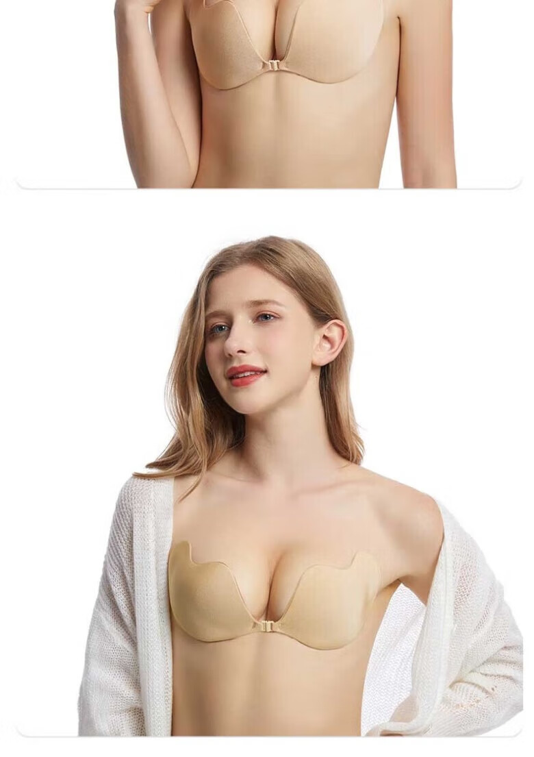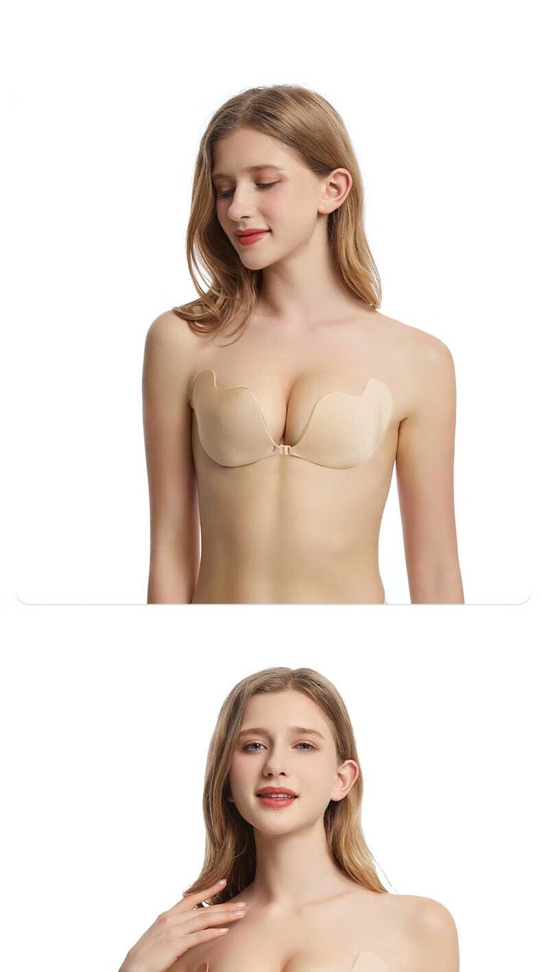 Bo Na Ling bra bra, women's underwear push-up bra, non-slip push-up invisible silicone bra patch, wedding dress, seamless evening dress skin color, small mango breathable skin color B (70C-80B)