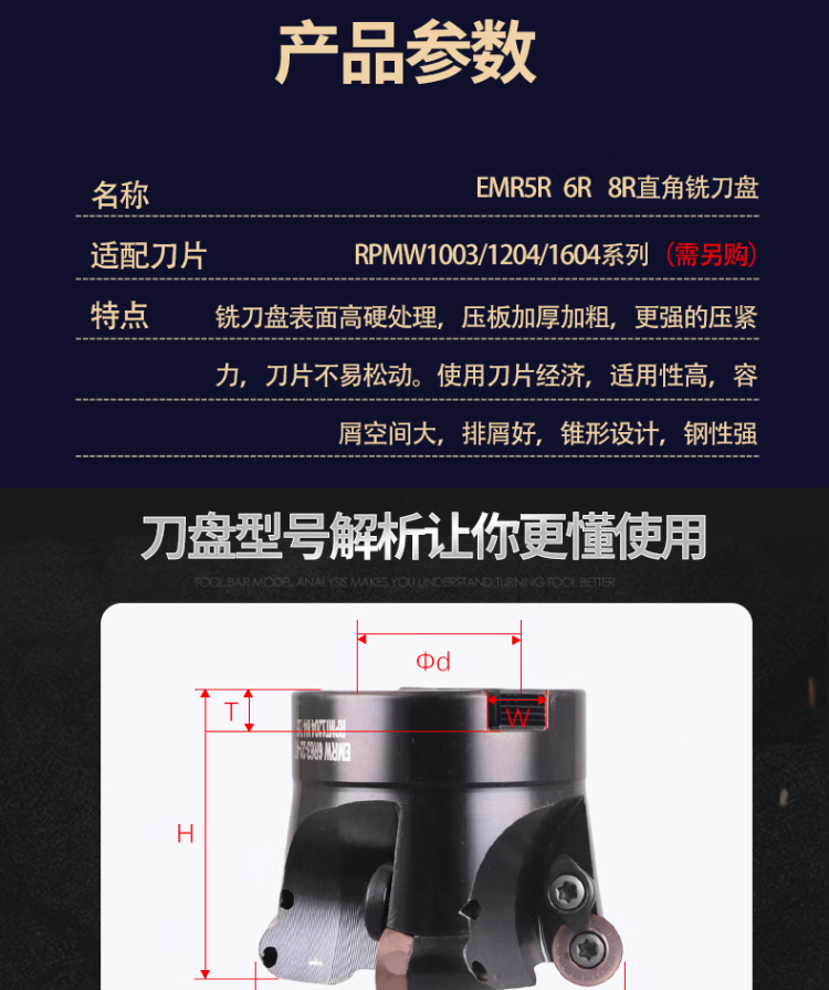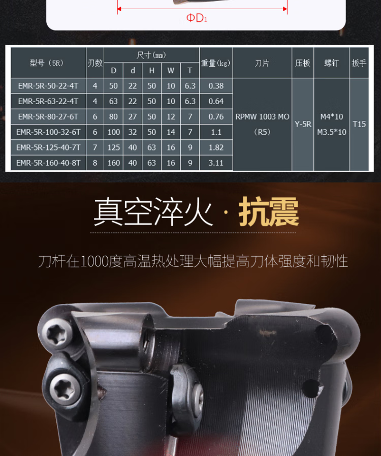 EMR cutterhead CNC CNC roughening R5/R6 50/63/80/100 face milling cutterhead EMRW round nose cutterhead EMRW 63R6-22-4T