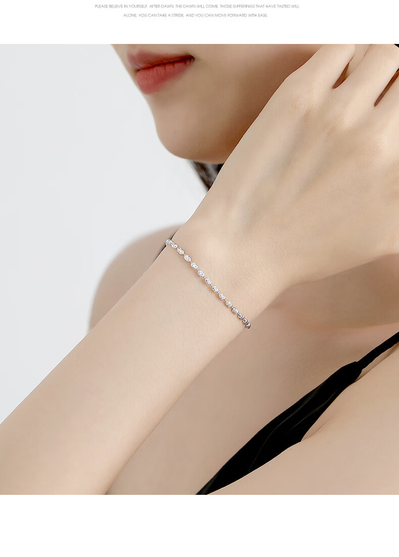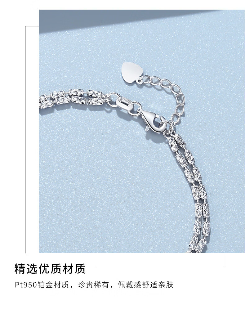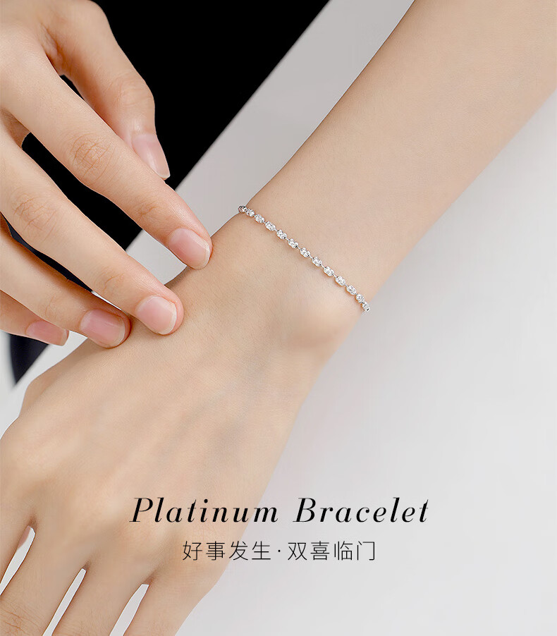 Misu platinum bracelet for women, fashionable pt950 platinum double-layer diamond bracelet, sparkling adjustable hand ornaments, Christmas gift, single layer, about 17+2cm long, weighing 4.0-4.2 grams