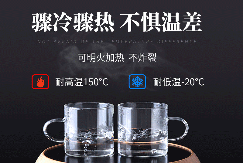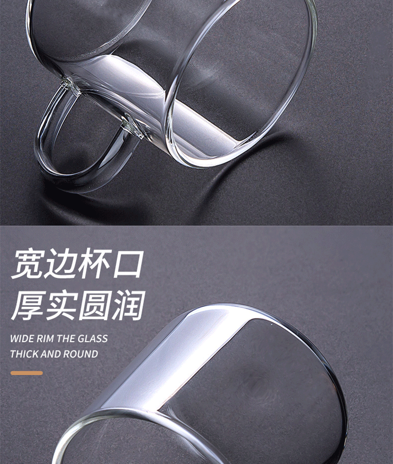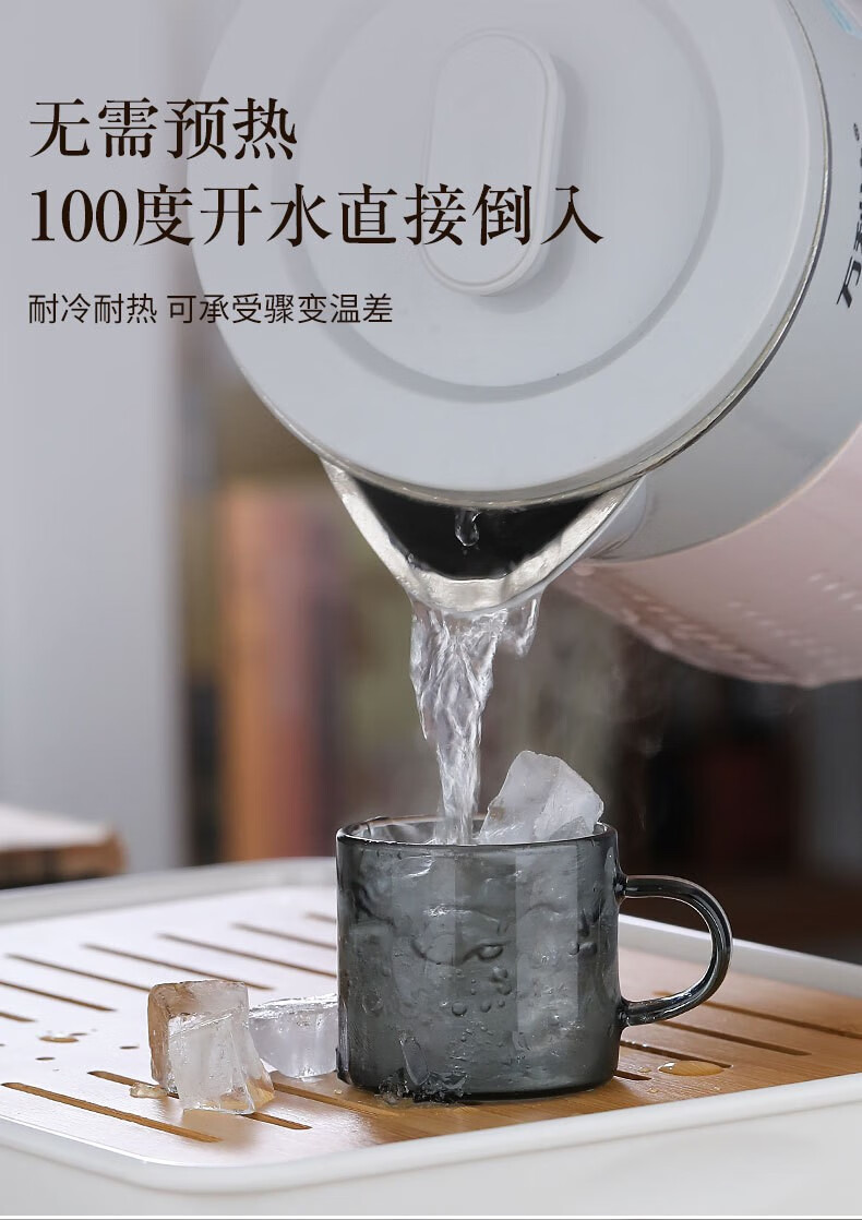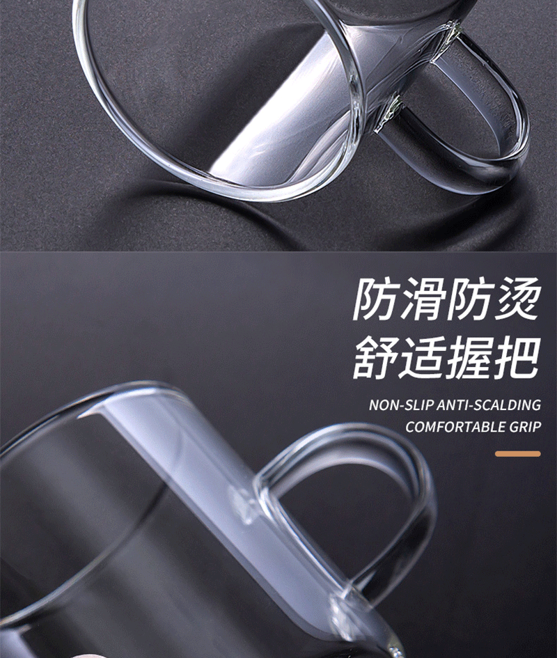 Kazate Ting glass small tea cup with handle, thickened heat-resistant tea cup, tea cup, tea accessories set, fully transparent 100ml, 6 pieces, including cup holder
