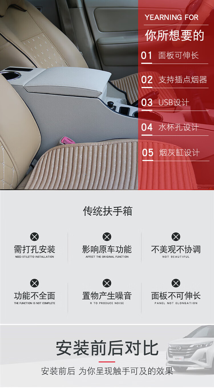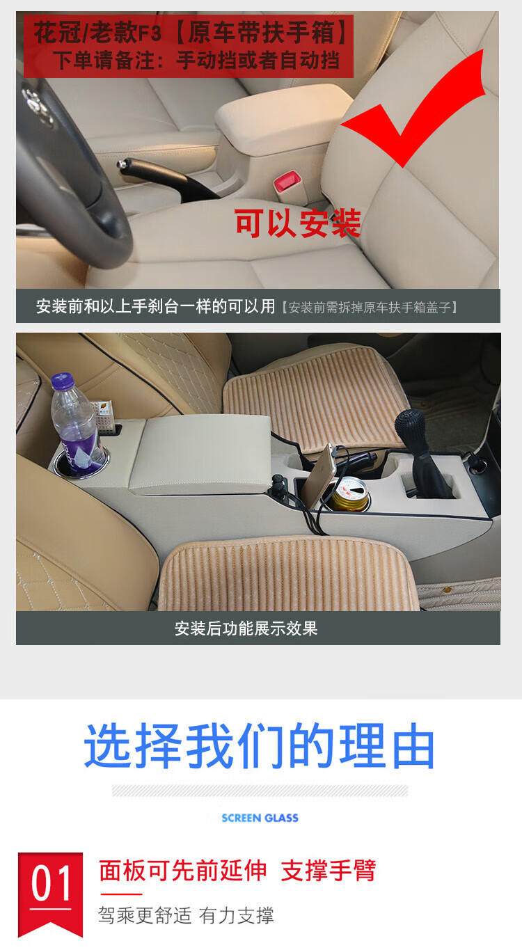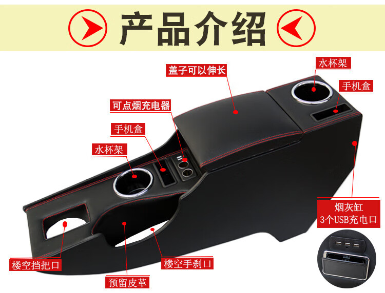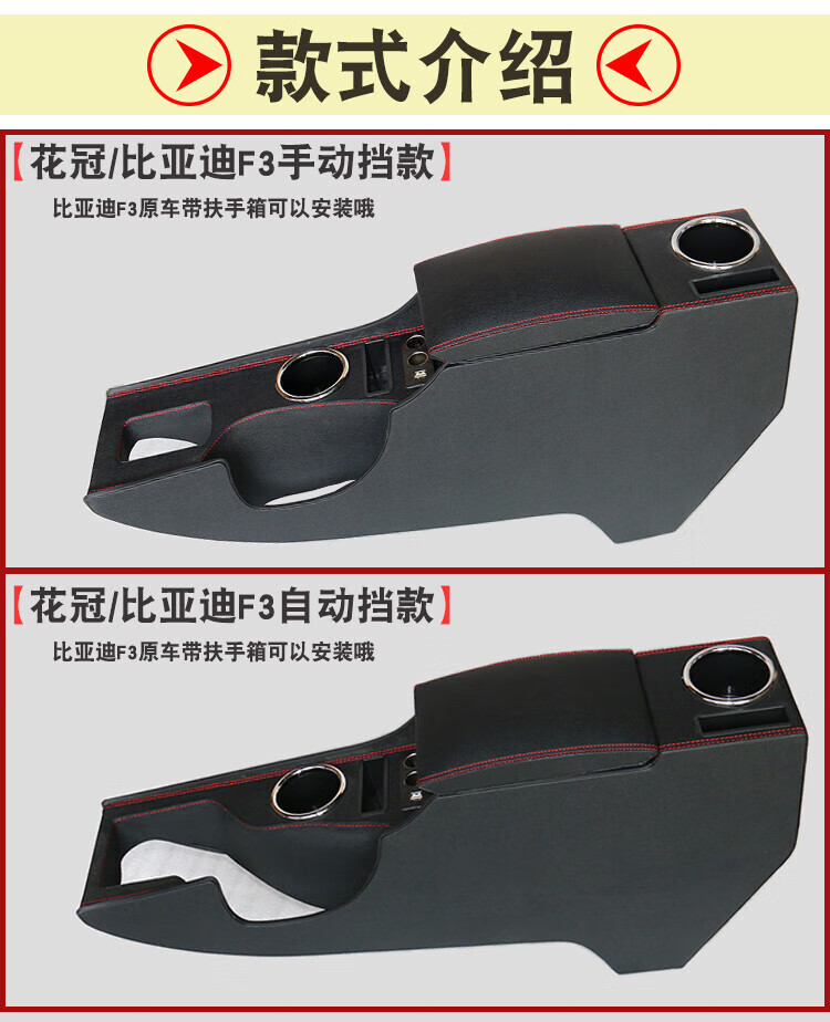 Hansong Toyota Corolla armrest box modification special punch-free original Corolla EX channel modified BYD F3 armrest box Corolla black red line)
