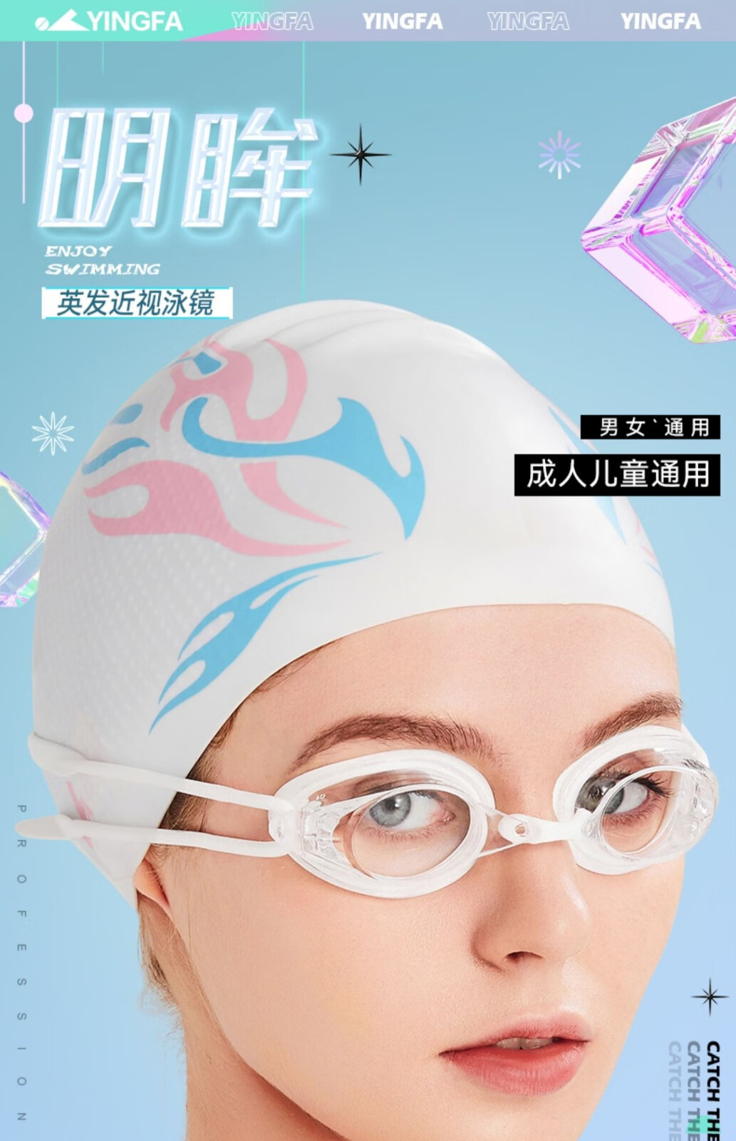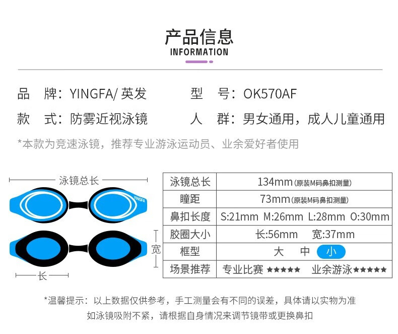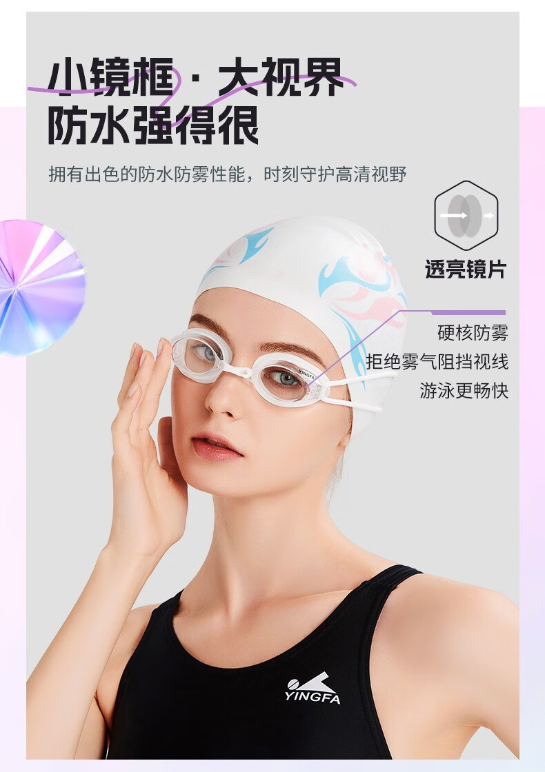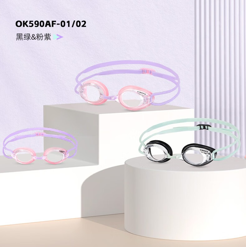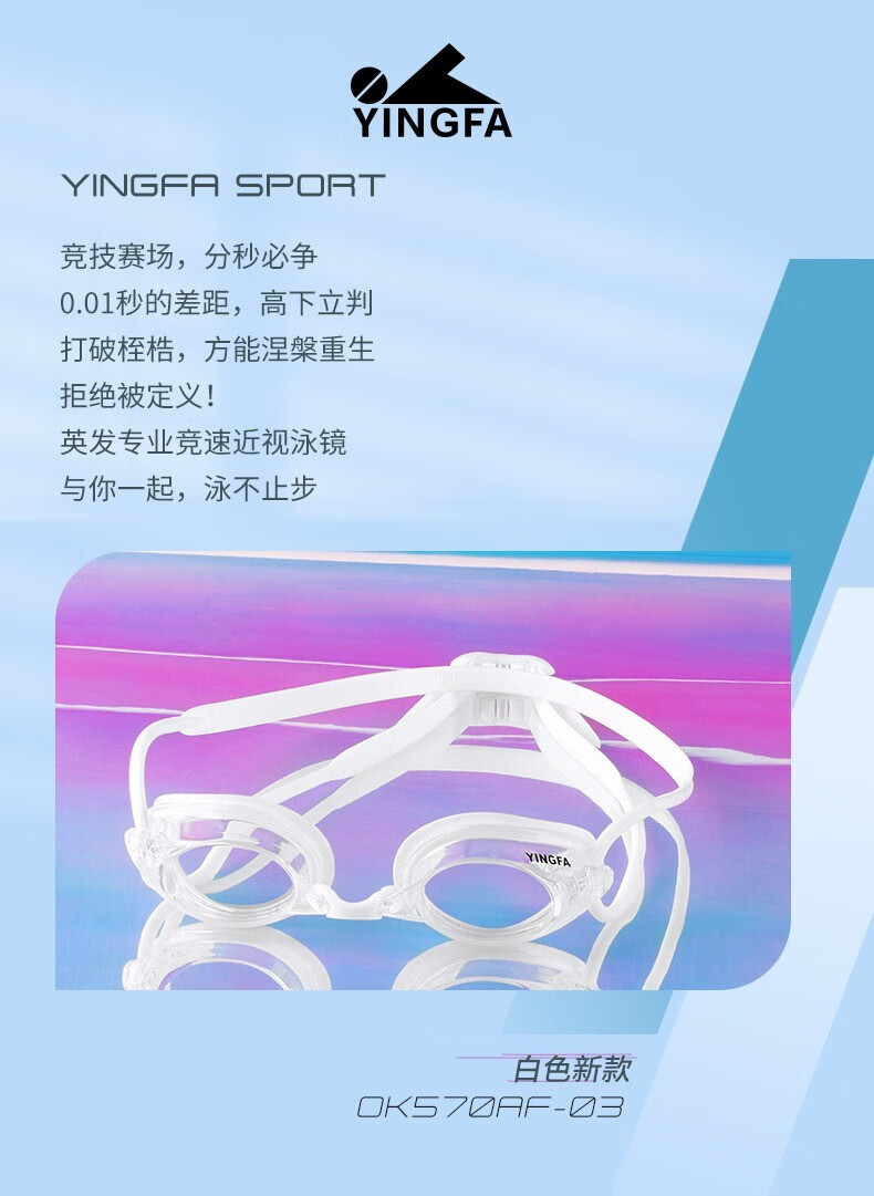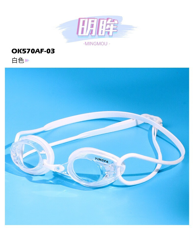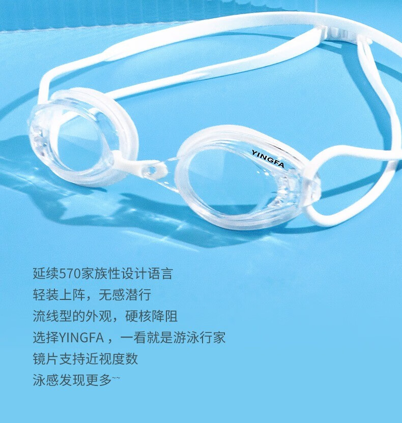 YINGFA myopia swimming goggles, professional swimming goggles for men, women and children, high-definition waterproof and anti-fog small frame swimming goggles OK570AF white-transparent lens 250 degrees