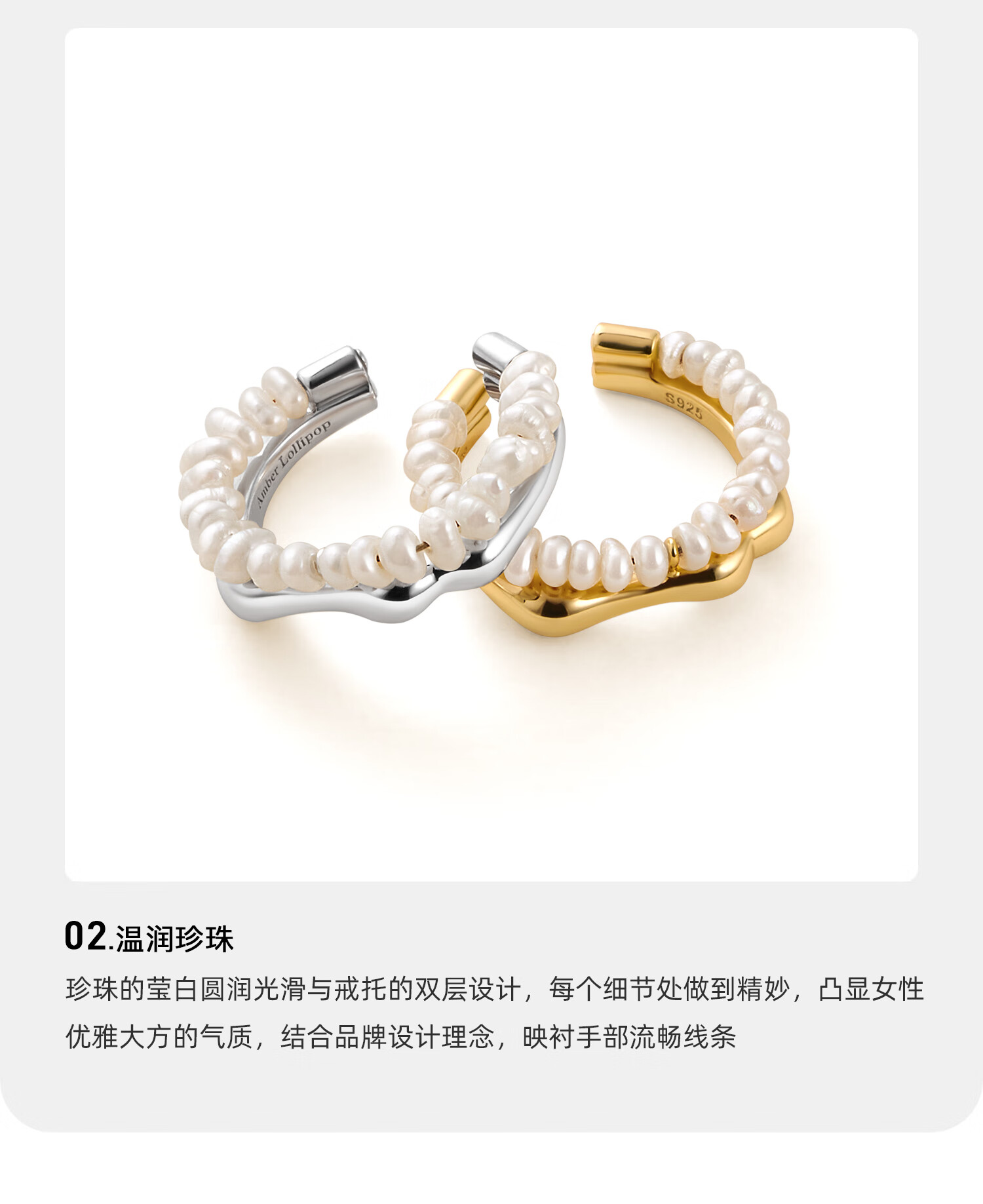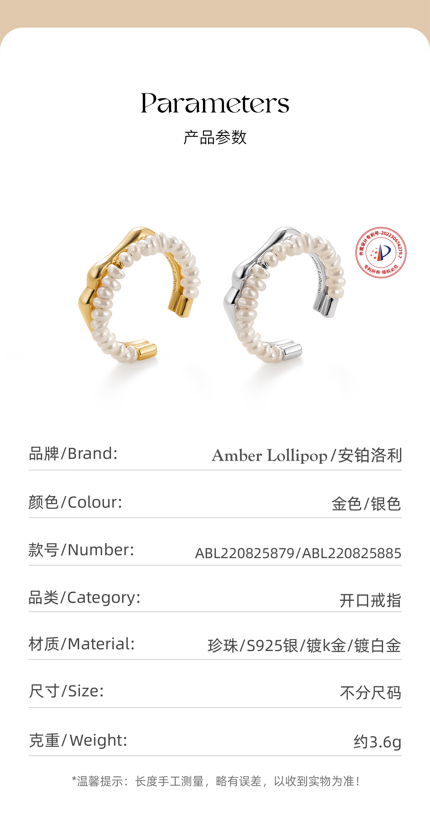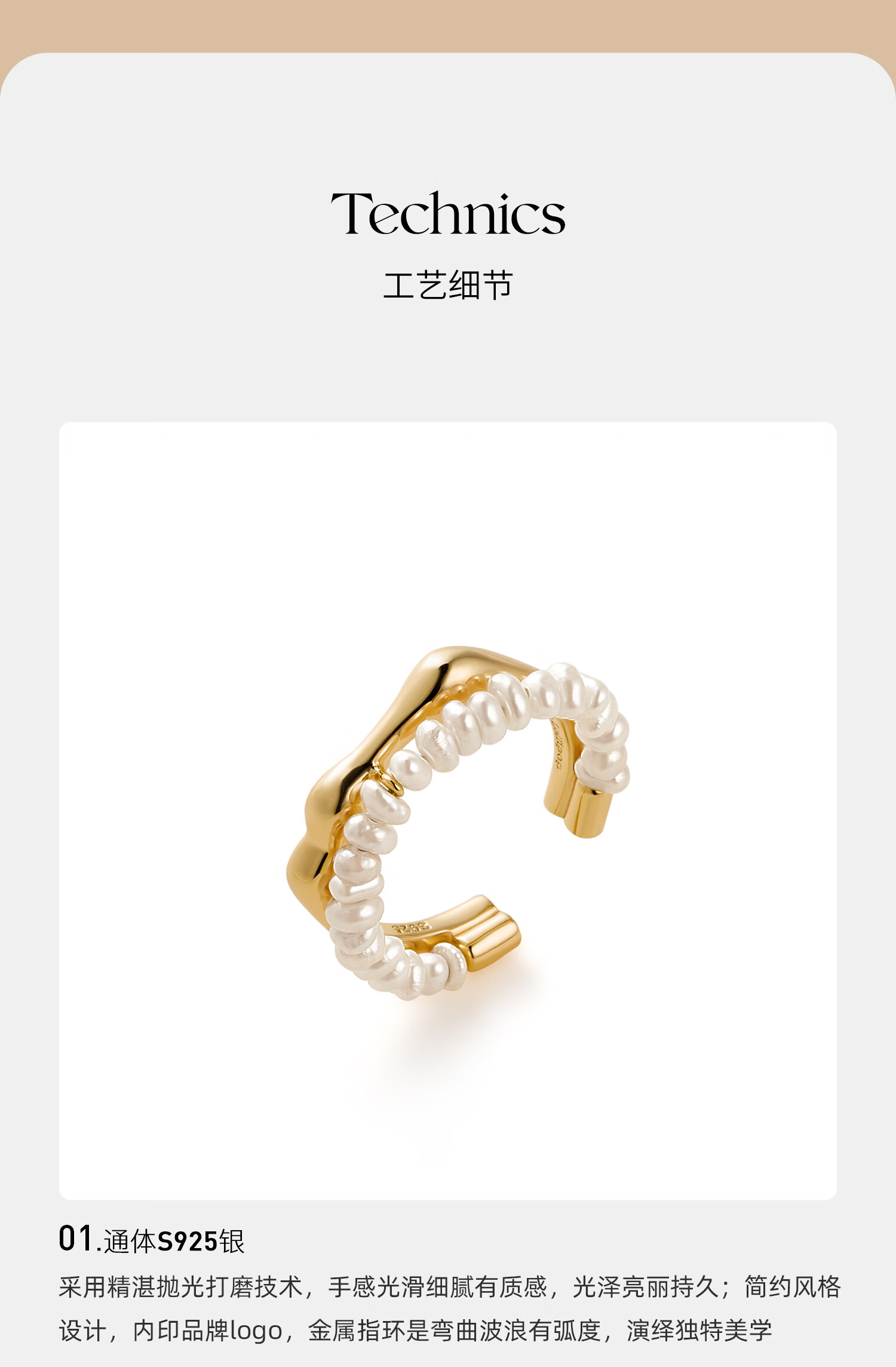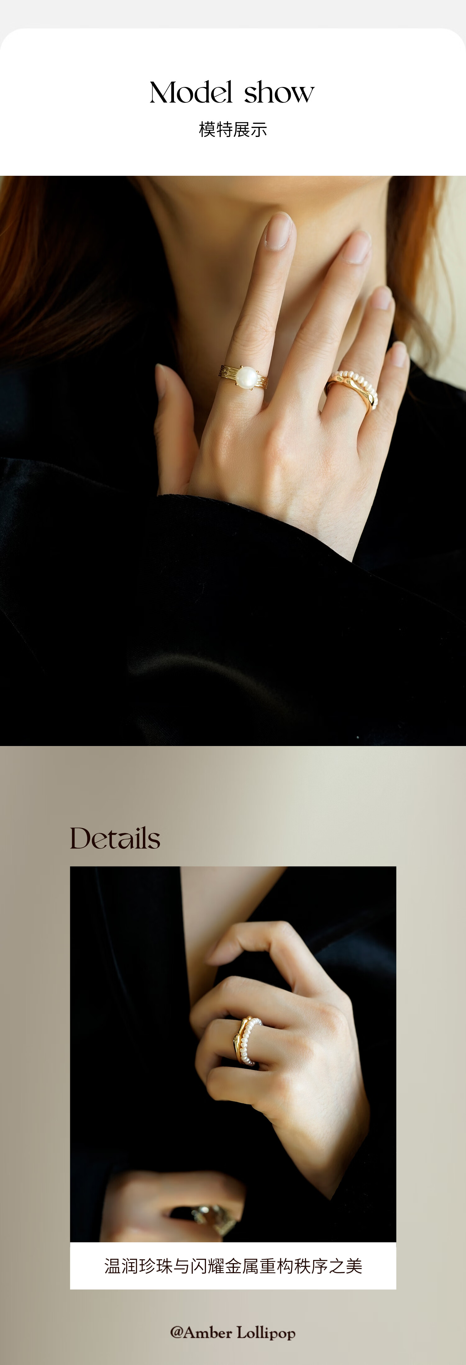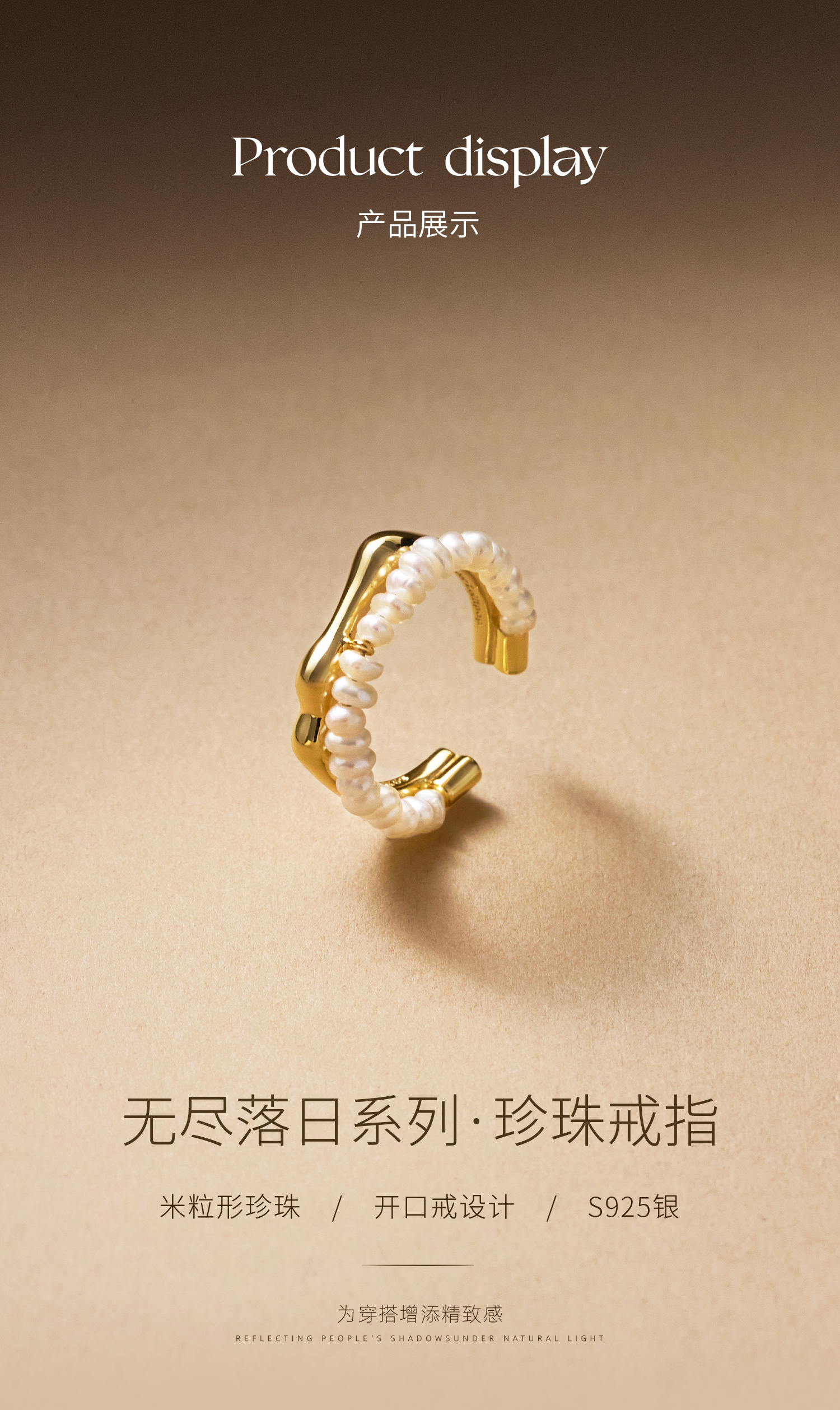 Amber Lollipop Wang Yuwen's same pearl ring for women simple decorative tail ring anniversary birthday gift for girlfriend and wife rice grain pearl (s925 silver gold-plated)