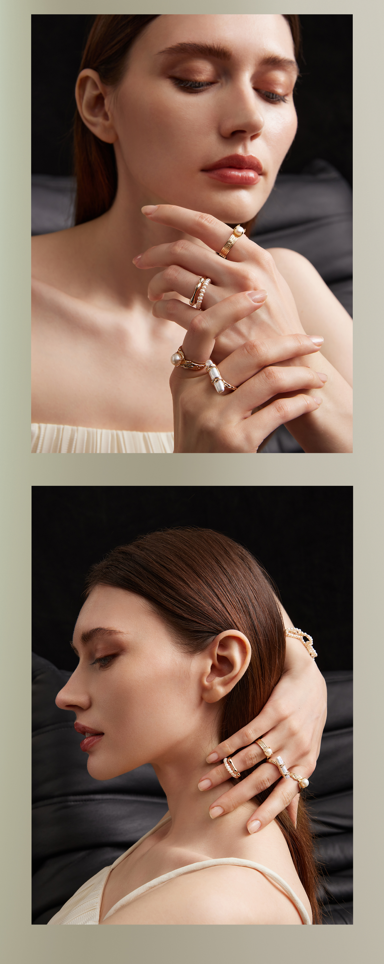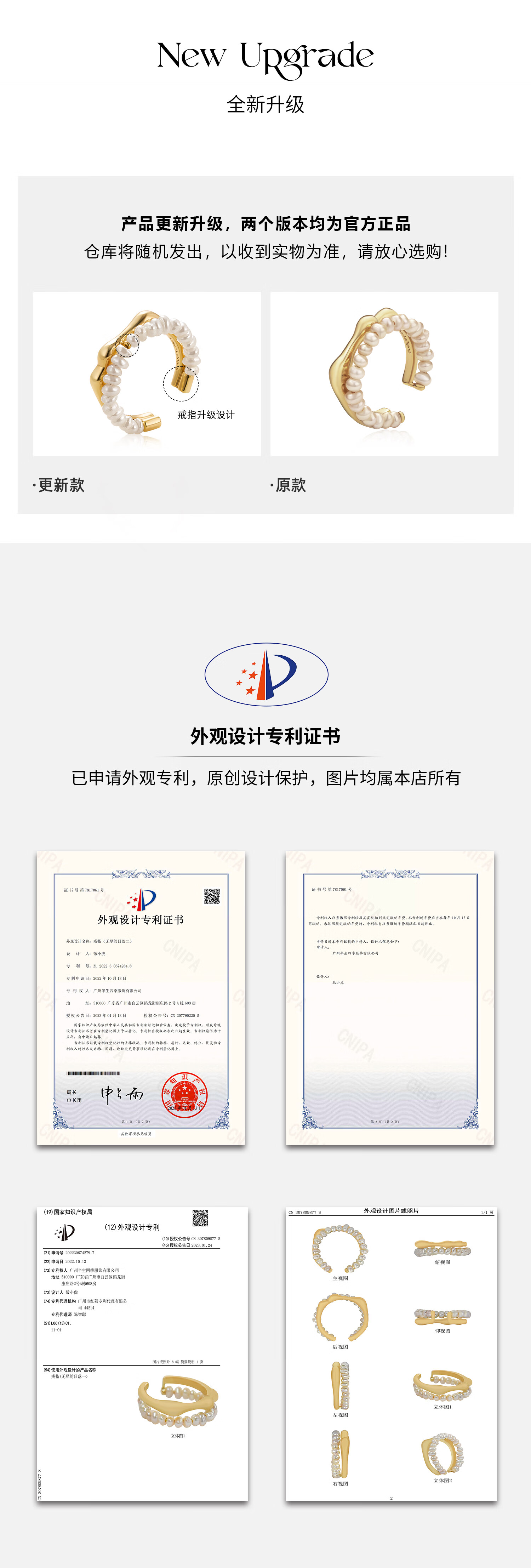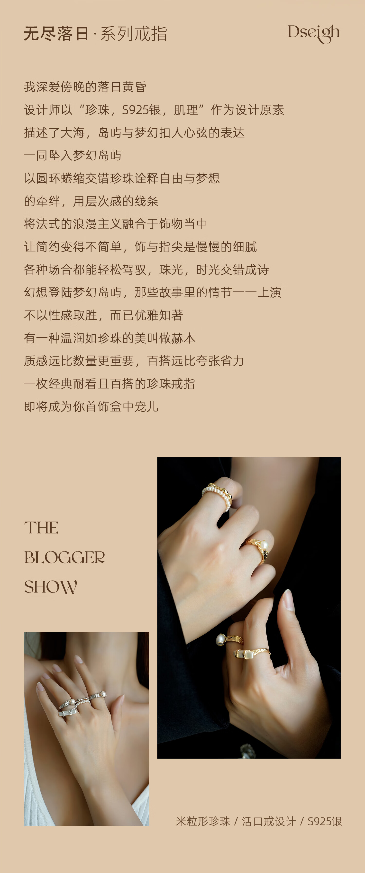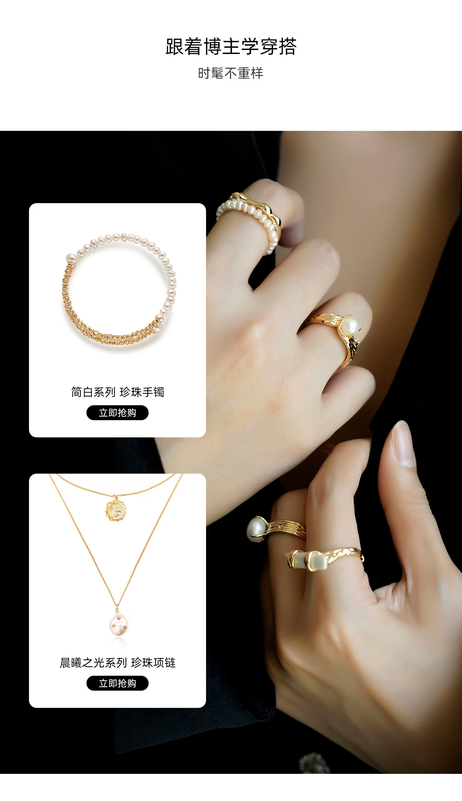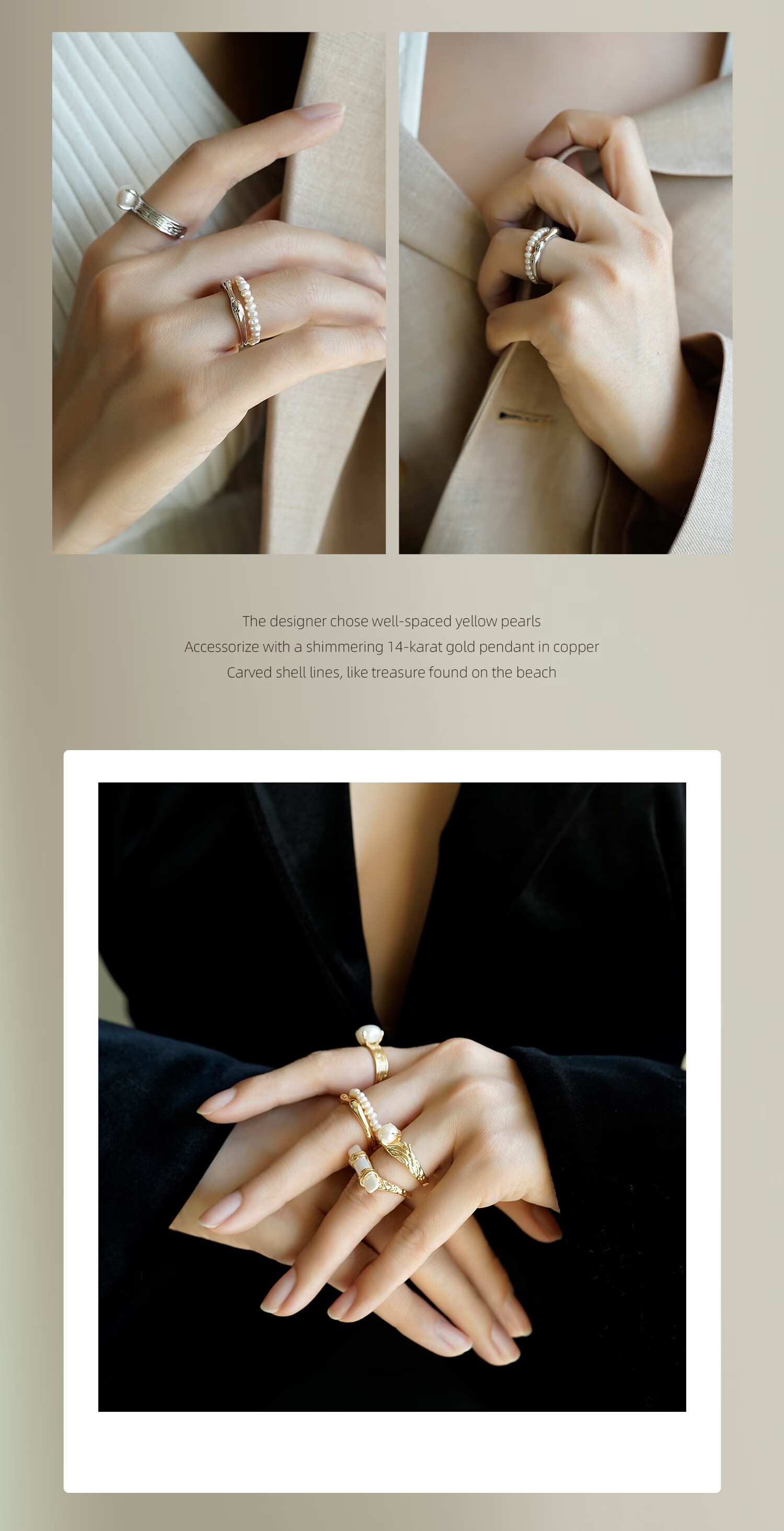 Amber Lollipop Wang Yuwen's same pearl ring for women simple decorative tail ring anniversary birthday gift for girlfriend and wife rice grain pearl (s925 silver gold-plated)