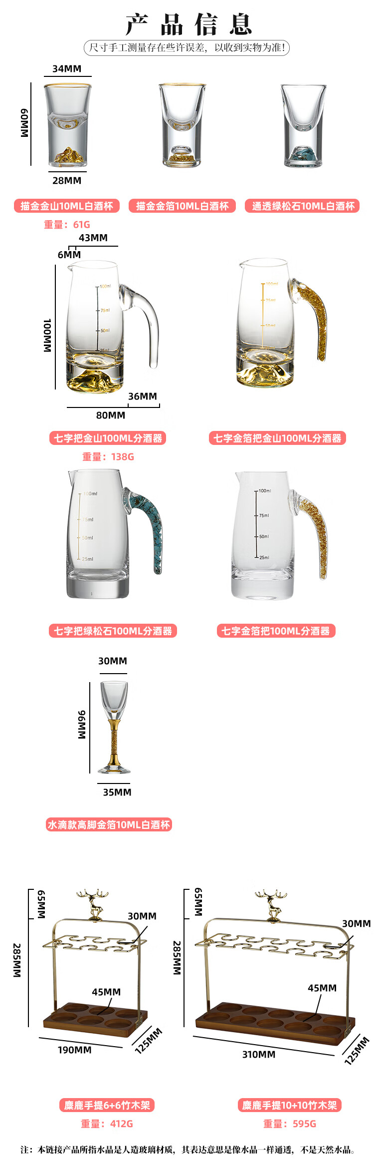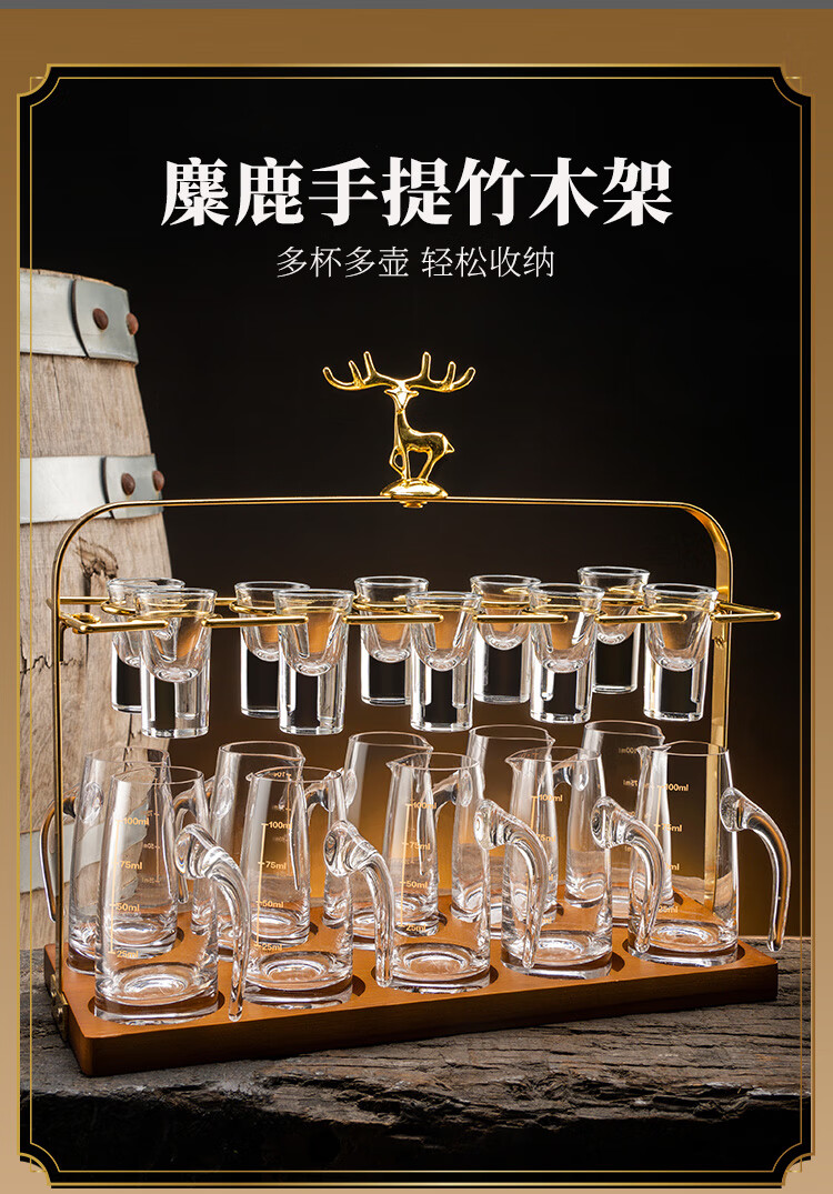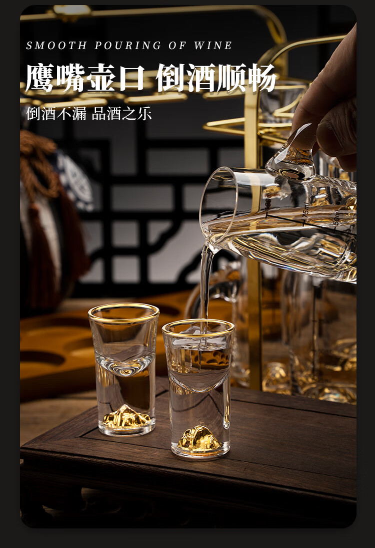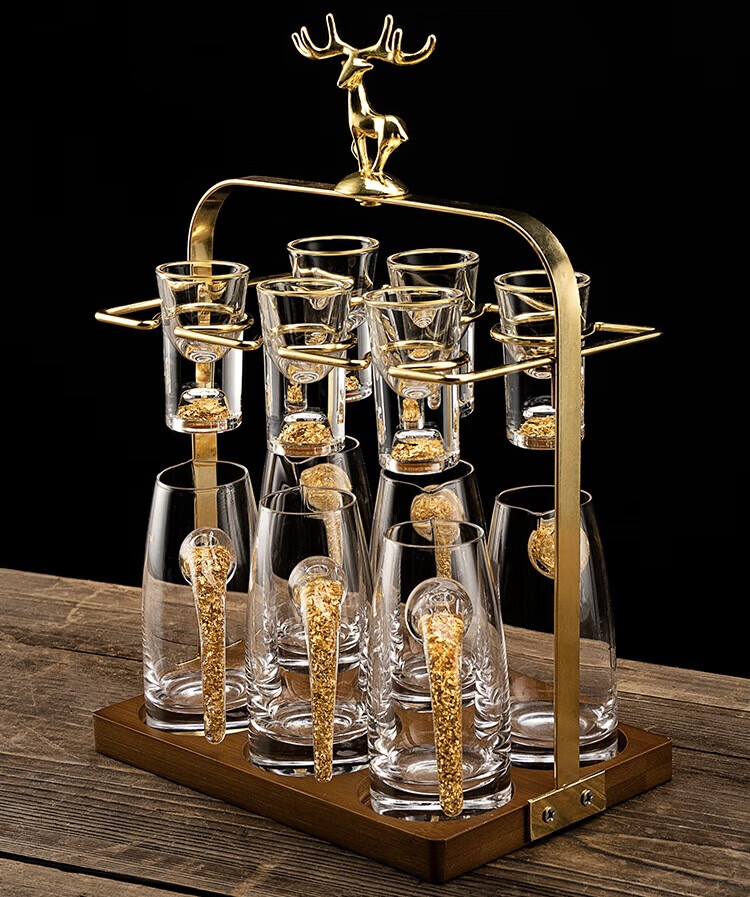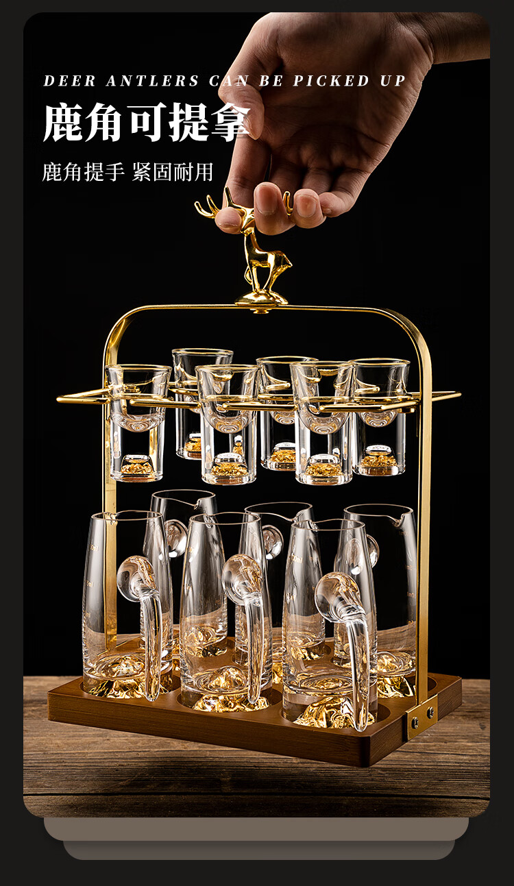 Luxury Flowers light luxury white wine glass set household high-end liquor two-liang wine container small wine glass one cup home high-end wine set gold foil wine dispenser 6 pots 6 cups + deer head cup holder