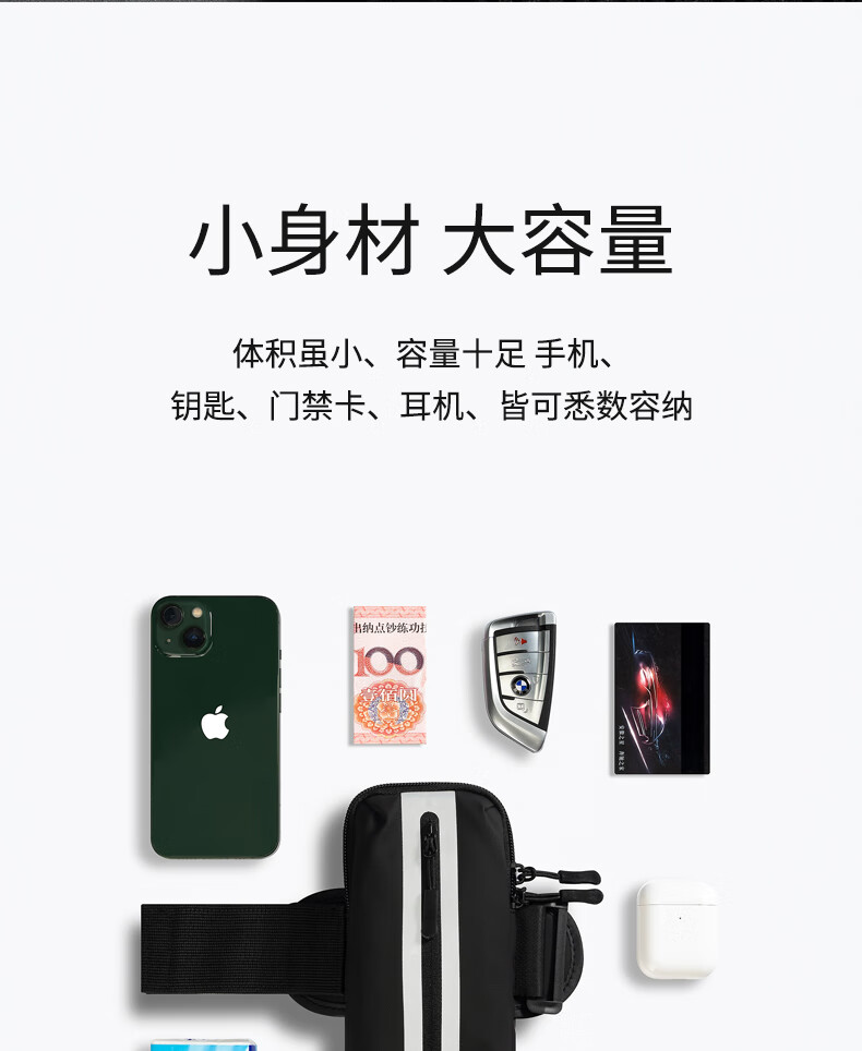 Sinofan running mobile phone arm bag sports mobile phone bag outdoor running equipment lightweight water-repellent fitness mobile phone case wrist sleeve arm bag YDB07 black