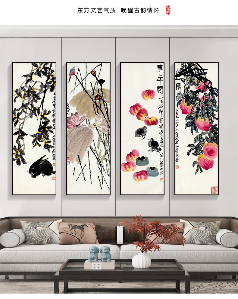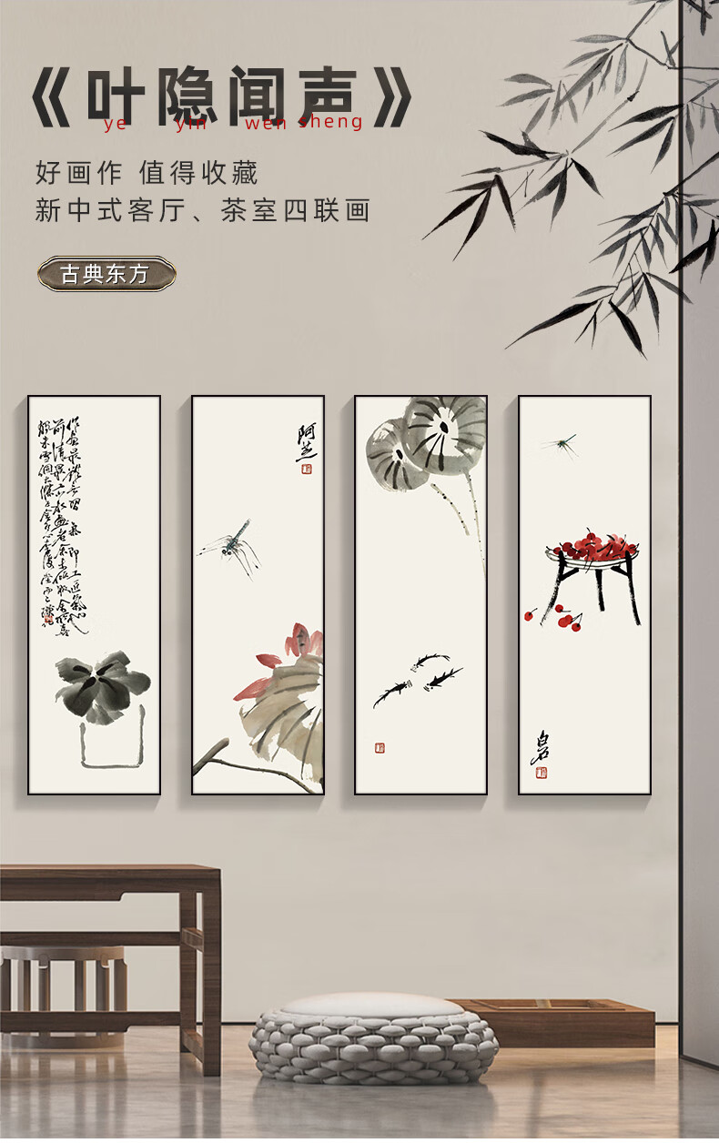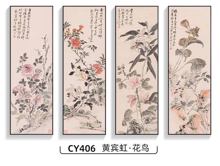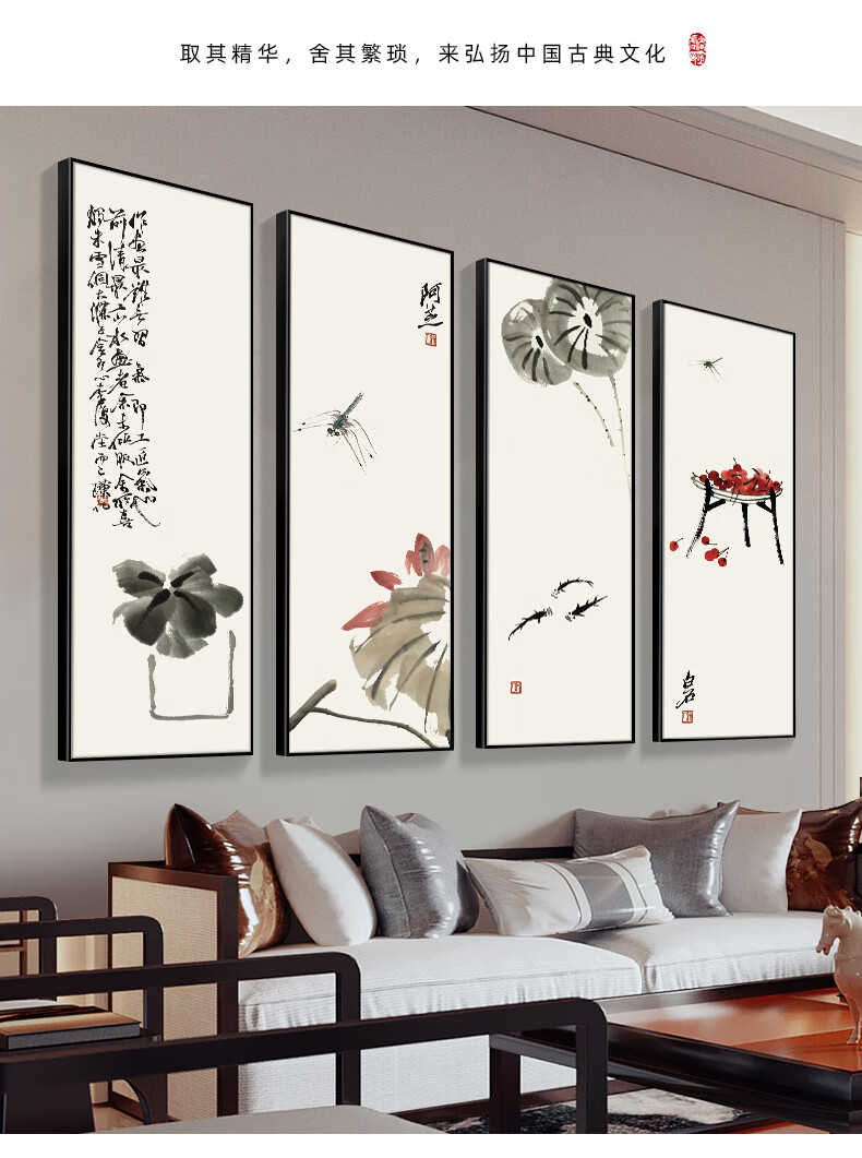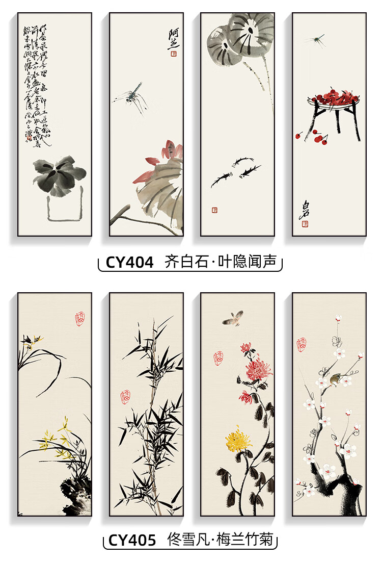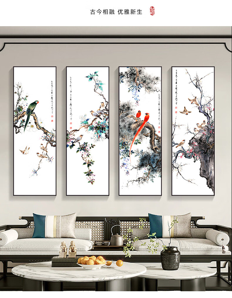 Manyu Qingsi Plum, Orchid, Bamboo and Chrysanthemum Living Room Decoration Painting Quadruple Tea Room Hanging Painting New Chinese Restaurant Sofa Background Wall Painting Ink Painting CY402 Plum, Orchid, Bamboo and Chrysanthemum 40*120cm*4 pieces Gold frame + shiny silver cloth