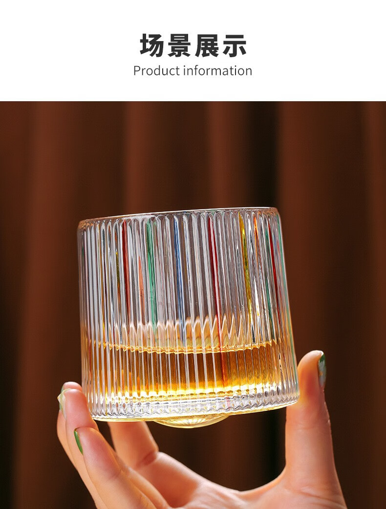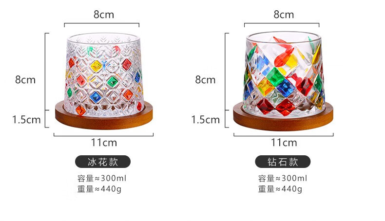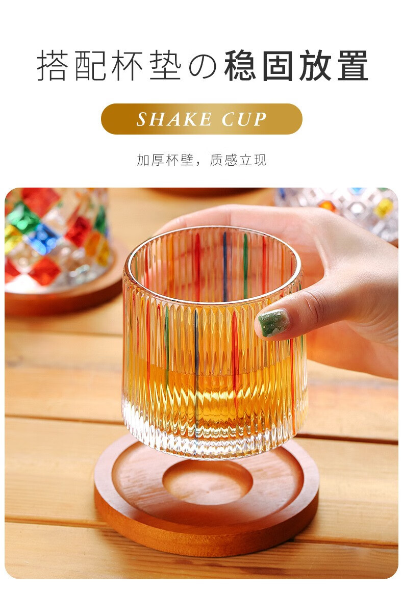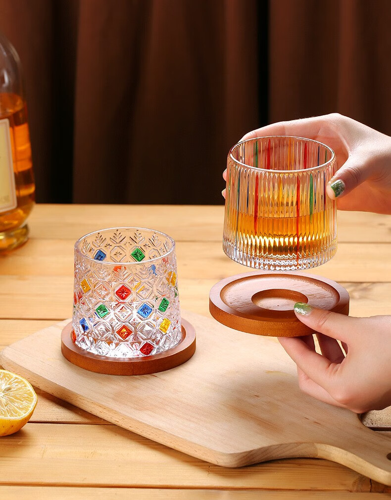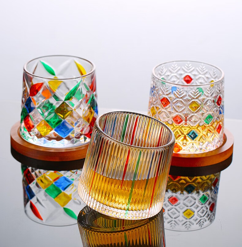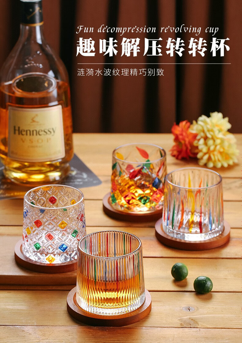 Karakatsu Ting Whiskey Cup Gyro Cup Painted Rotating Decompression Foreign Wine Cup Internet Celebrity Glass Cup Home Gift Cup Grid Pattern + Base