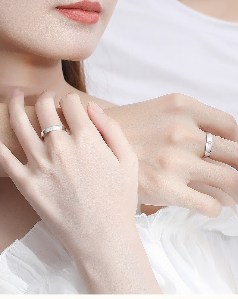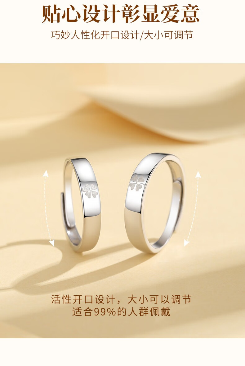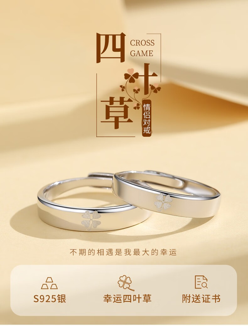 Chinese gold four-leaf clover couple ring pair of proposal silver ring girl birthday gift girlfriend wife wedding anniversary lucky four-leaf clover couple ring Jingsuda