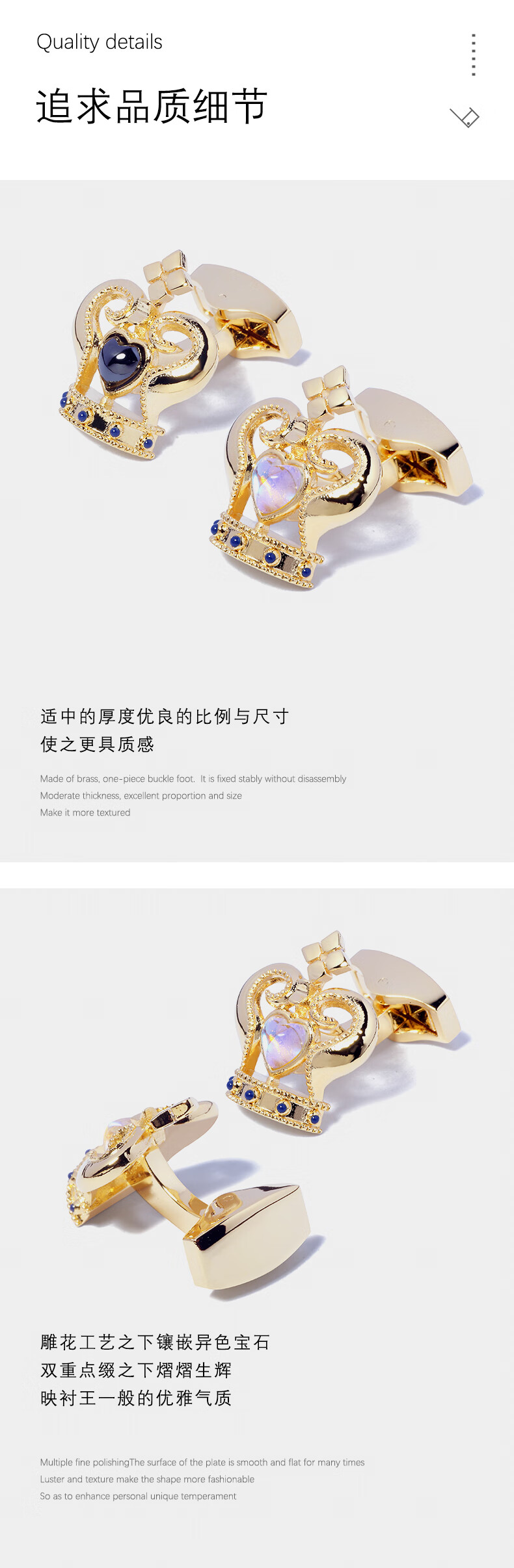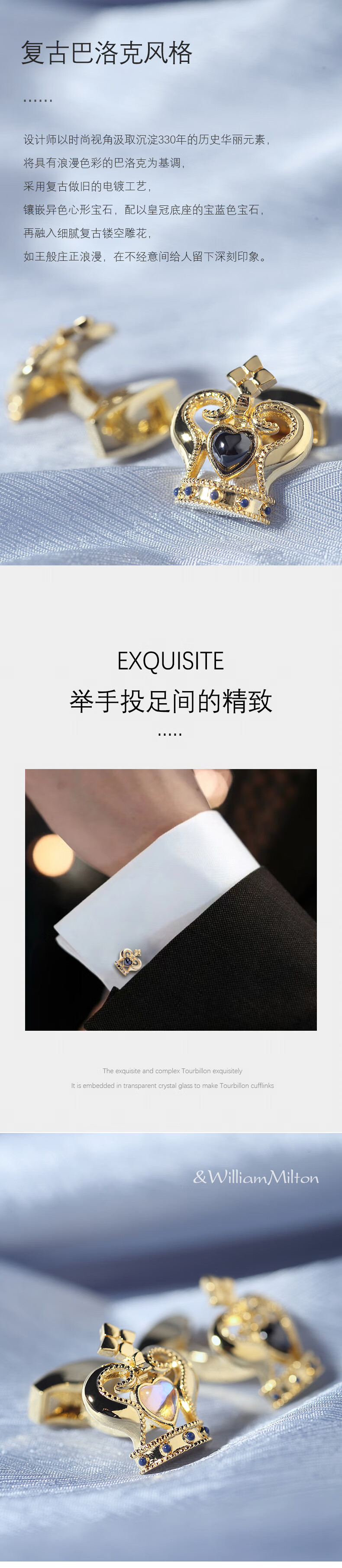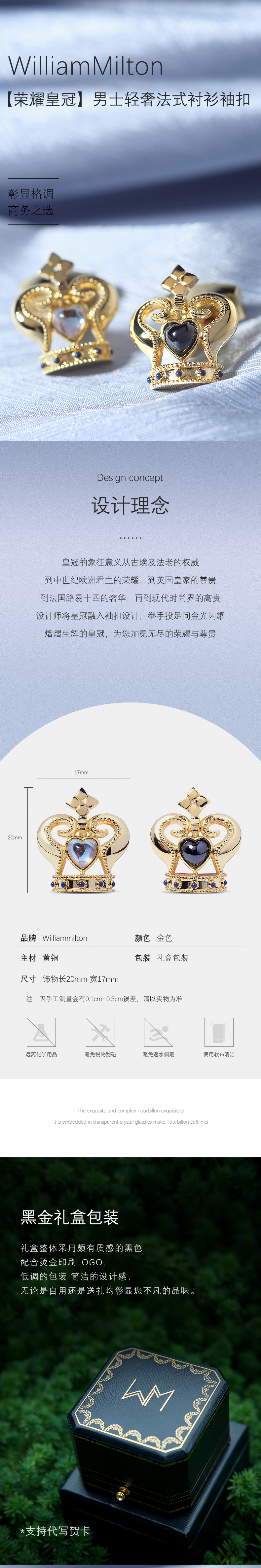 WILLIAM MILTON Golden Crown High-end French Cufflinks Men's Light Luxury Cuff Buttons Customized Shirt Cuffs Crown of Glory